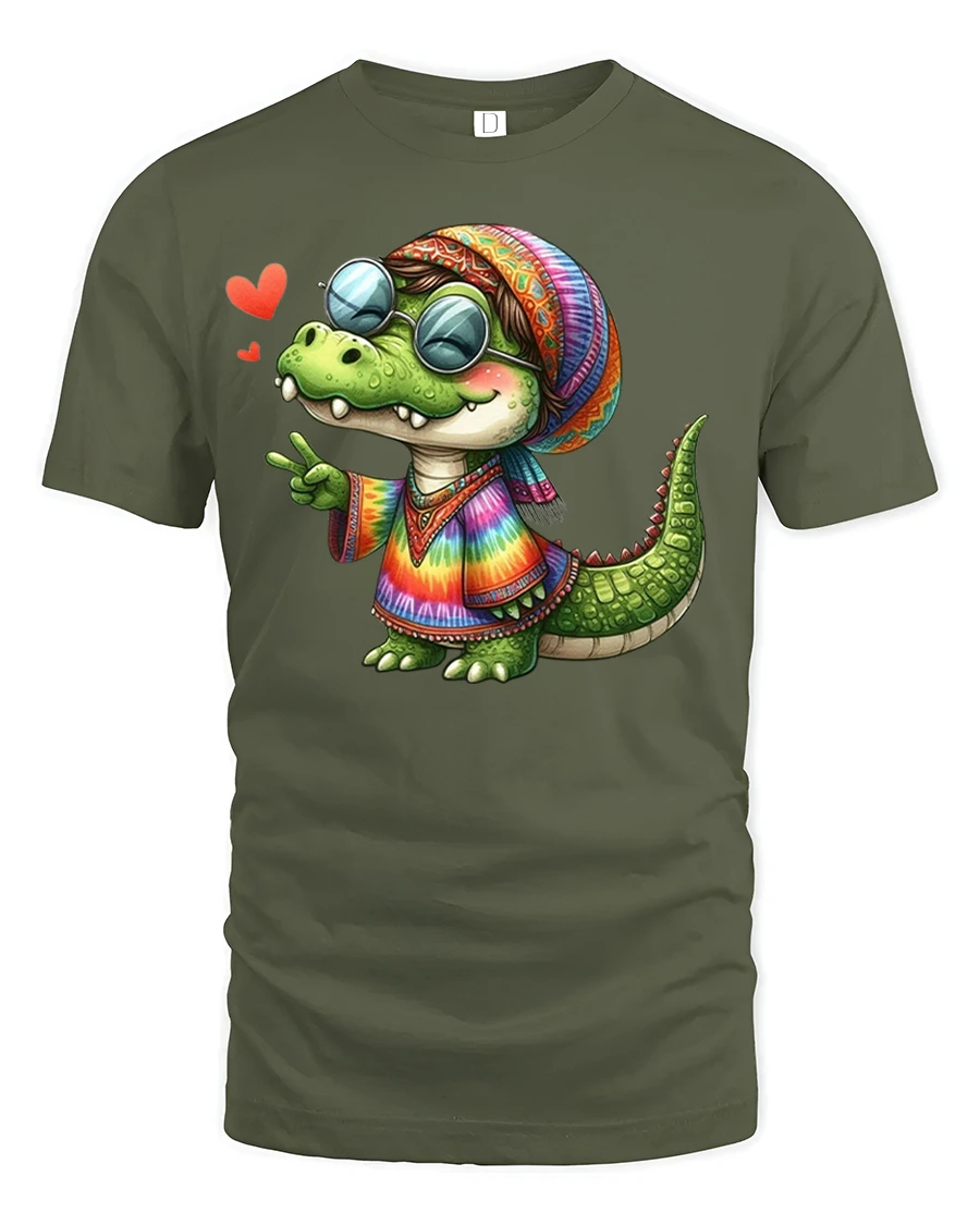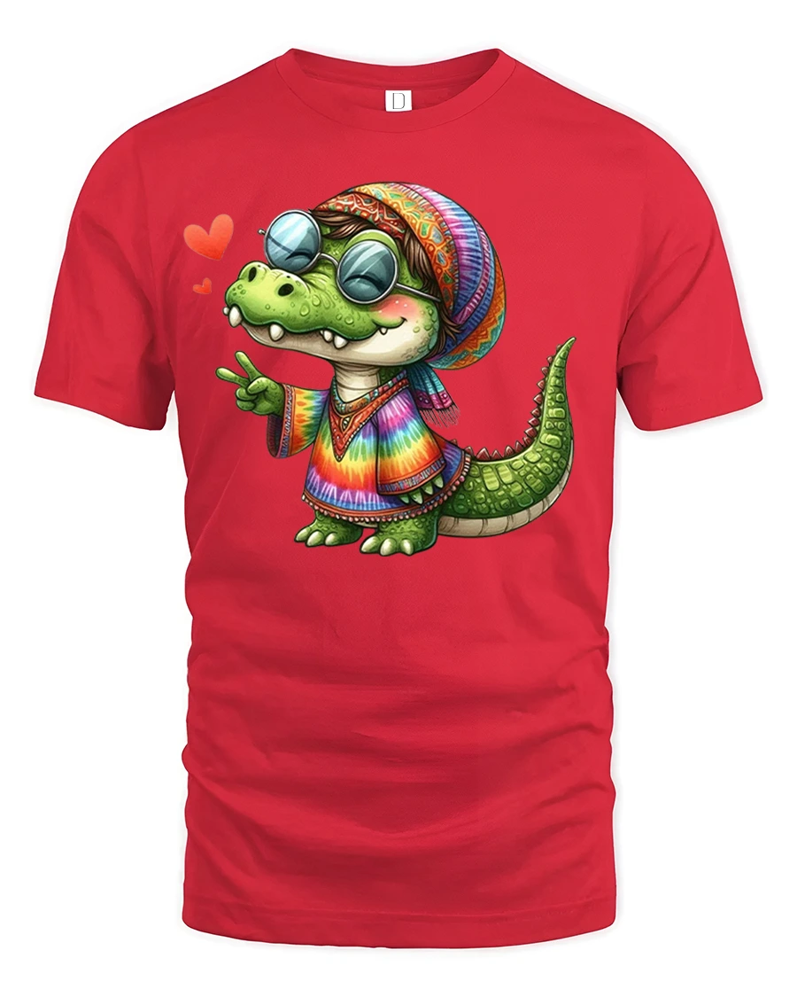 This fun gator tee also makes a perfect gift for friends, family, or anyone who enjoys lighthearted, creative fashion. Pair it with jeans, shorts, or festival gear for a laid-back, stylish look. Bring out your groovy side with this hippie alligator t-shirt that spreads peace, love, and laughter.