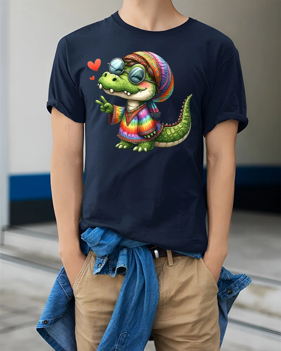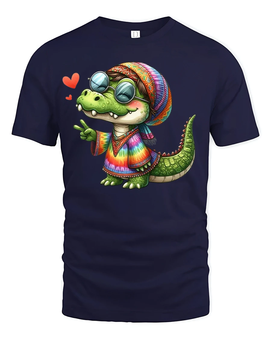 The Hippie Alligator Tie Dye Peace Sign Graphic T-Shirt is the perfect mix of groovy vibes and fun style. Featuring a cheerful cartoon alligator dressed in a colorful tie-dye outfit, peace sign shades, and a happy attitude, this tee is made to bring smiles wherever you go. It’s a playful design that’s perfect for music festivals, casual days out, or just showing off your love for unique and funny animal graphics.