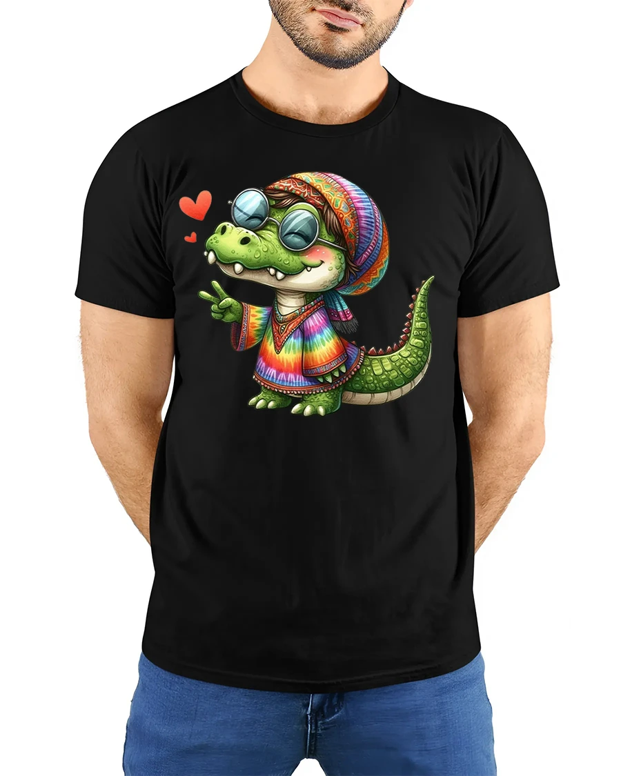 Crafted from high-quality, breathable fabric, the Hippie Alligator Tie Dye Peace Sign Graphic T-Shirt offers comfort and durability. Its bright, eye-catching design makes it a standout piece for those who enjoy funky fashion with a humorous twist. Whether you’re into hippie culture, love reptiles, or just want a cool conversation starter, this tee has got you covered.