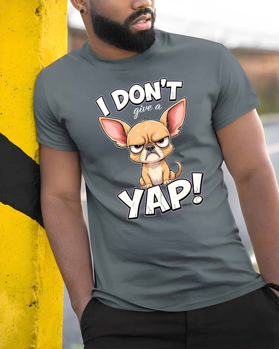 I Dont Give A Yap Funny Chihuahua Cartoon Graphic T Shirt Tee delivers bold humor and unapologetic attitude in one eye catching design.