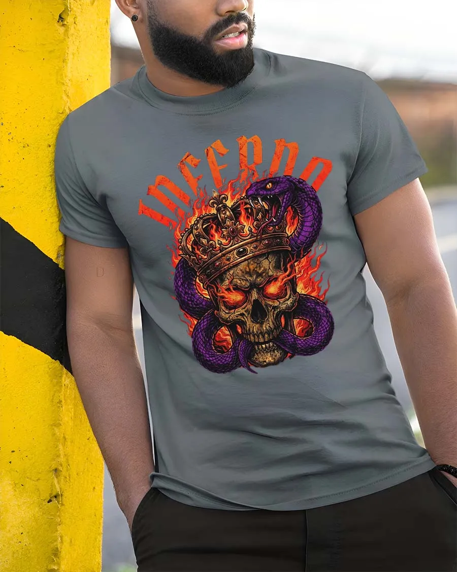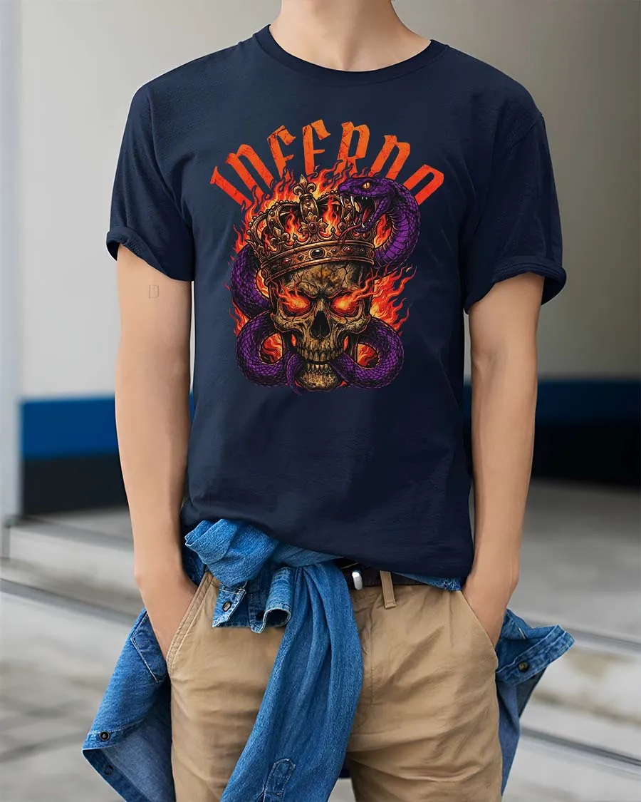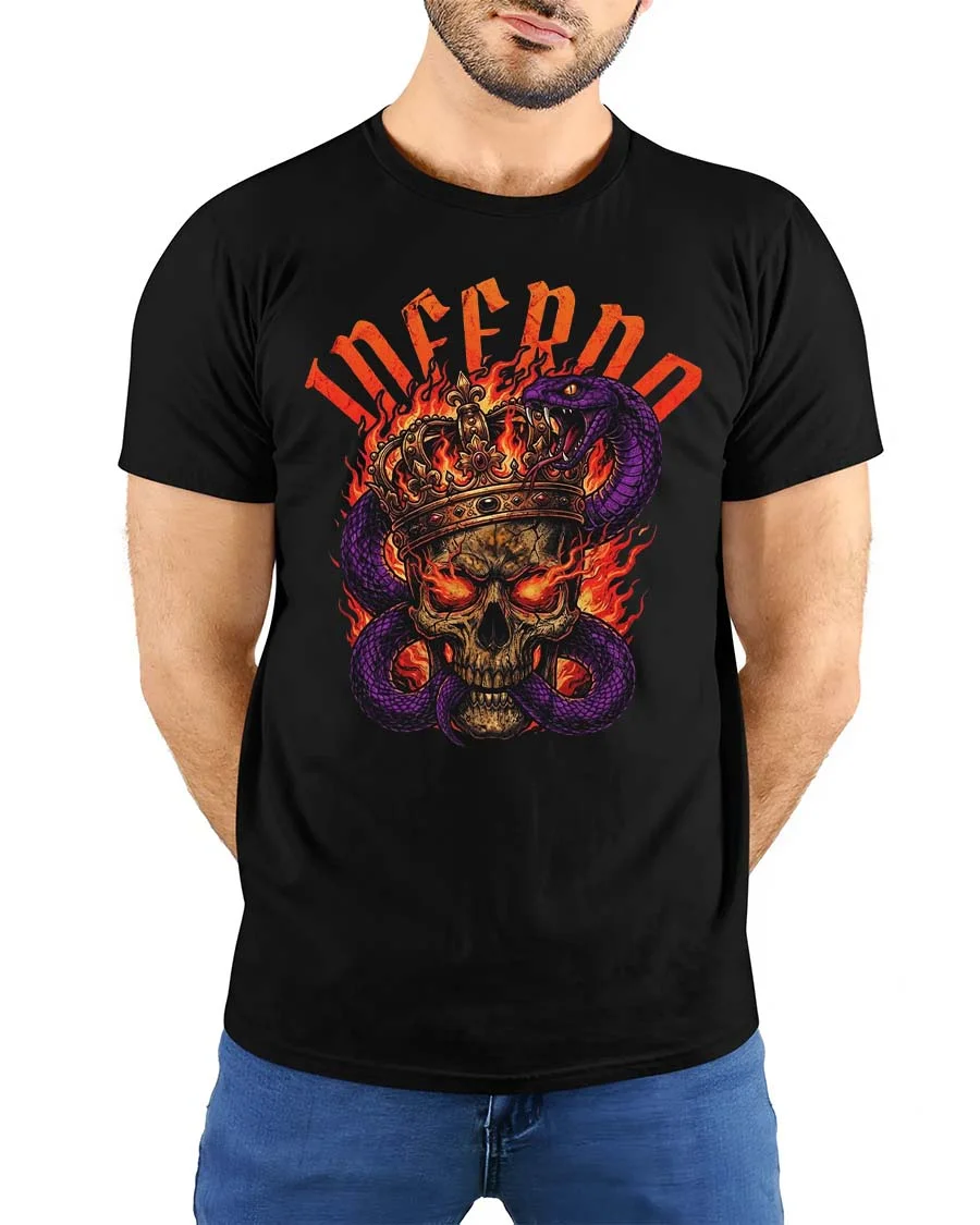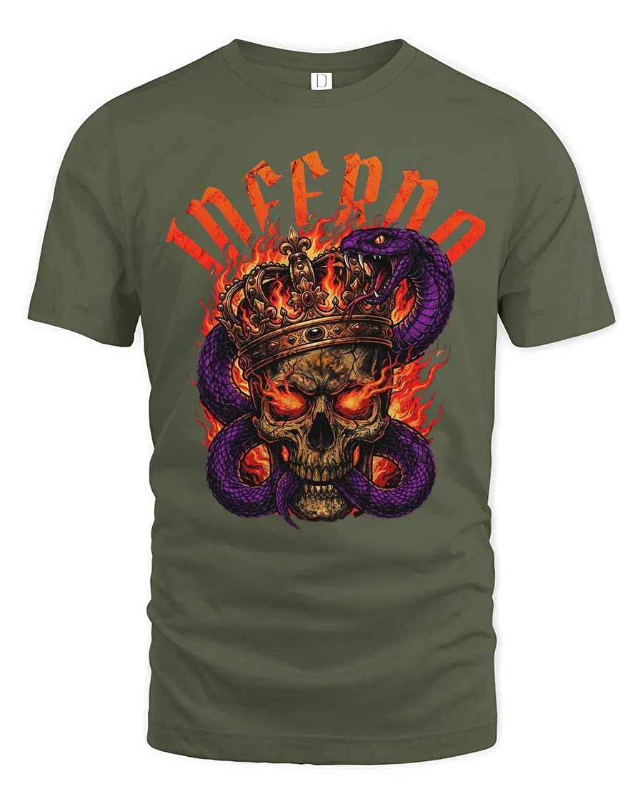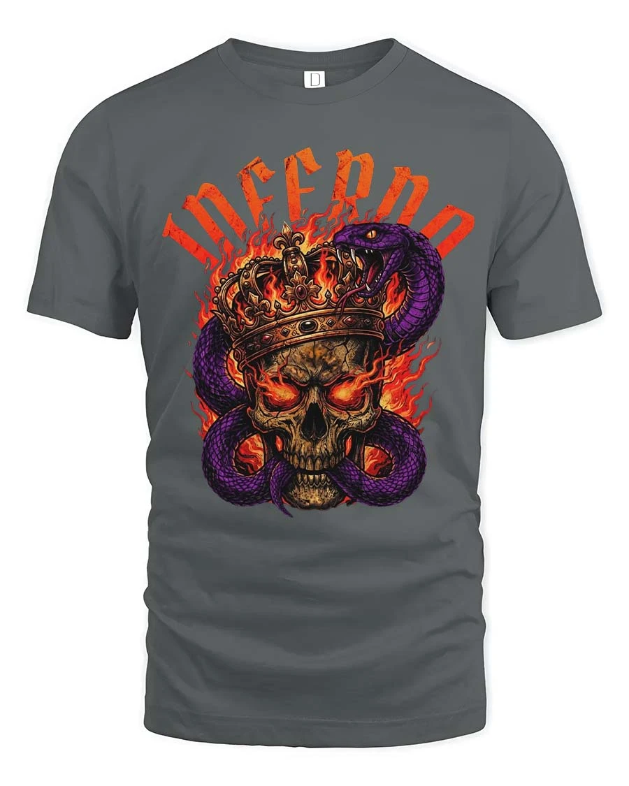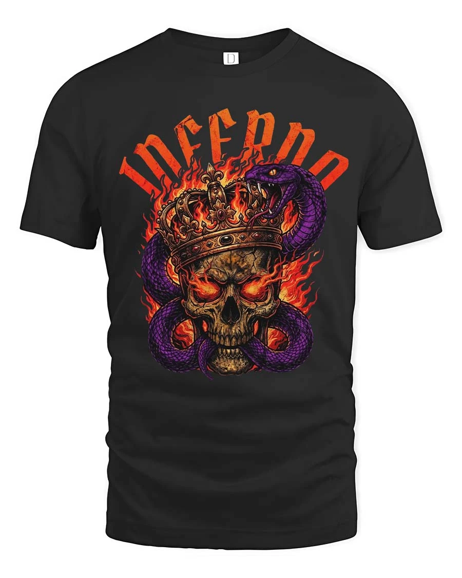 Inferno Crown Skull T Shirt Dark Gothic Snake King Art features a bold dark fantasy design that captures powerful symbolism and striking visual intensity.