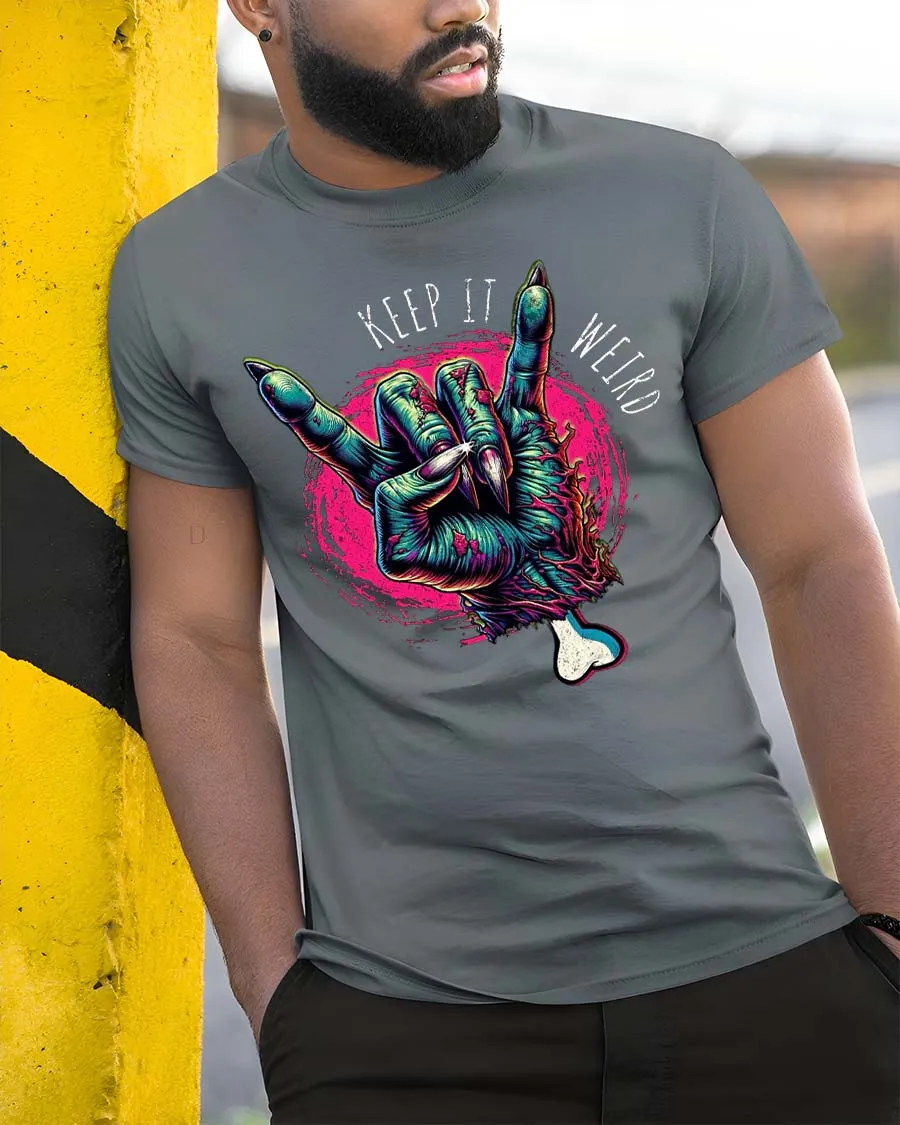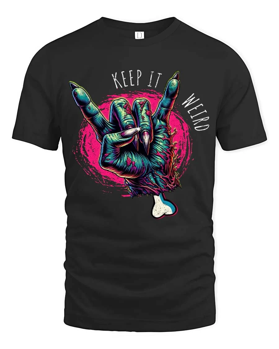 Keep It Weird Zombie Hand Rock Gesture Graphic T Shirt