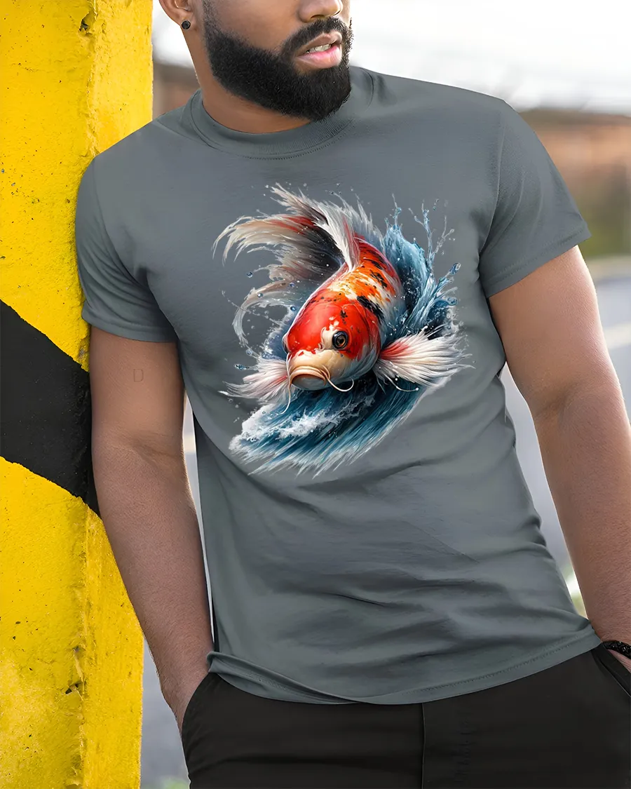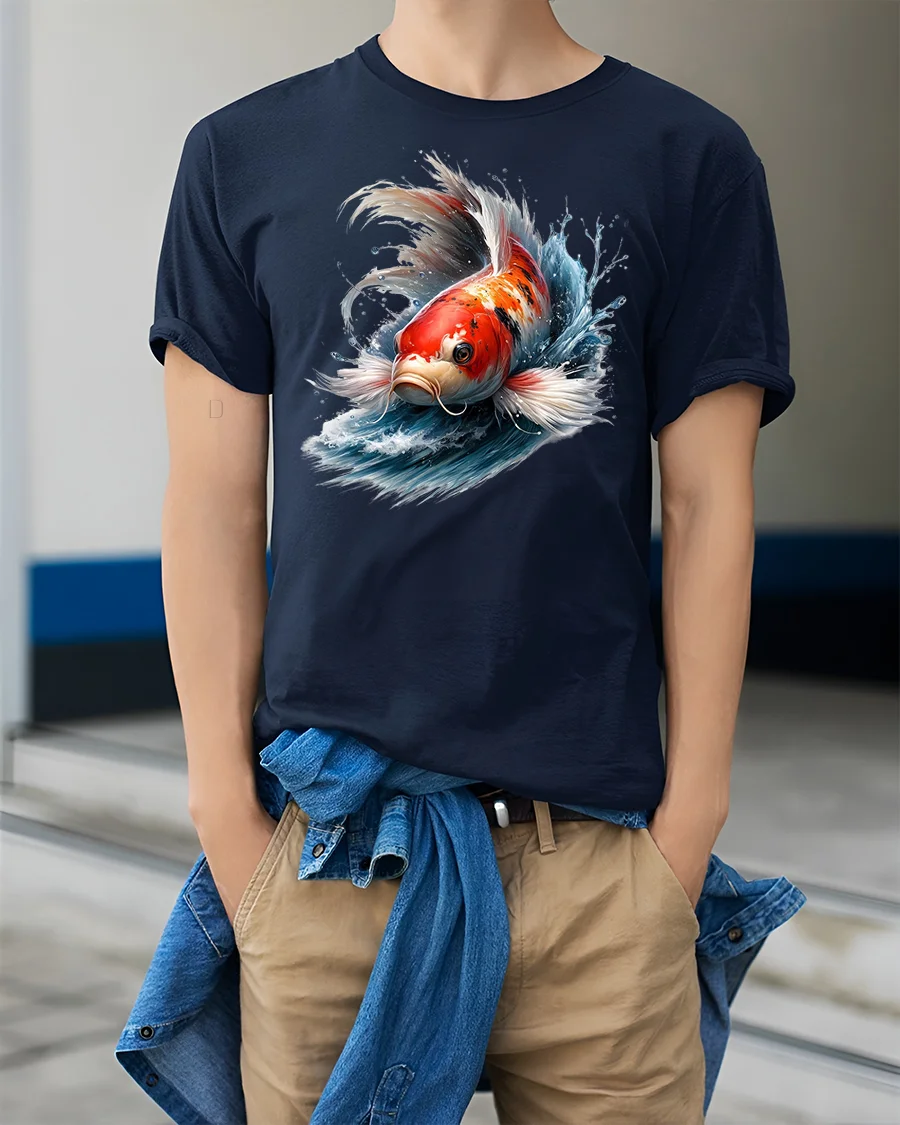 The Koi Fish Splash Art Graphic T-Shirt for Men and Women is a bold and artistic piece that blends Japanese-inspired design with modern streetwear style. Featuring a vibrant koi fish leaping through splashing waves, this shirt is perfect for those who appreciate symbolic art and unique fashion.