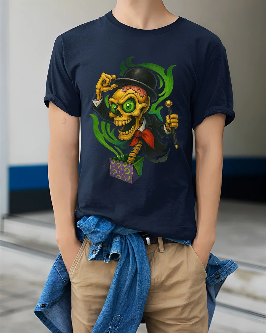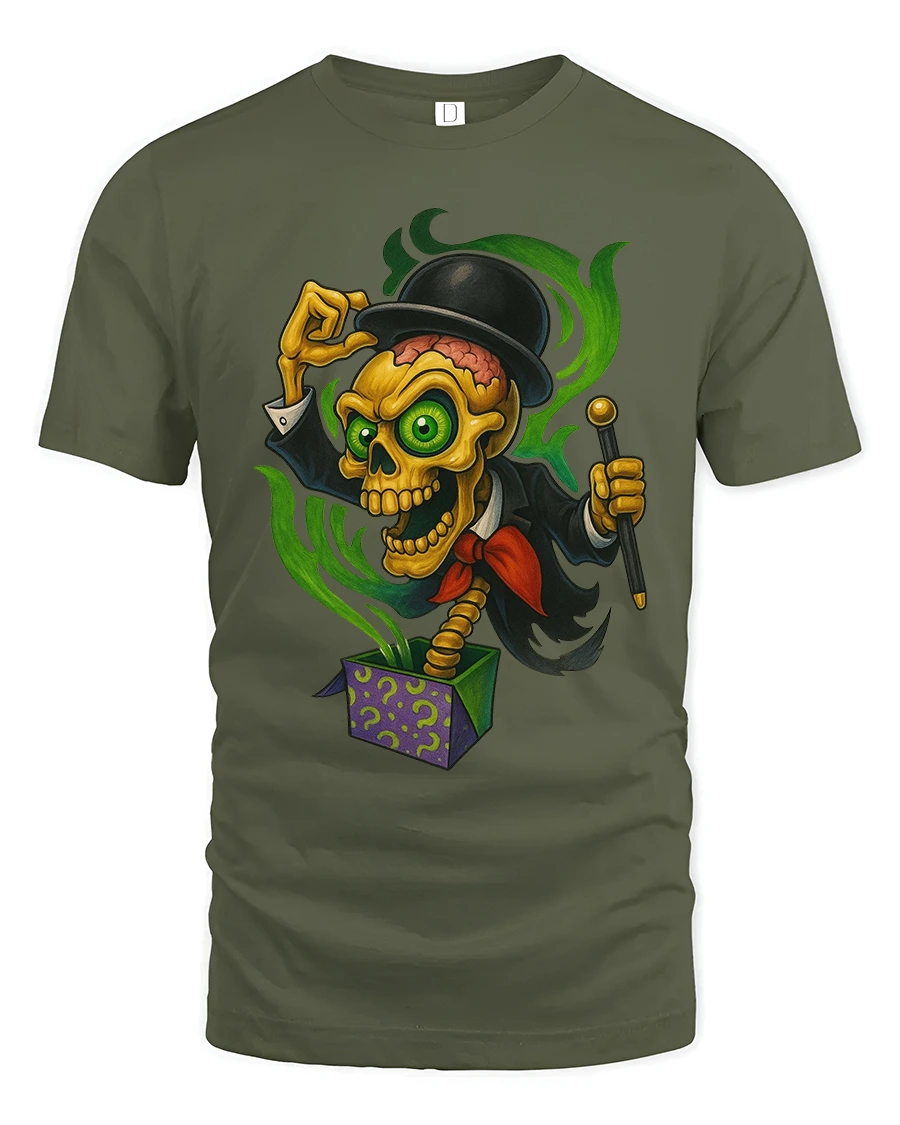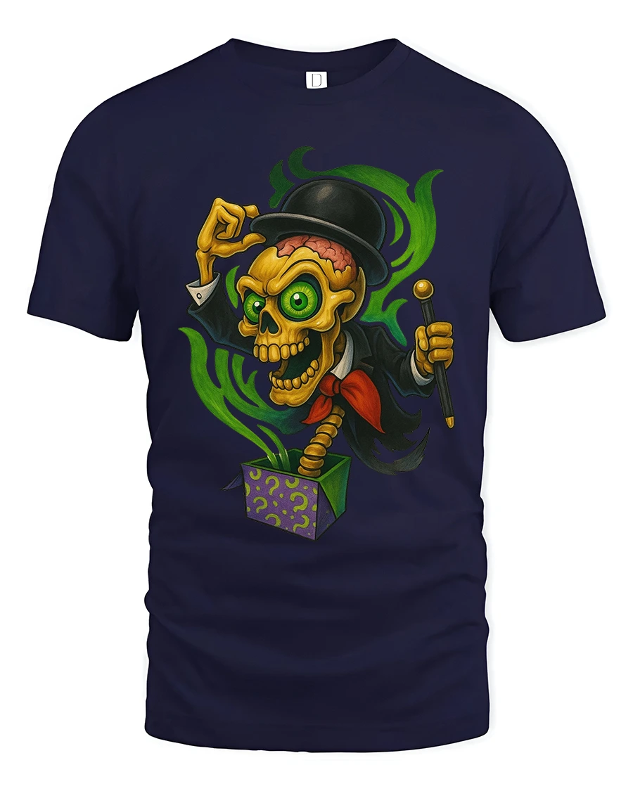 Magic Skeleton Jack In Box Tshirt Creepy Funny Cartoon Art is perfect for anyone who enjoys spooky humor fantasy art and bold character designs.