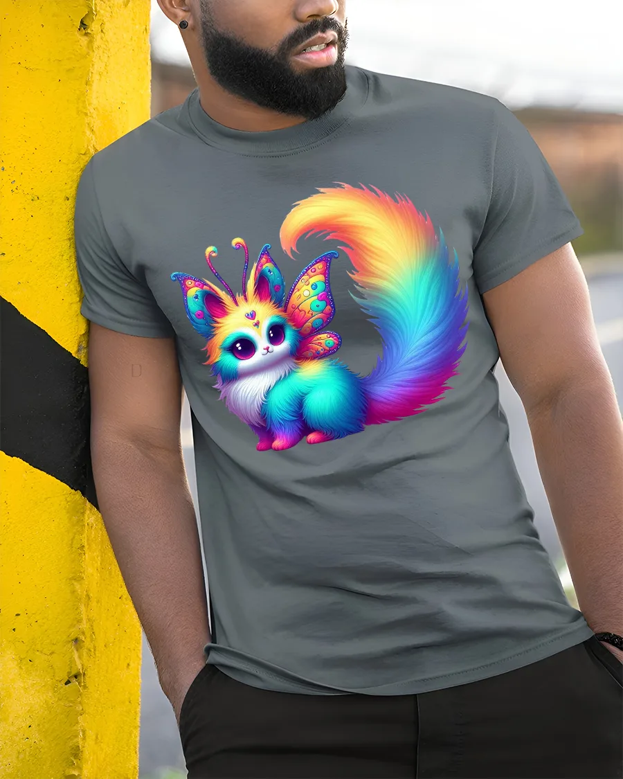 Magical Rainbow Fox With Butterfly Wings Fantasy Art Graphic Tee brings a sense of wonder and joy through its enchanting design.