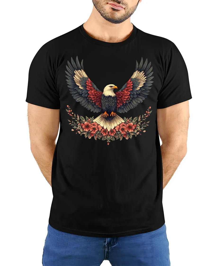 Crafted from soft, breathable fabric, this t-shirt offers comfort you can rely on—perfect for everyday wear, outdoor adventures, or casual gatherings. The high-quality print captures every fine detail of the eagle and blooming flowers, ensuring the artwork remains vivid and eye-catching wash after wash. Whether paired with jeans, jackets, or summer outfits, it adds a refined yet powerful touch to any wardrobe.
