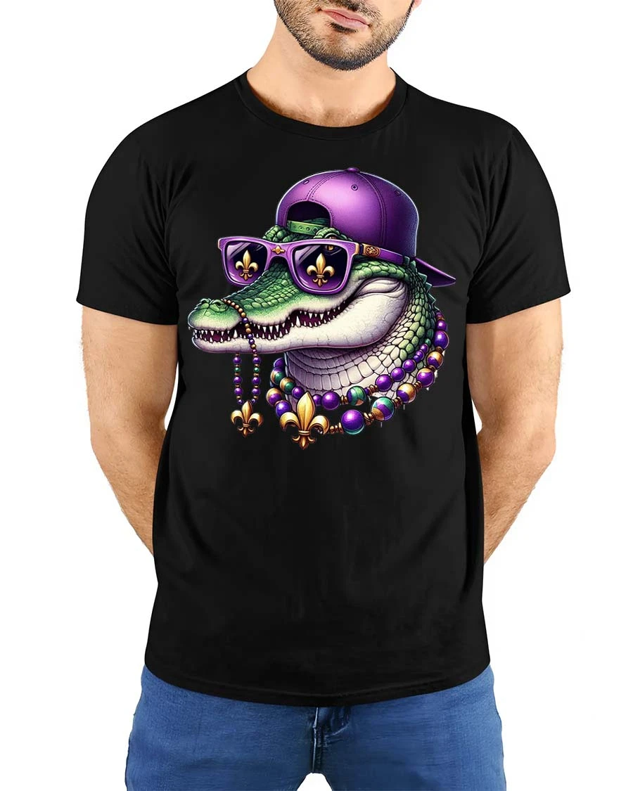 Mardi Gras Alligator Graphic T Shirt Cool Party Style Tee