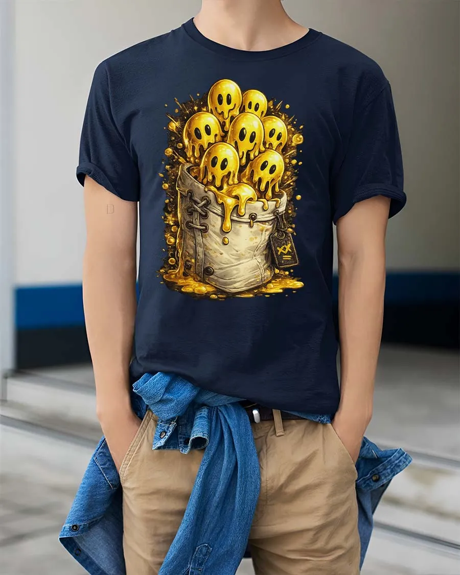 Be the first to review “Melting Gold Ghost Bucket Graphic T Shirt Funny Art Style”