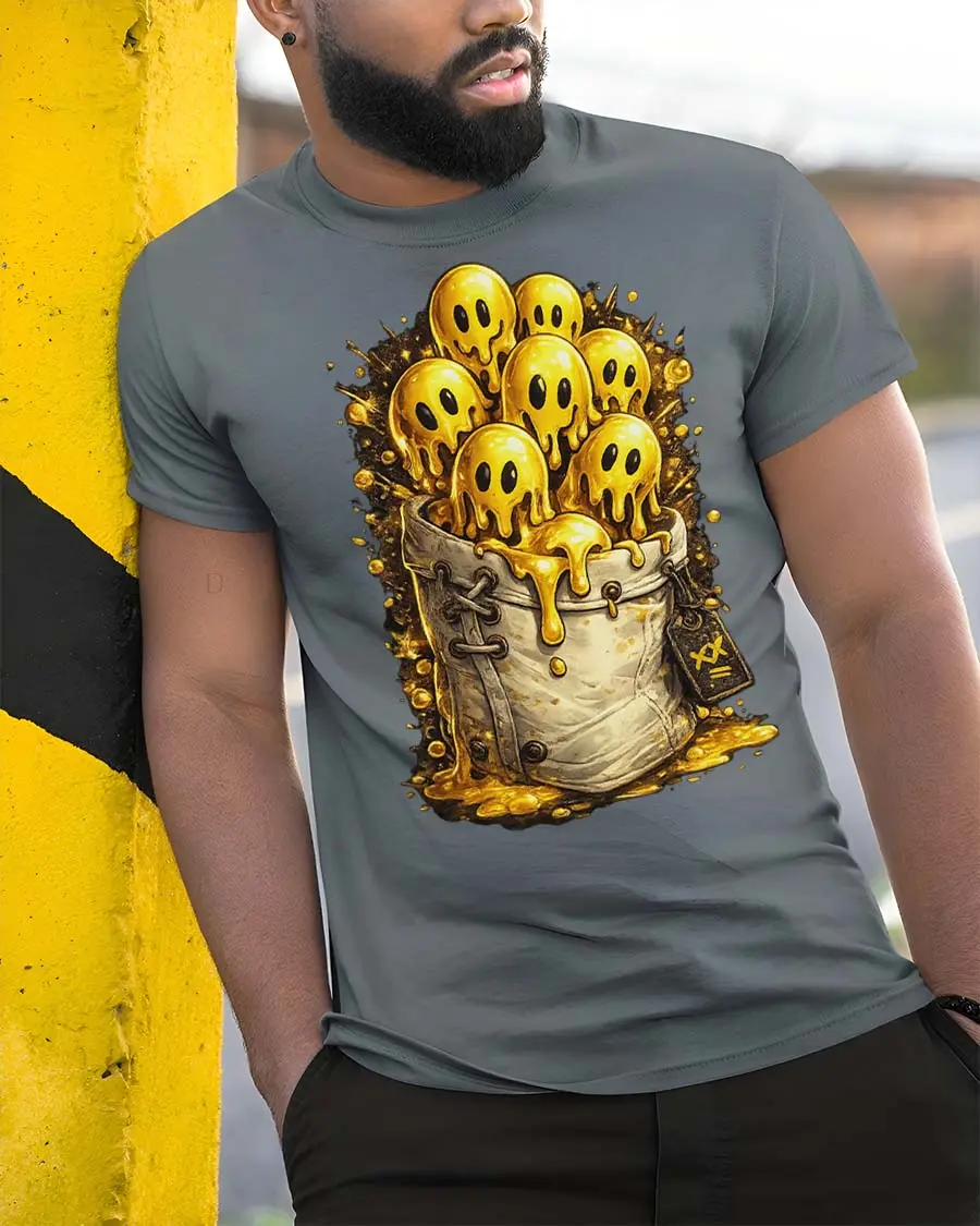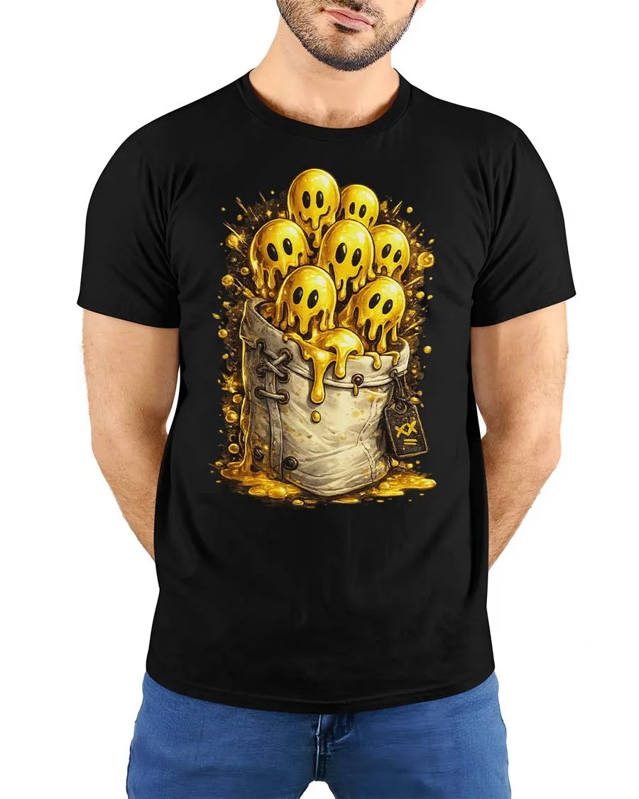 Melting Gold Ghost Bucket Graphic T Shirt Funny Art Style