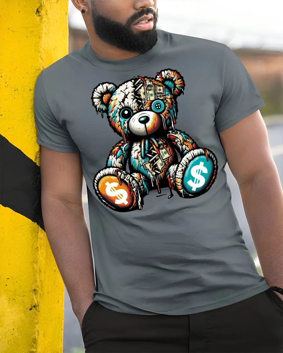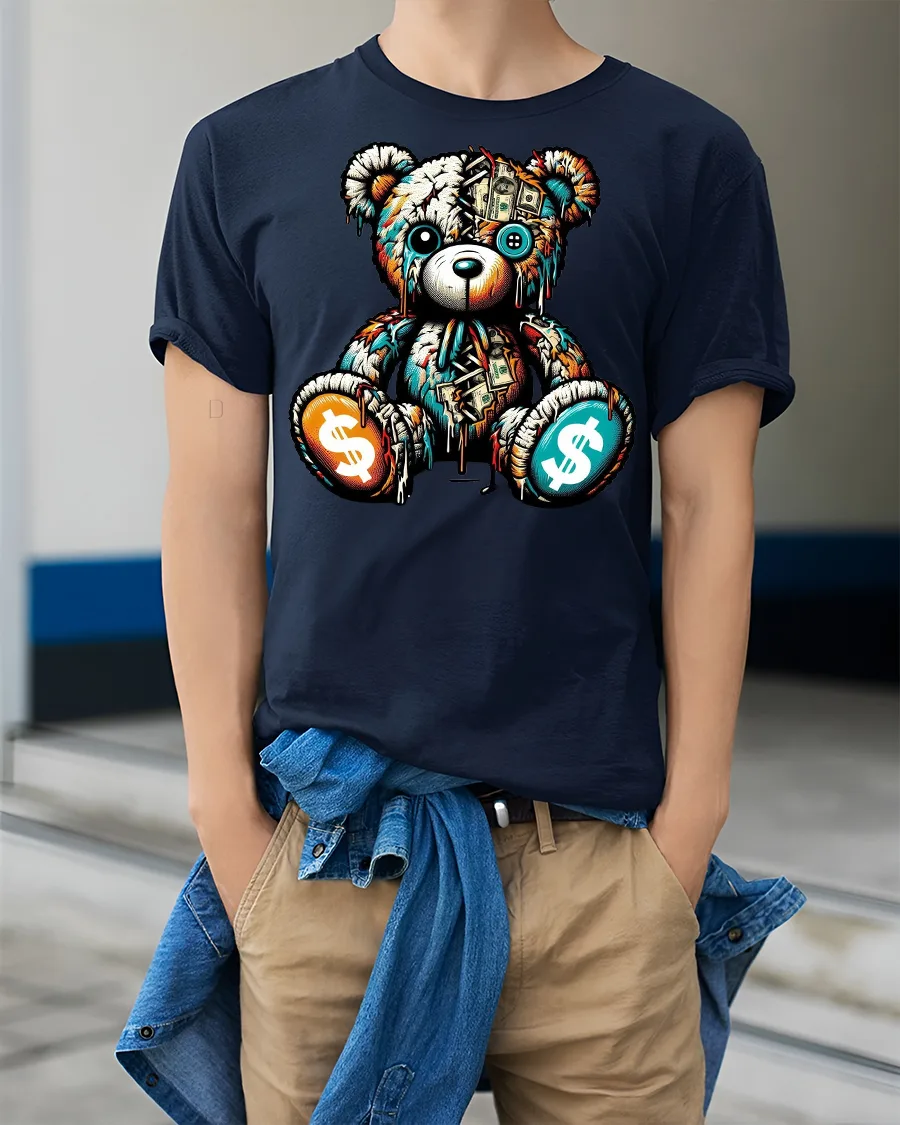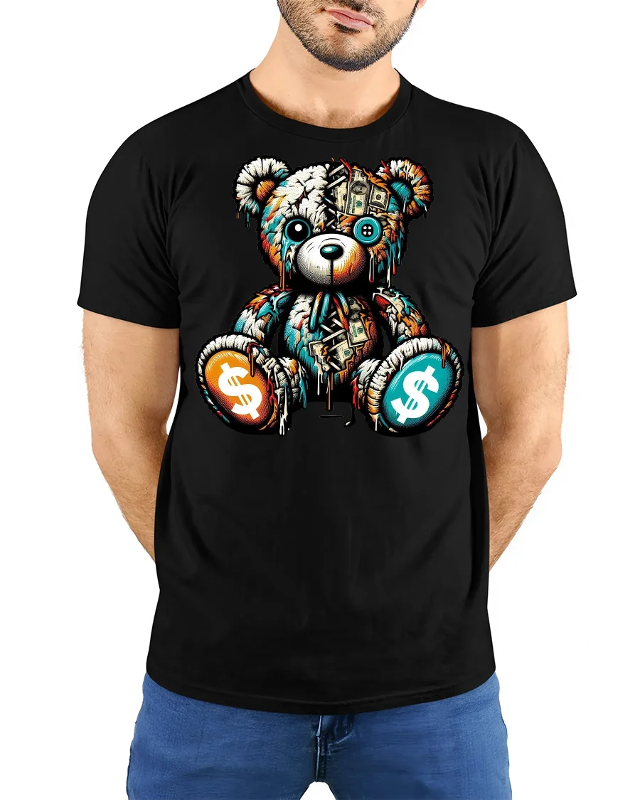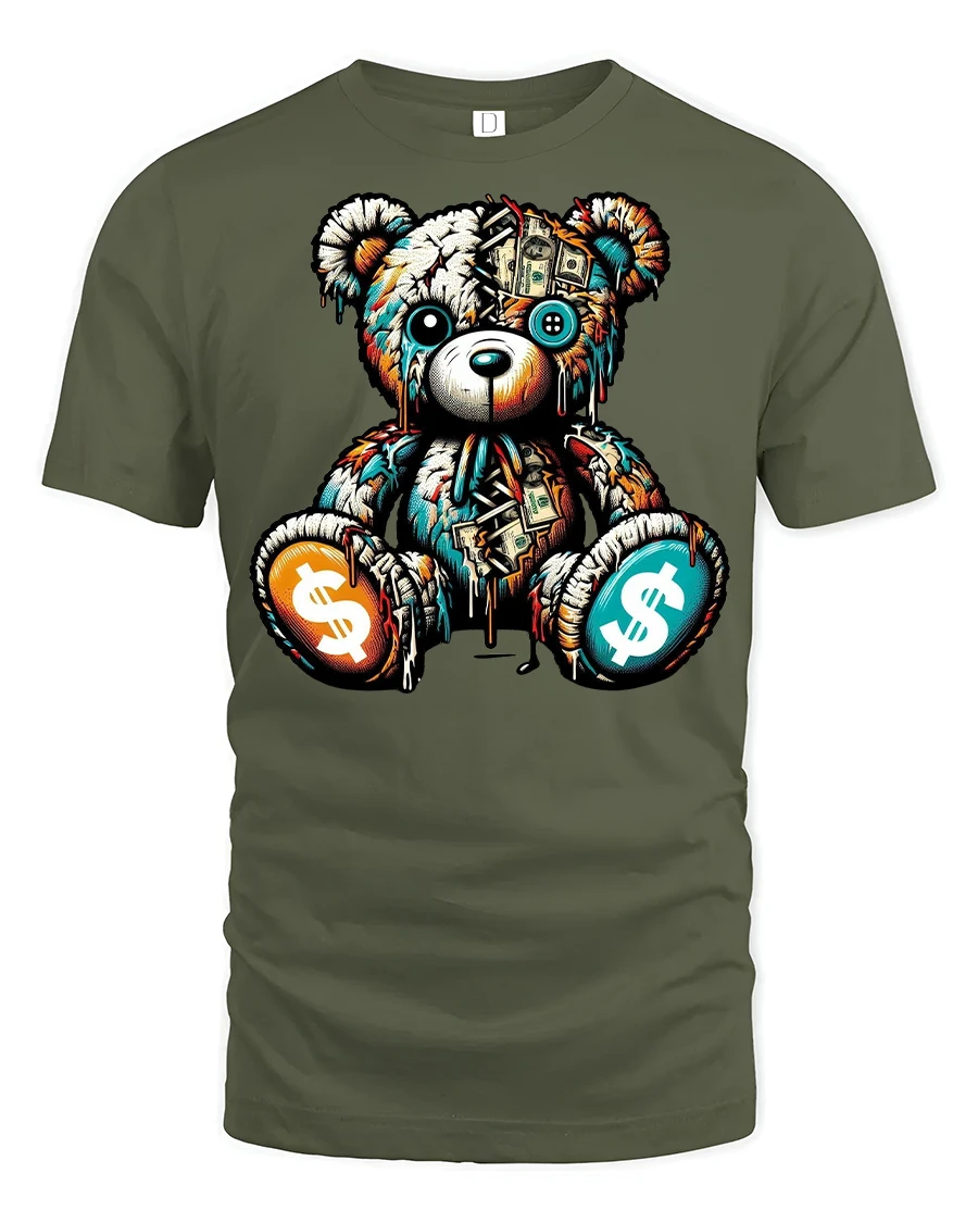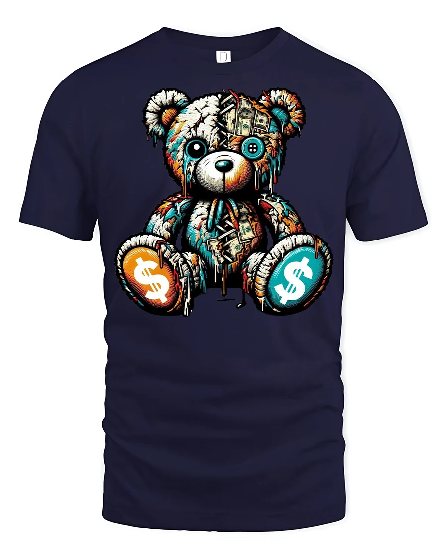 The Money Bear Streetwear Graphic Tee with Dollar Signs is a bold fashion statement for those who love edgy, urban-inspired designs. Featuring a distressed teddy bear stuffed with cash and dollar sign details on its paws, this shirt combines street art vibes with high-impact graphics that stand out in any crowd.