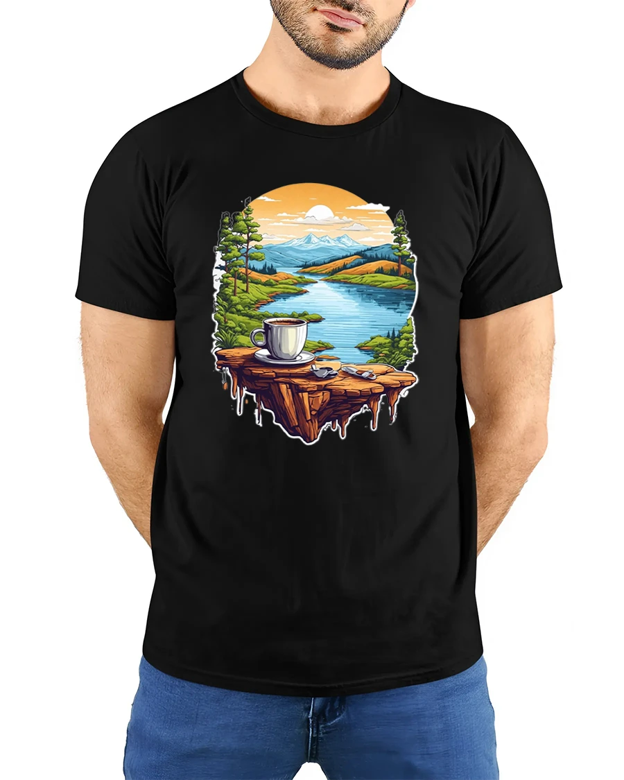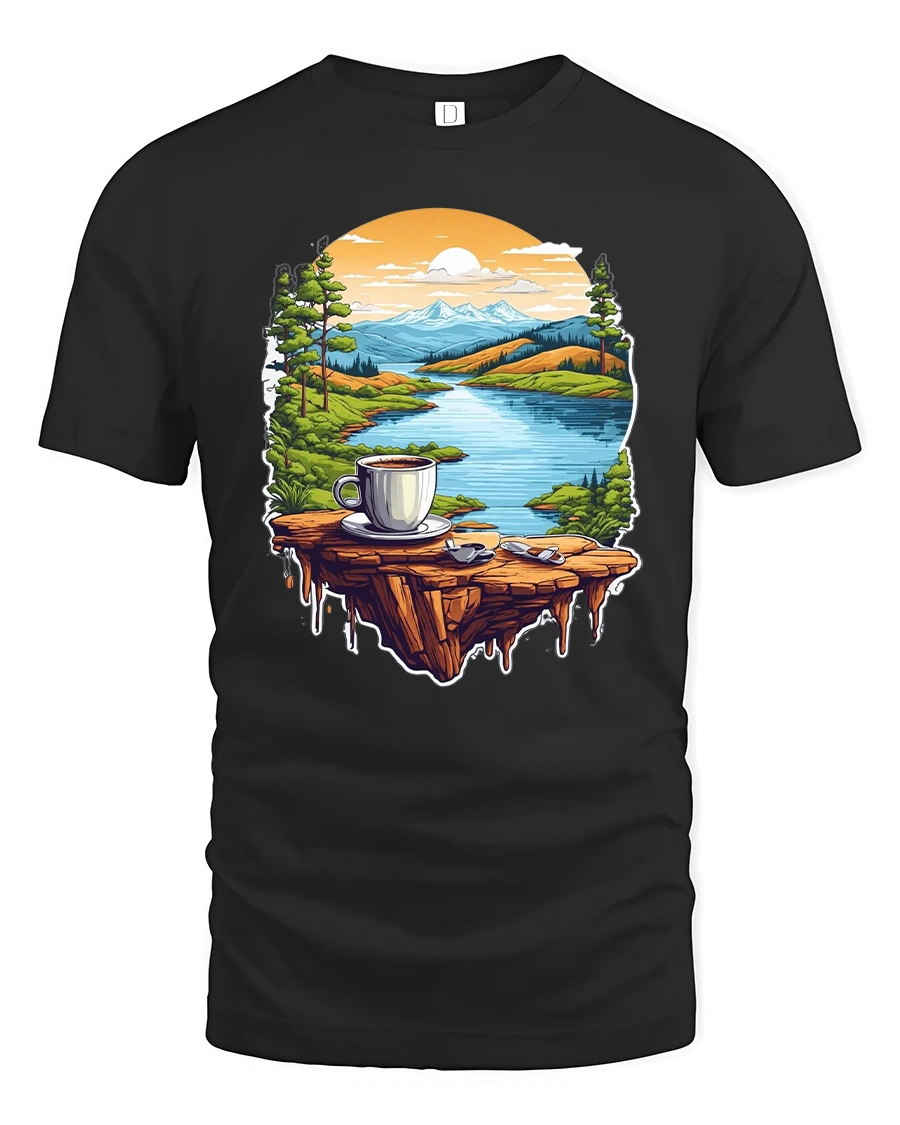 Be the first to review “Morning Coffee Lake View Adventure Nature Landscape Art Tee”