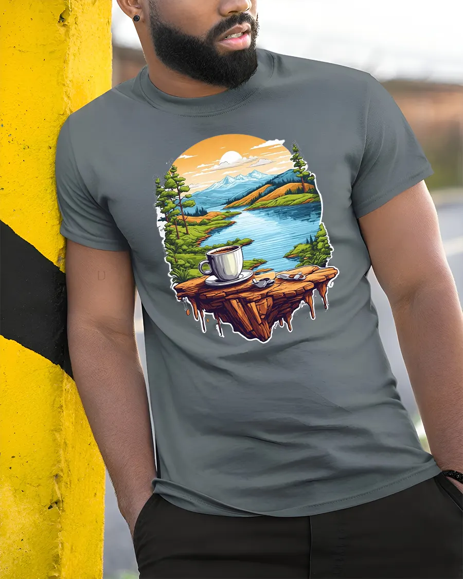 Whether you’re a coffee enthusiast or a lover of breathtaking landscapes, this tee makes a thoughtful gift and a standout addition to any wardrobe.