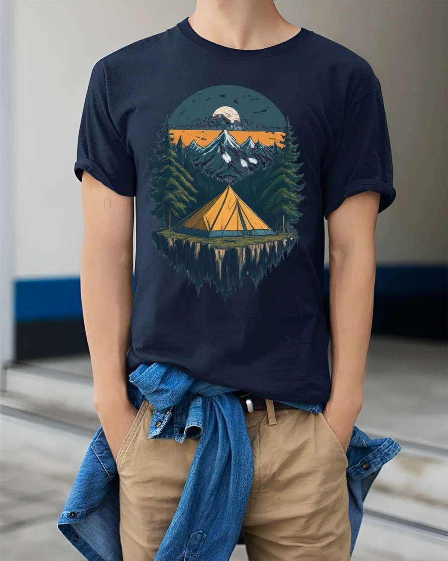 Mountain Camping Night Adventure Nature Landscape Graphic T Shirt captures the peaceful beauty of the outdoors in a stunning design.