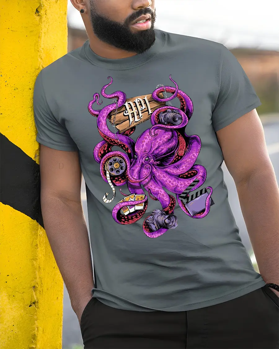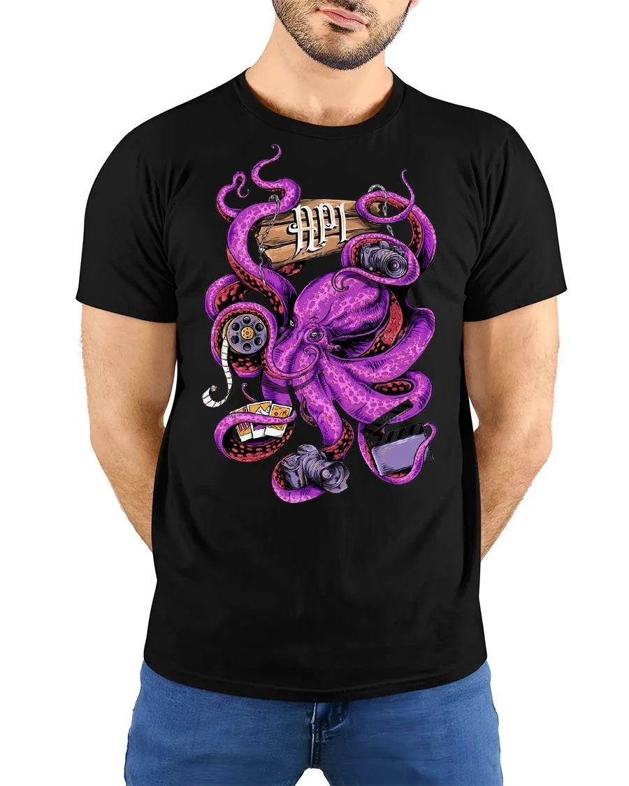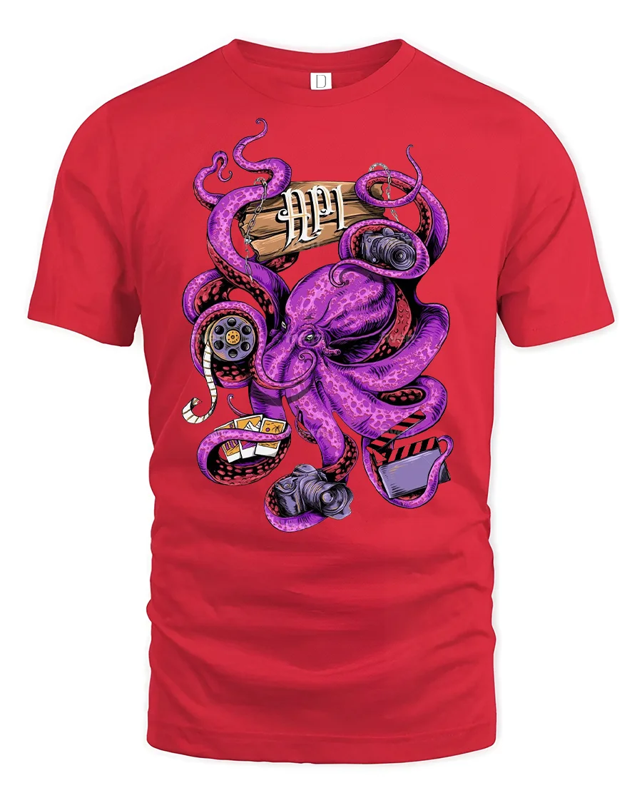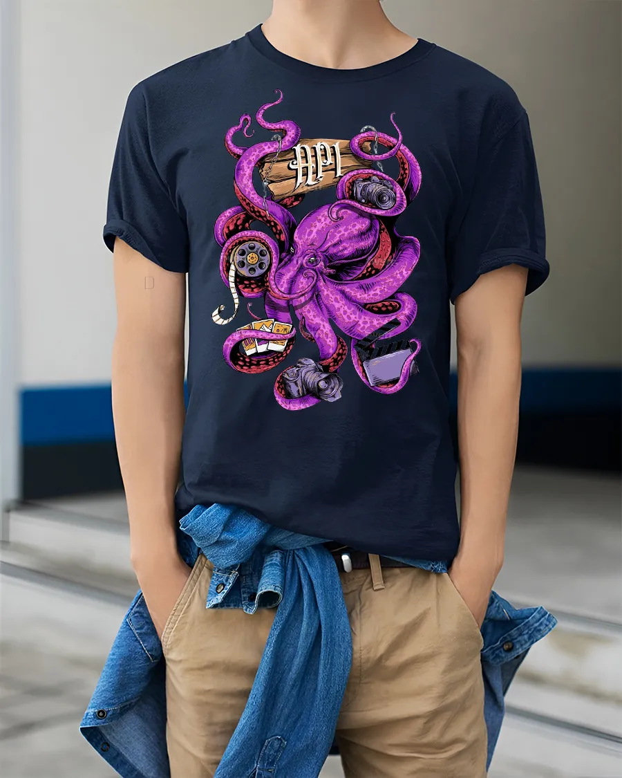 Celebrate your love for films and quirky art with the octopus t-shirt that is sure to turn heads. It also makes an ideal gift for friends who are film buffs, octopus fans, or collectors of unique graphic apparel. Add this vibrant and funny tee to your wardrobe for a blend of comfort, creativity, and movie magic.