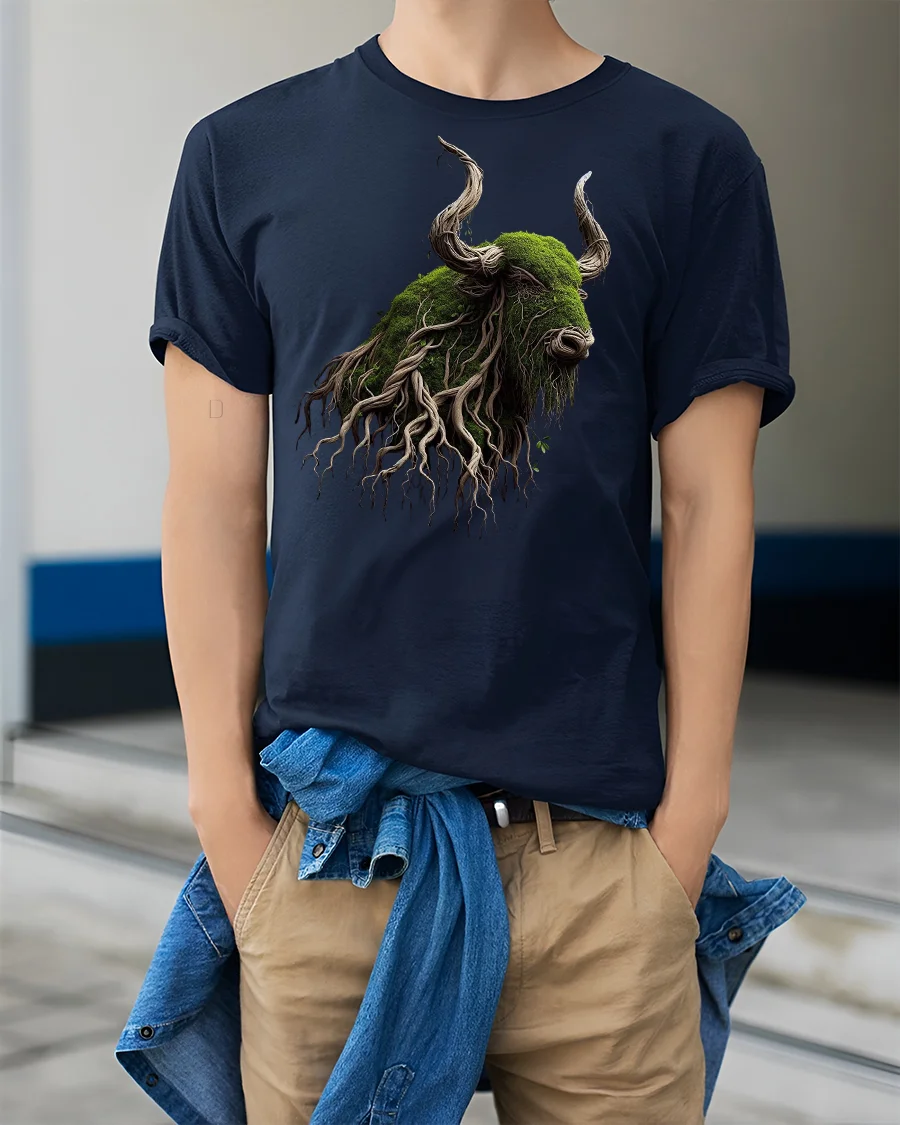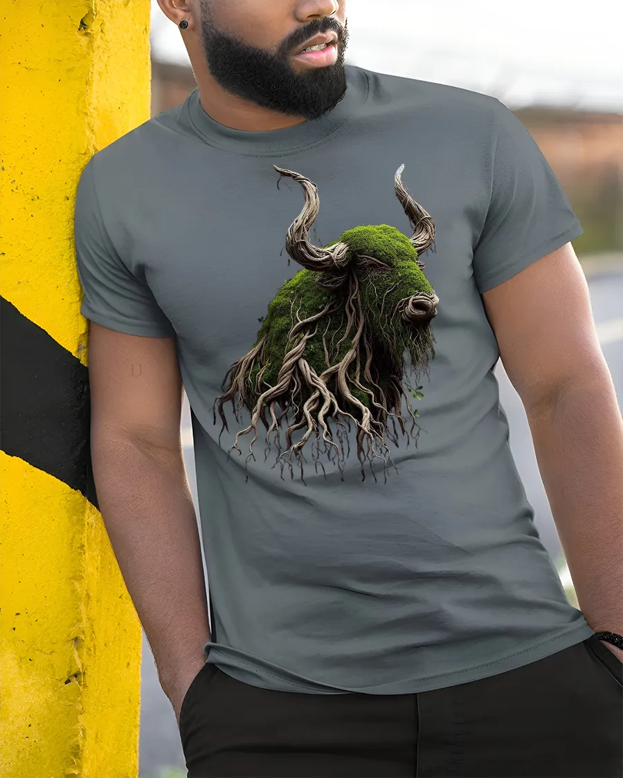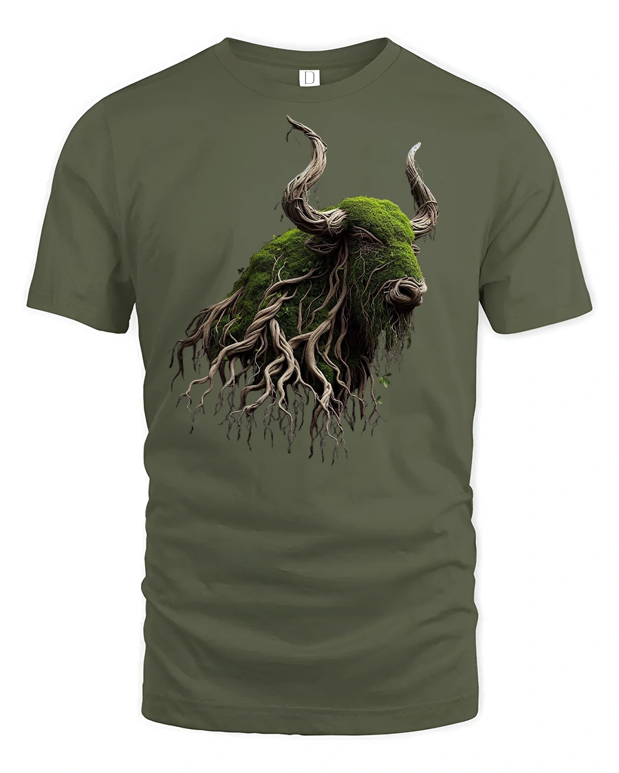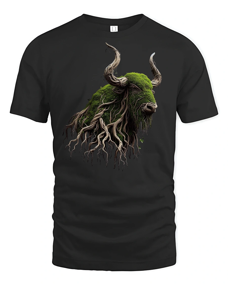 Mystic Forest Buffalo Roots Nature Art Graphic Tee blends fantasy, nature, and tribal spirit into one stunning design. This unique artwork features a buffalo head seamlessly formed from tree roots and moss, symbolizing strength, connection to the earth, and the wild beauty of nature. Perfect for those who appreciate eco-inspired art and mystical style, this tee makes a bold fashion statement.