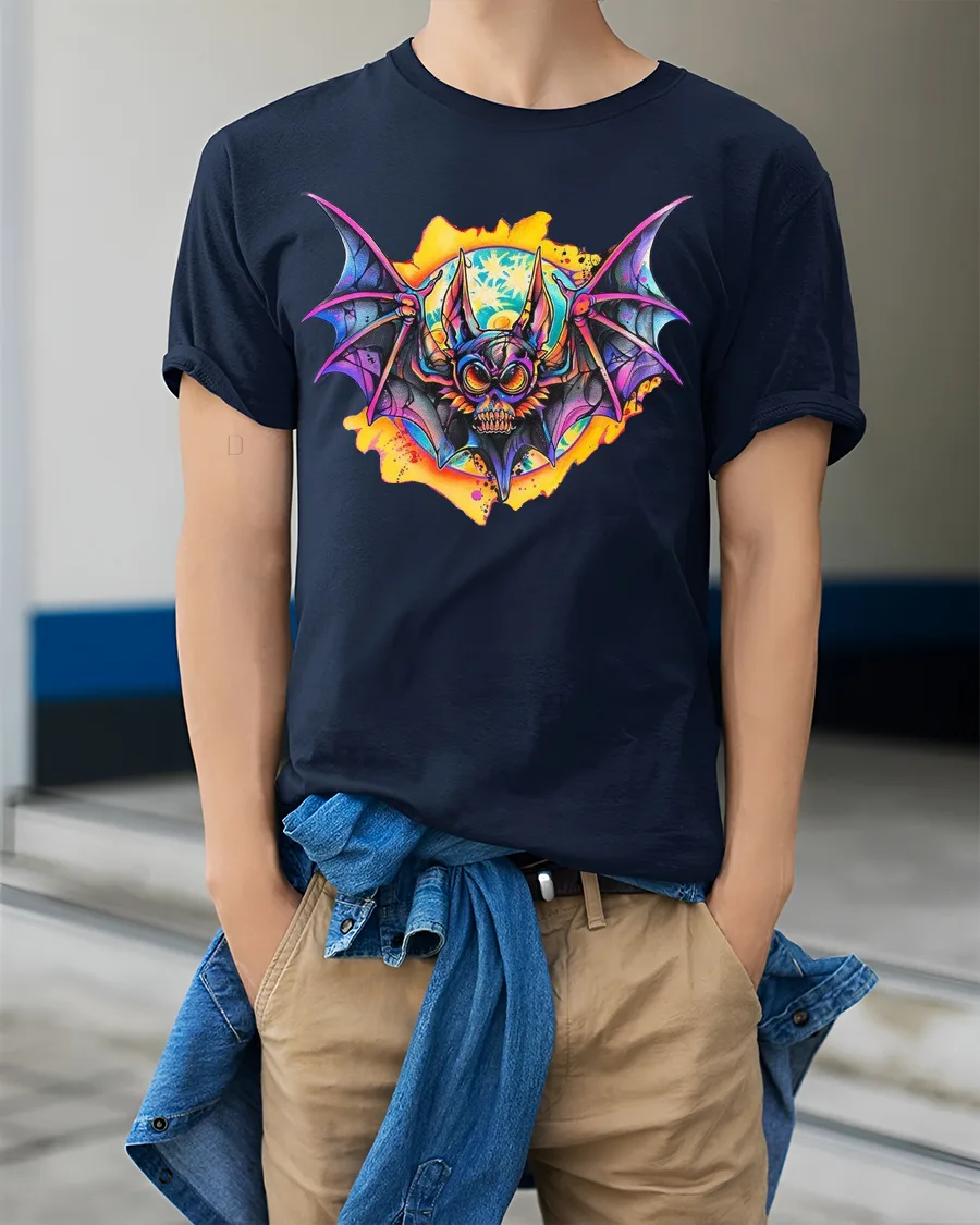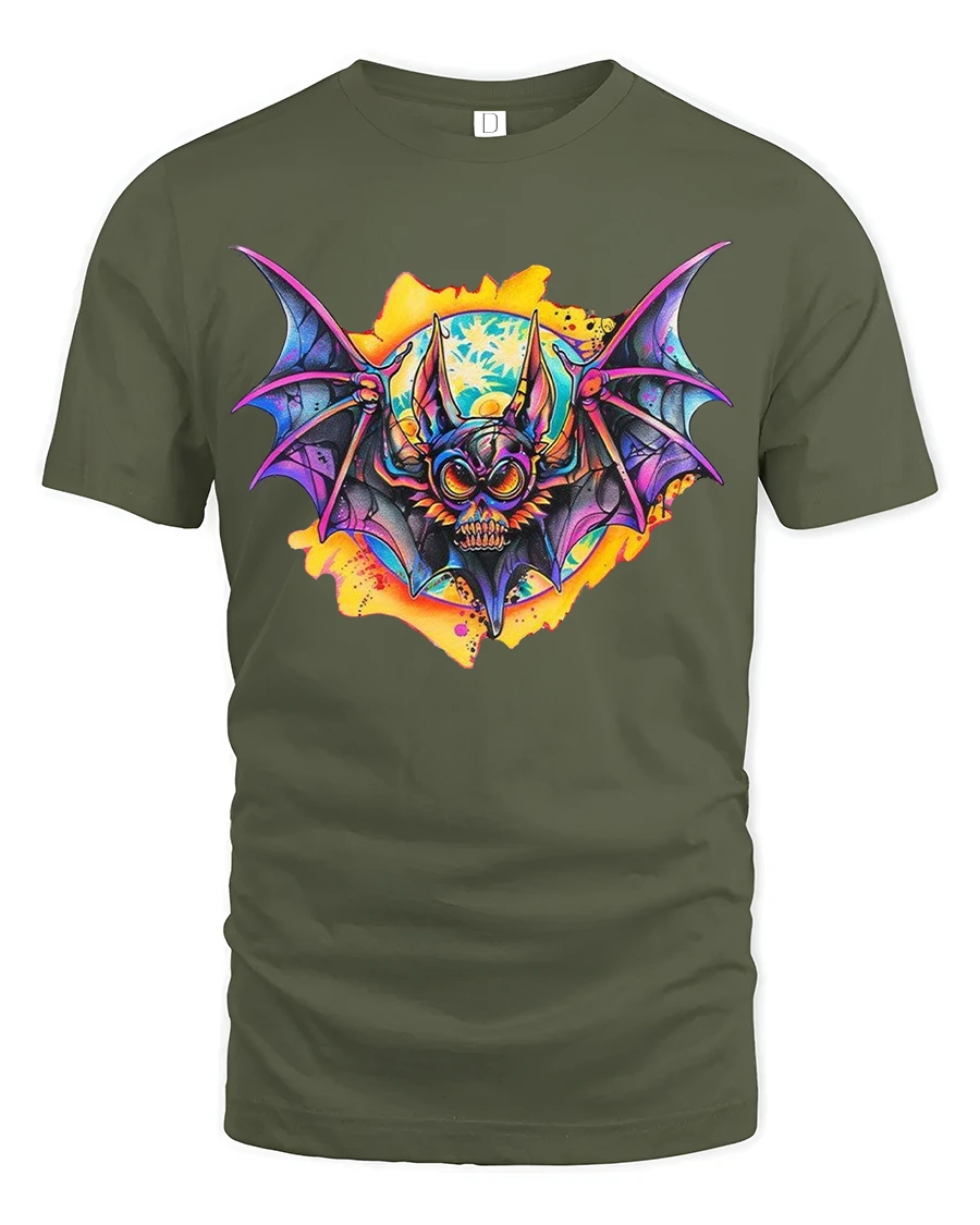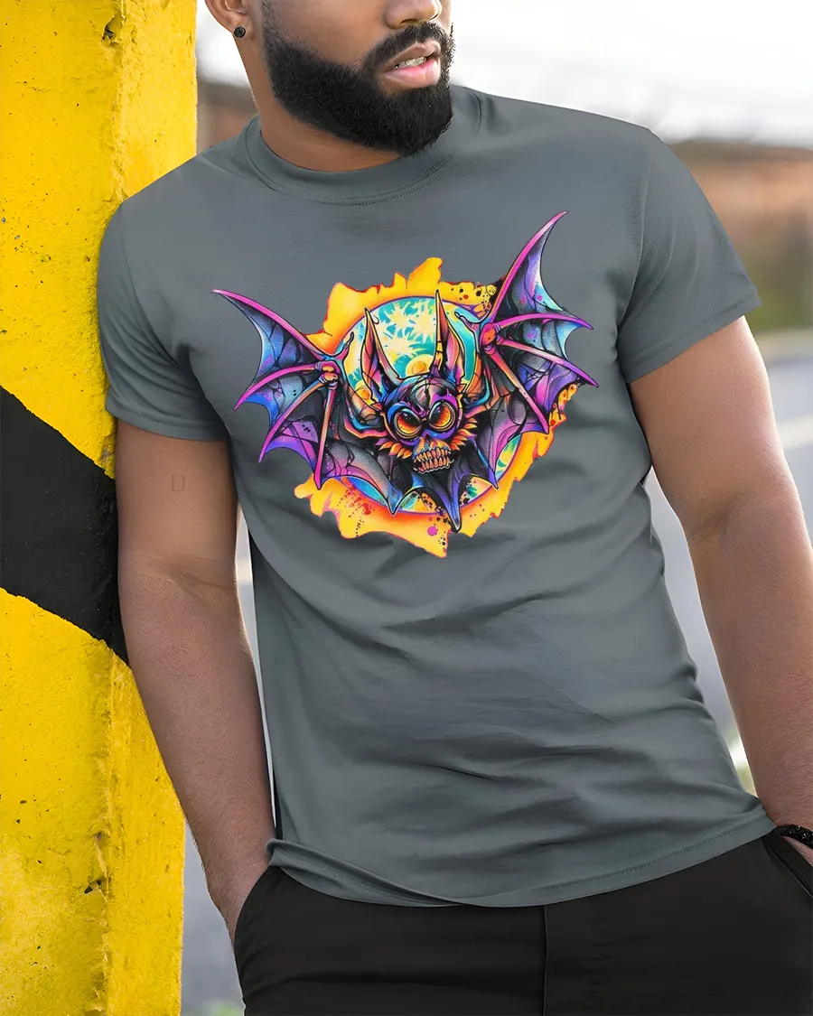 Be the first to review “Neon Bat Skull Art T Shirt Dark Fantasy Graphic Tee”