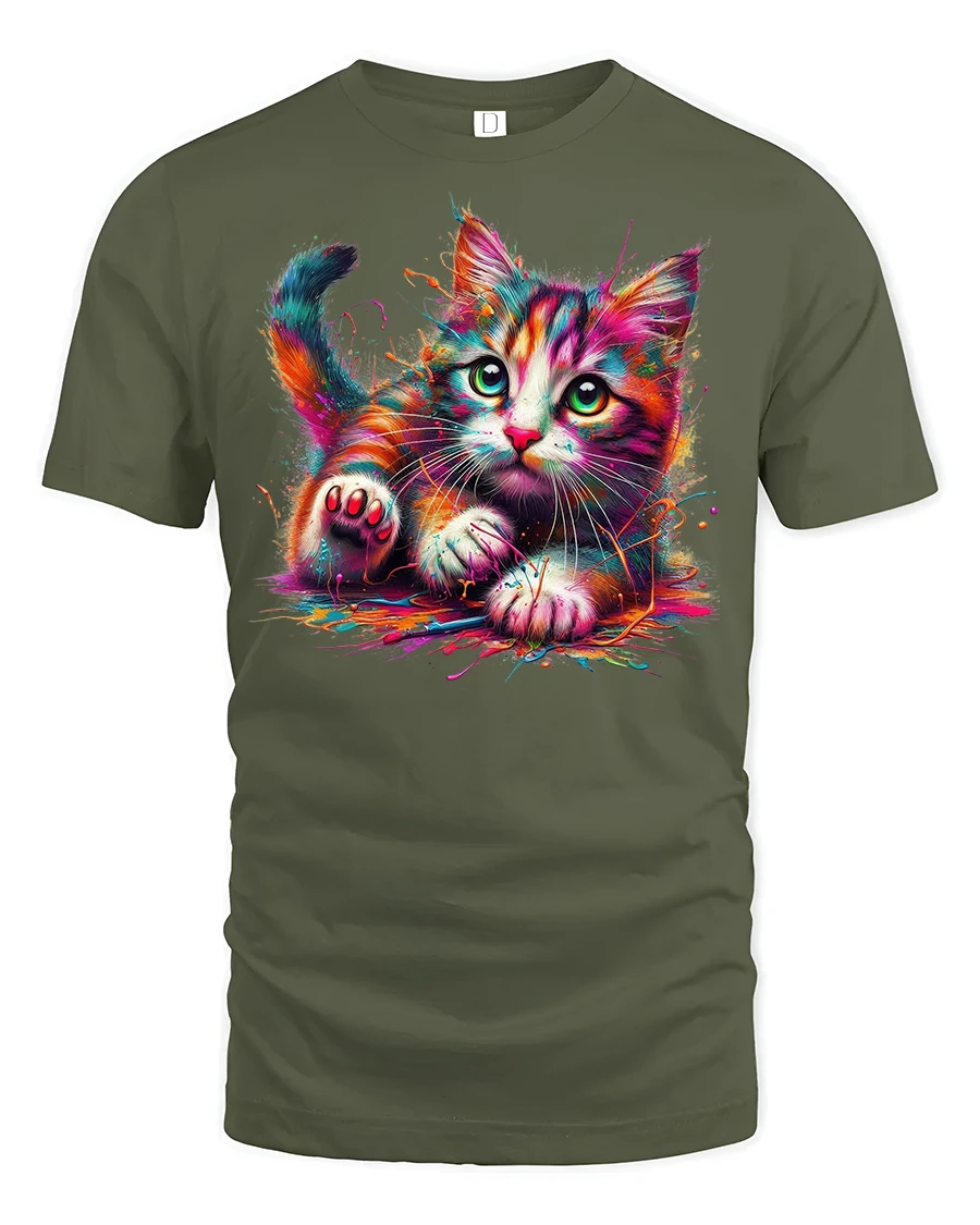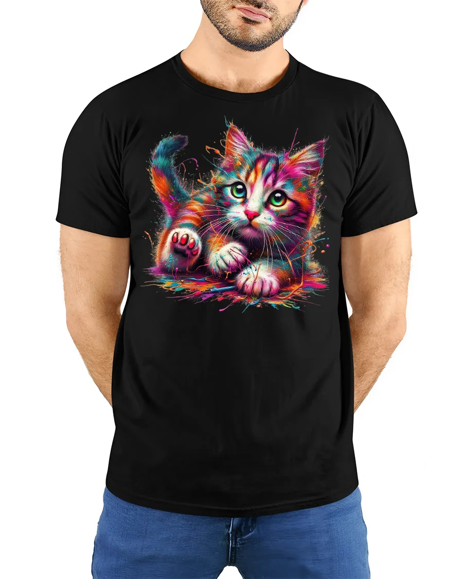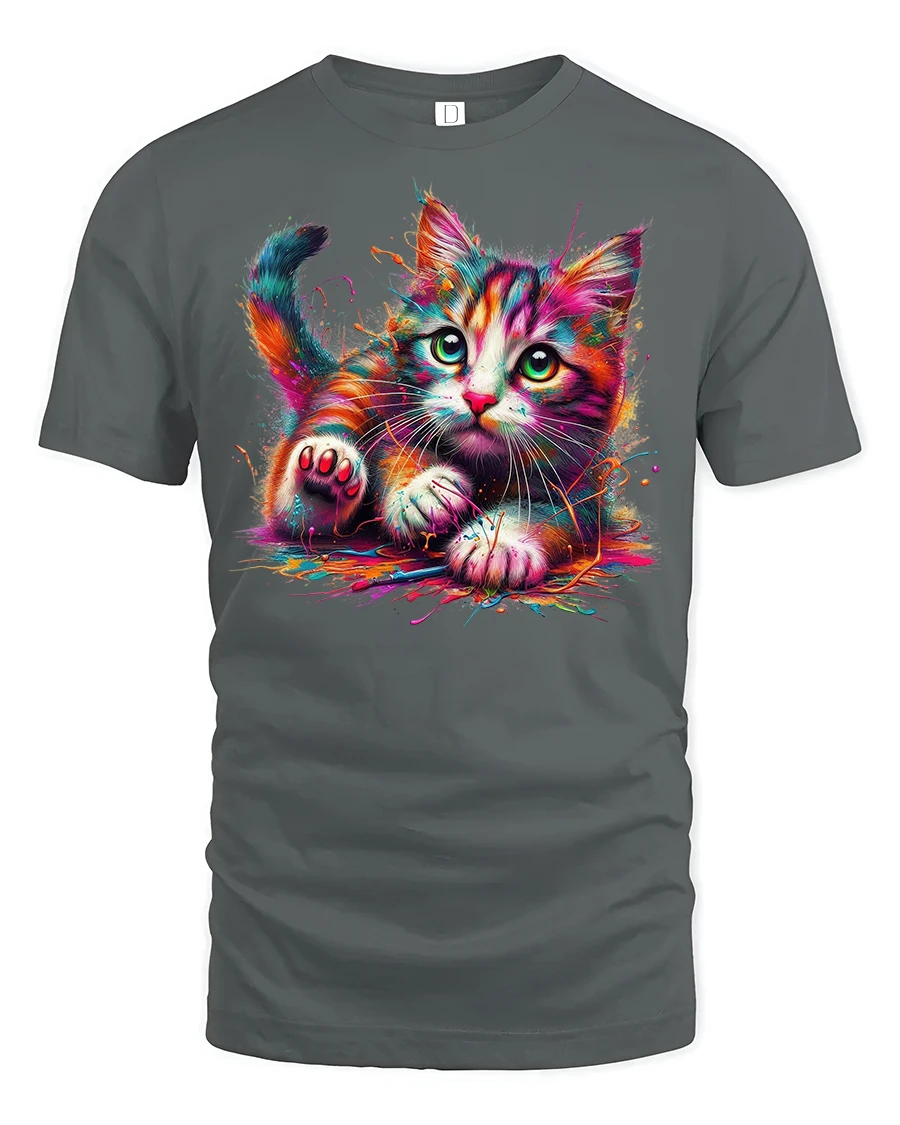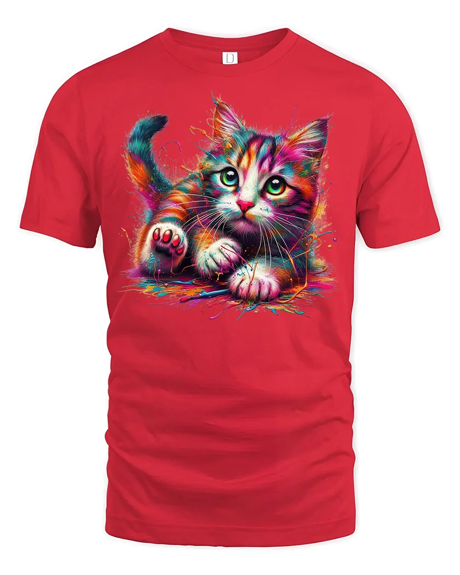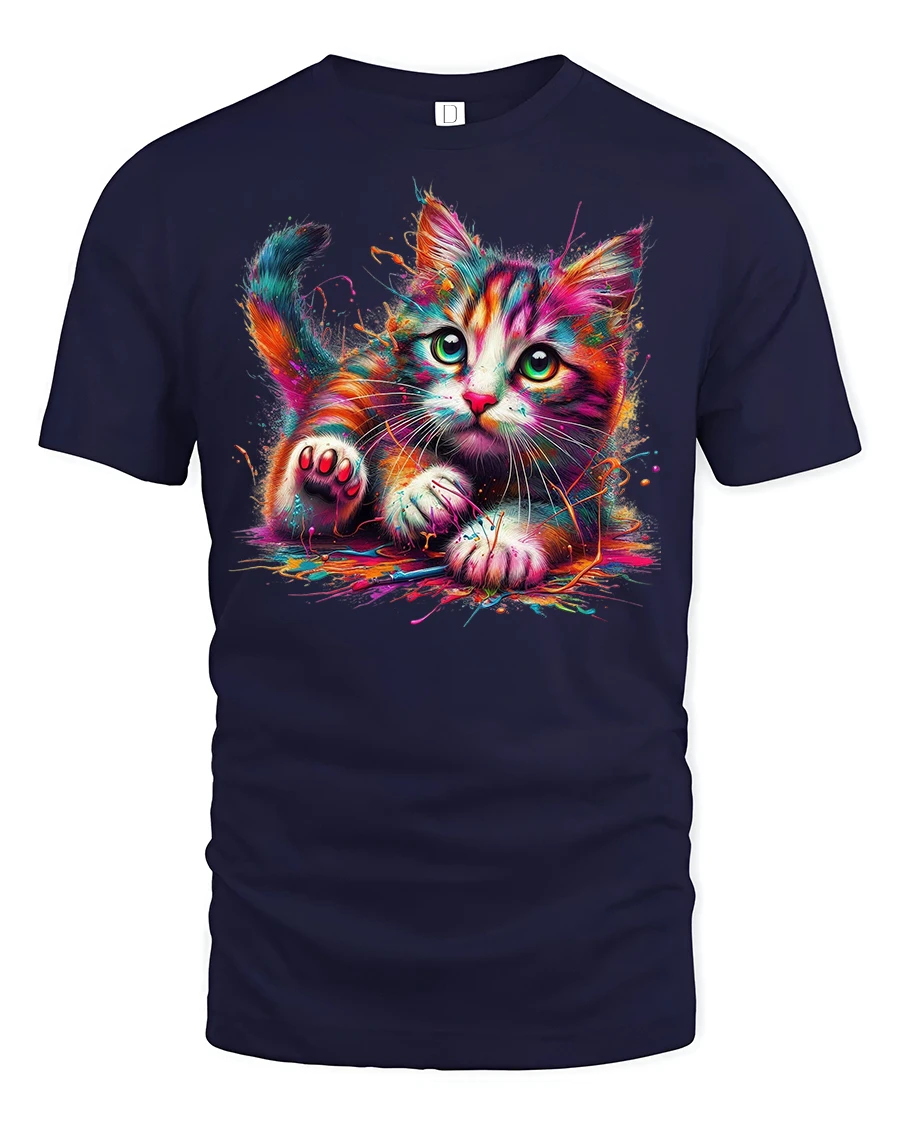 This tee also makes a fantastic gift for cat owners, animal enthusiasts, or anyone who loves colorful and artistic fashion. Show off your love for cats in the most stylish way with this vibrant and eye-catching t-shirt.