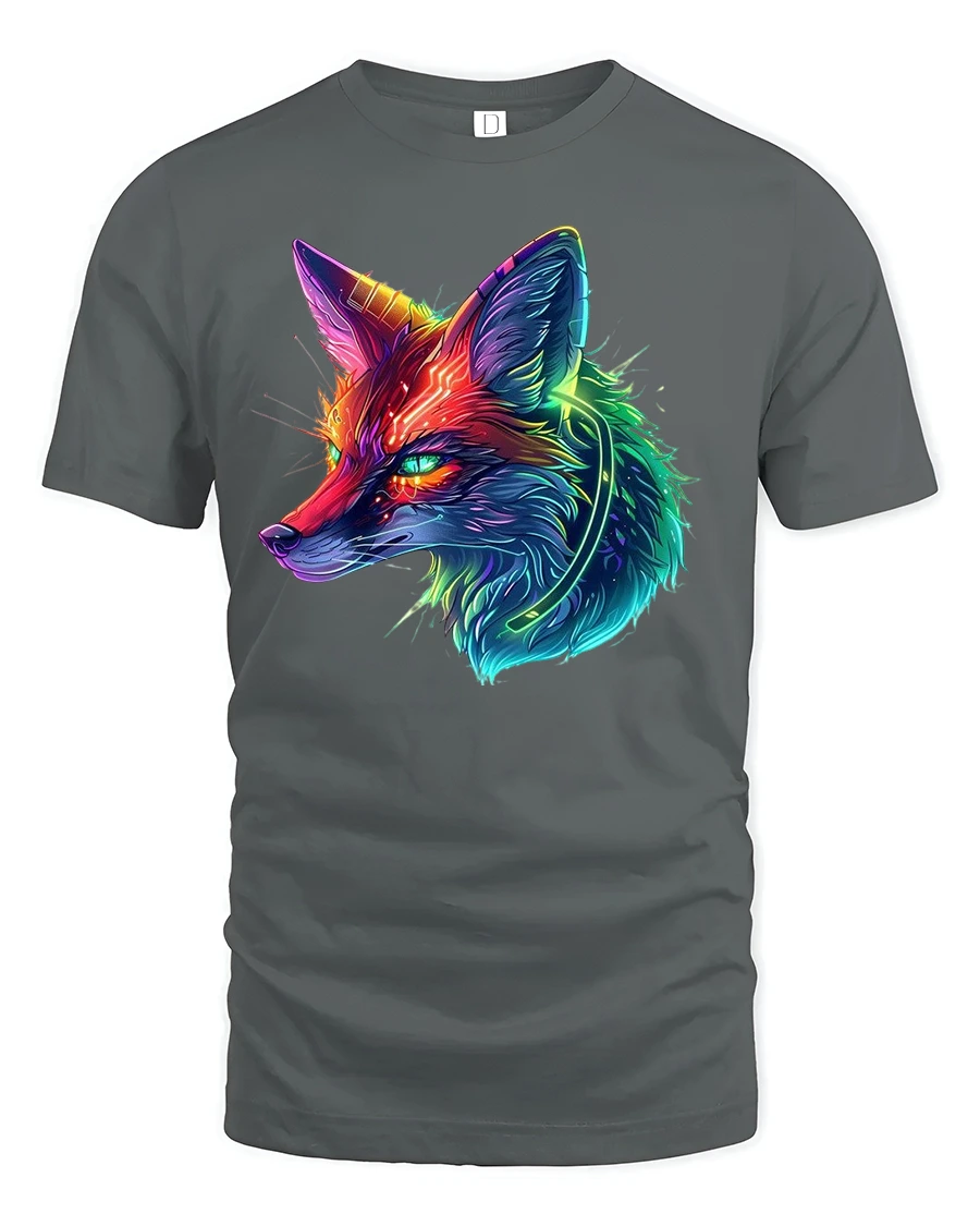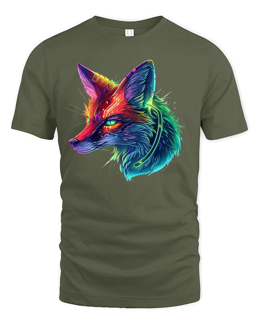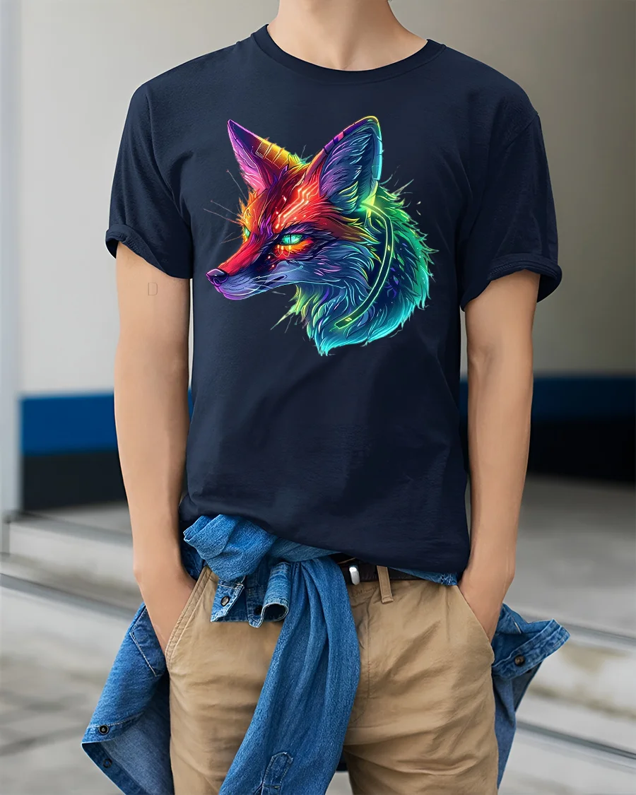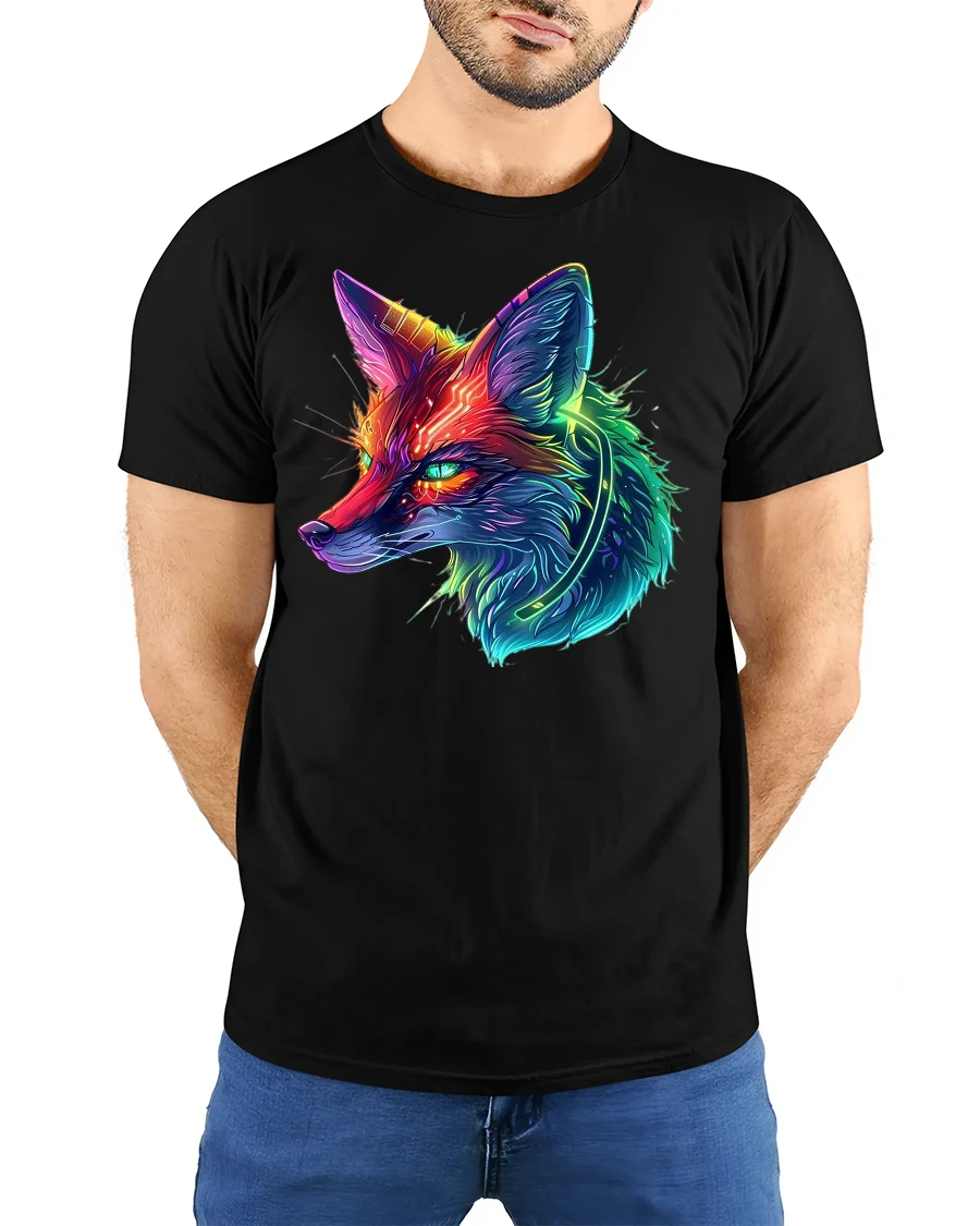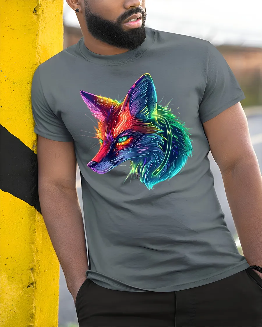 Ideal for animal lovers, cyberpunk fashion fans, or anyone who enjoys bold, colorful graphics, the Neon Cyber Fox Head Colorful Graphic Streetwear Tee pairs easily with jeans, joggers, or layered with a hoodie. Bring out your inner fox and electrify your look with this unique and futuristic design.