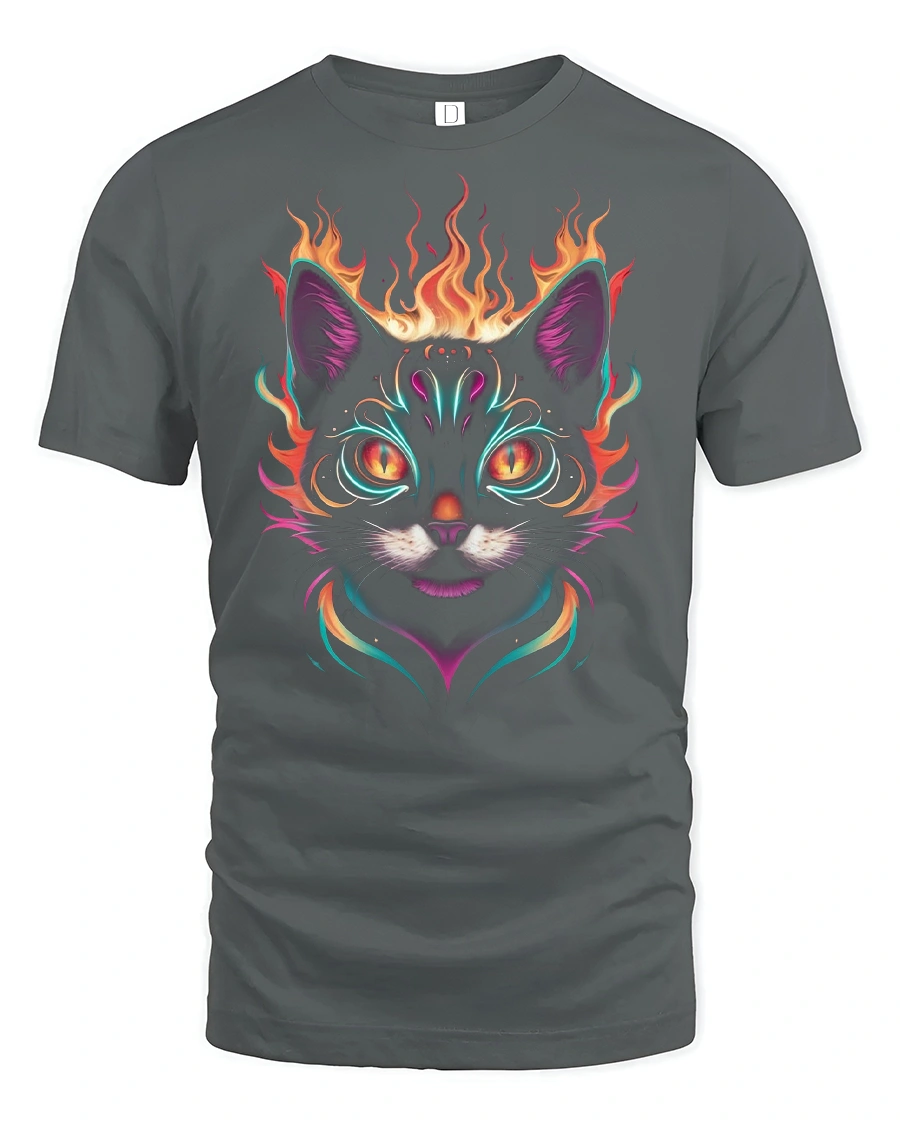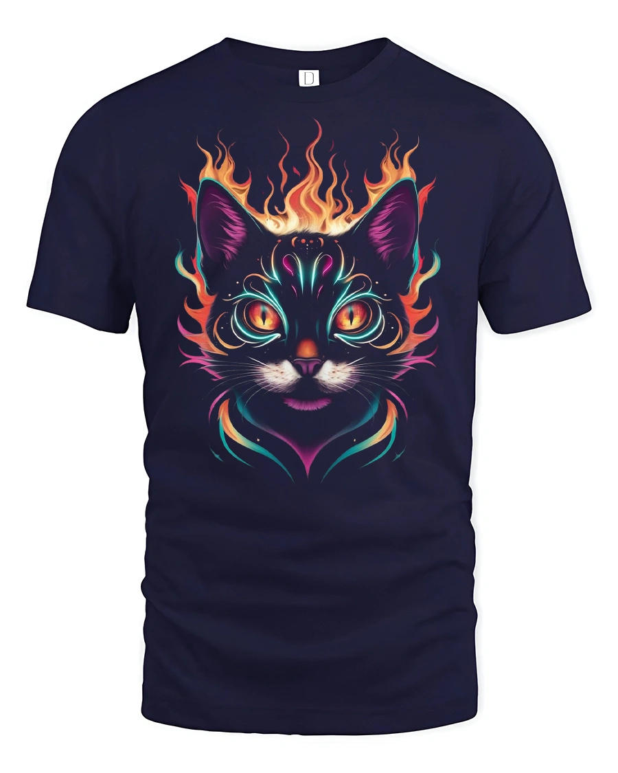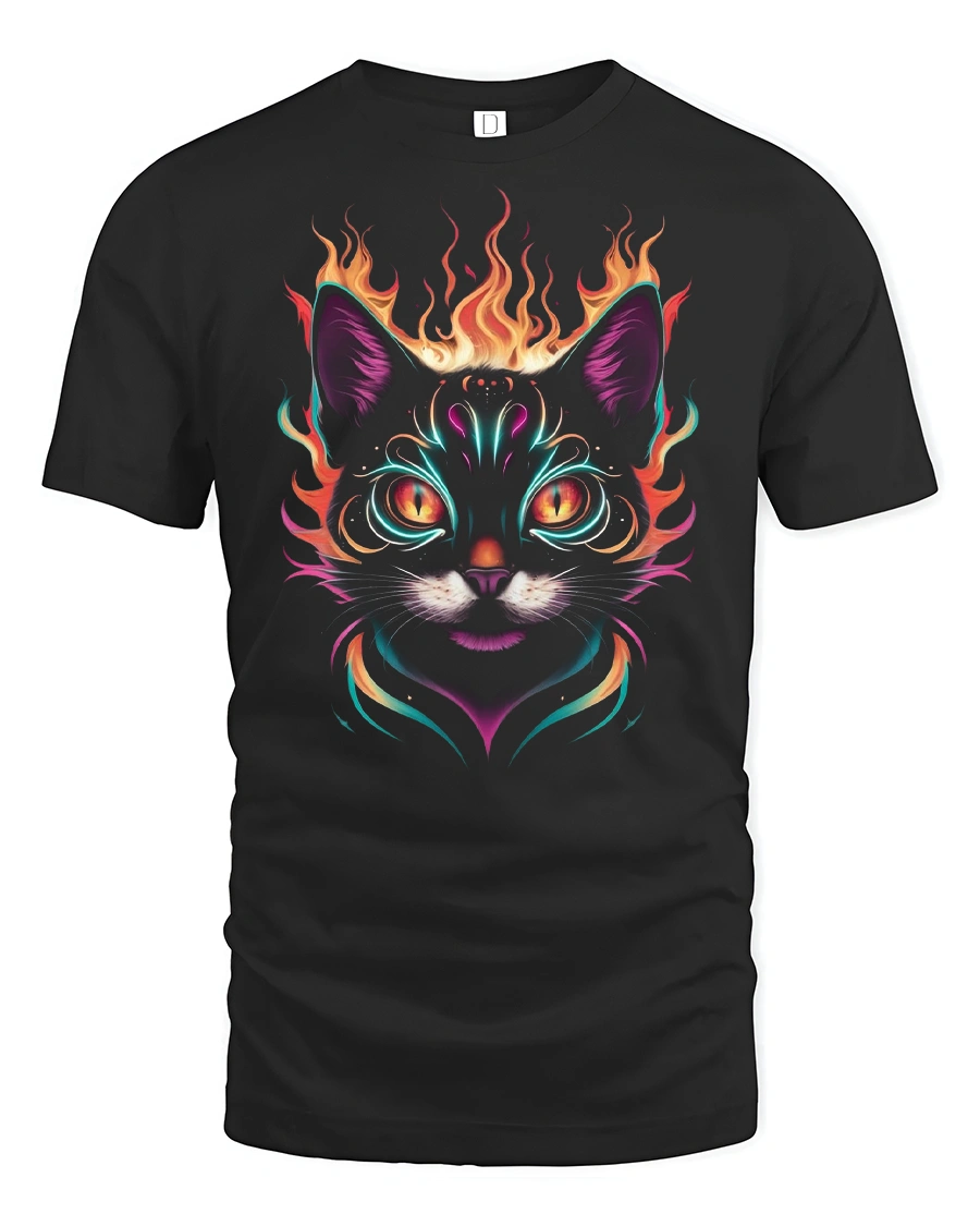 Crafted from soft and breathable material, this flaming cat graphic tee is built for comfort and durability. The vibrant print is made to last, keeping its neon colors and fiery details sharp even after multiple washes. Perfect for cat lovers, gothic fashion fans, or anyone who enjoys bold statement pieces, this tee captures the wild and mysterious spirit of the feline world.