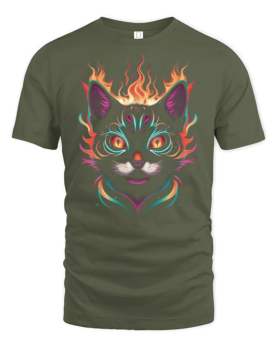 Neon Fire Cat Head Glow Flame Graphic Printed T-Shirt is a bold and fiery design perfect for anyone who loves unique streetwear and eye-catching art. Featuring a cat’s head surrounded by glowing neon flames, this graphic tee blends fantasy, art, and edgy style into one unforgettable piece. Its glowing eyes and bright color palette make it stand out in any crowd, adding instant personality to your wardrobe.