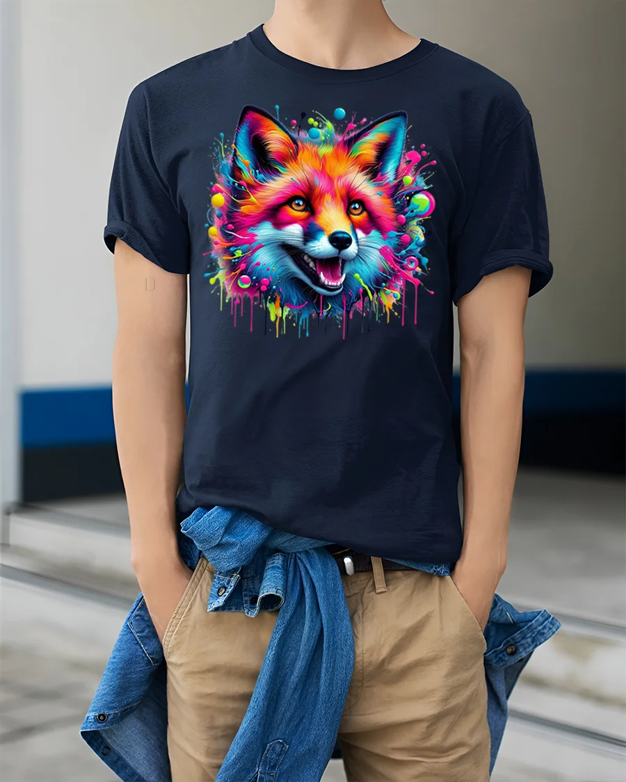 Stand out in the crowd with this colorful fox t-shirt that embodies creativity and freedom.