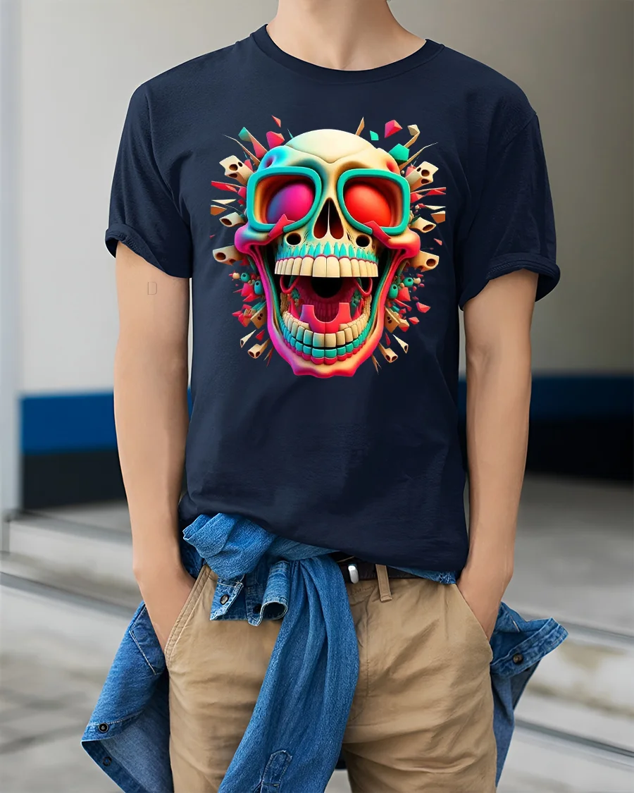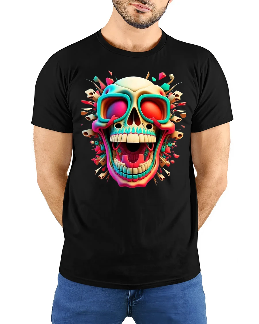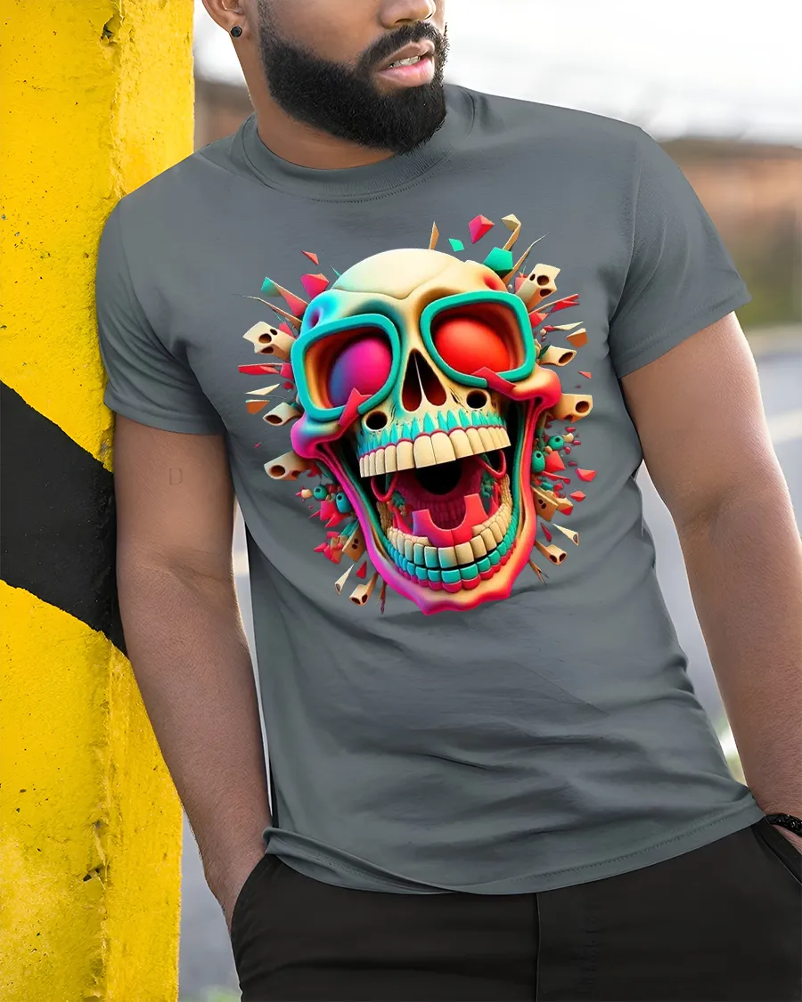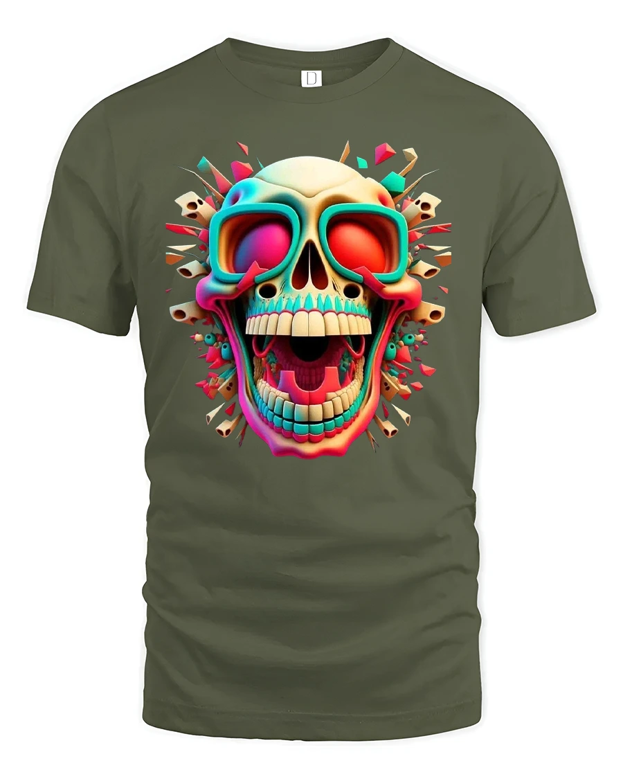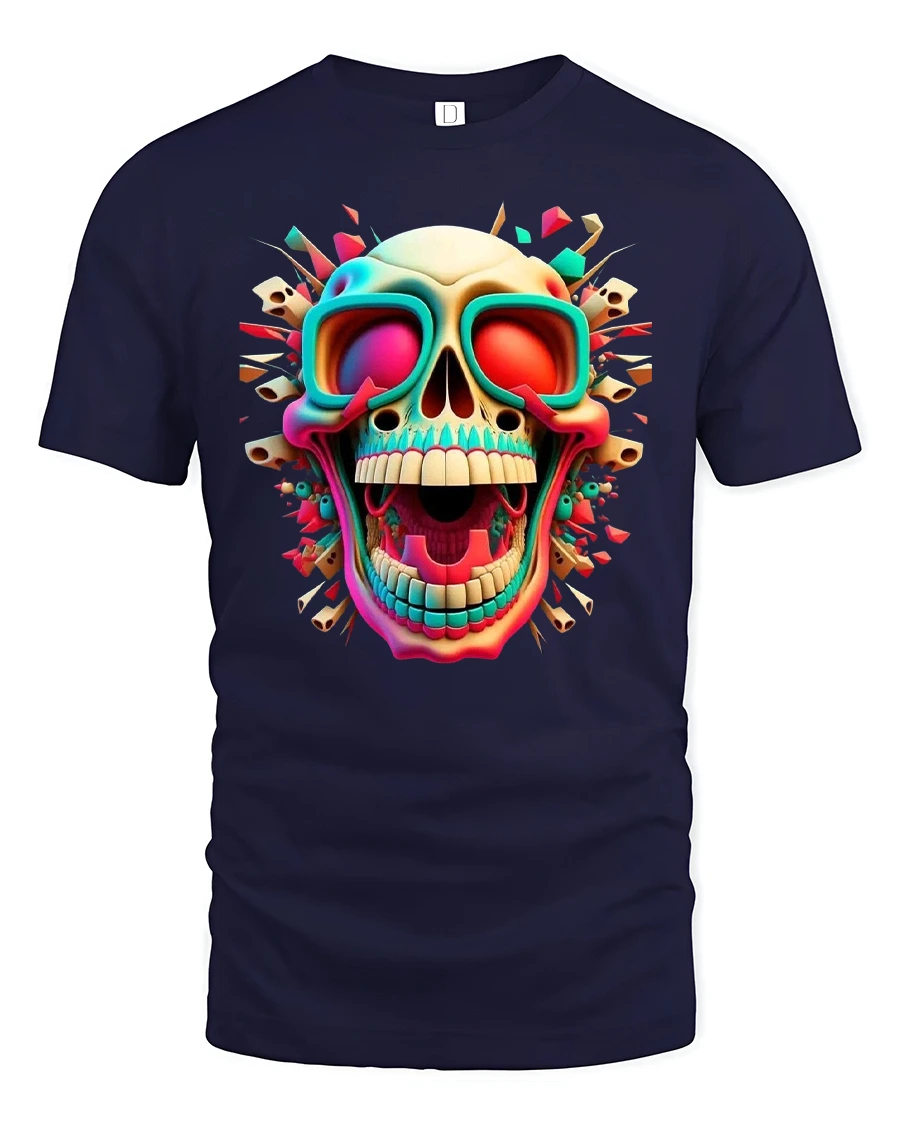 Featuring a 3D skull with vibrant neon colors and explosive geometric details, this design captures the perfect mix of edge, art, and attitude.
