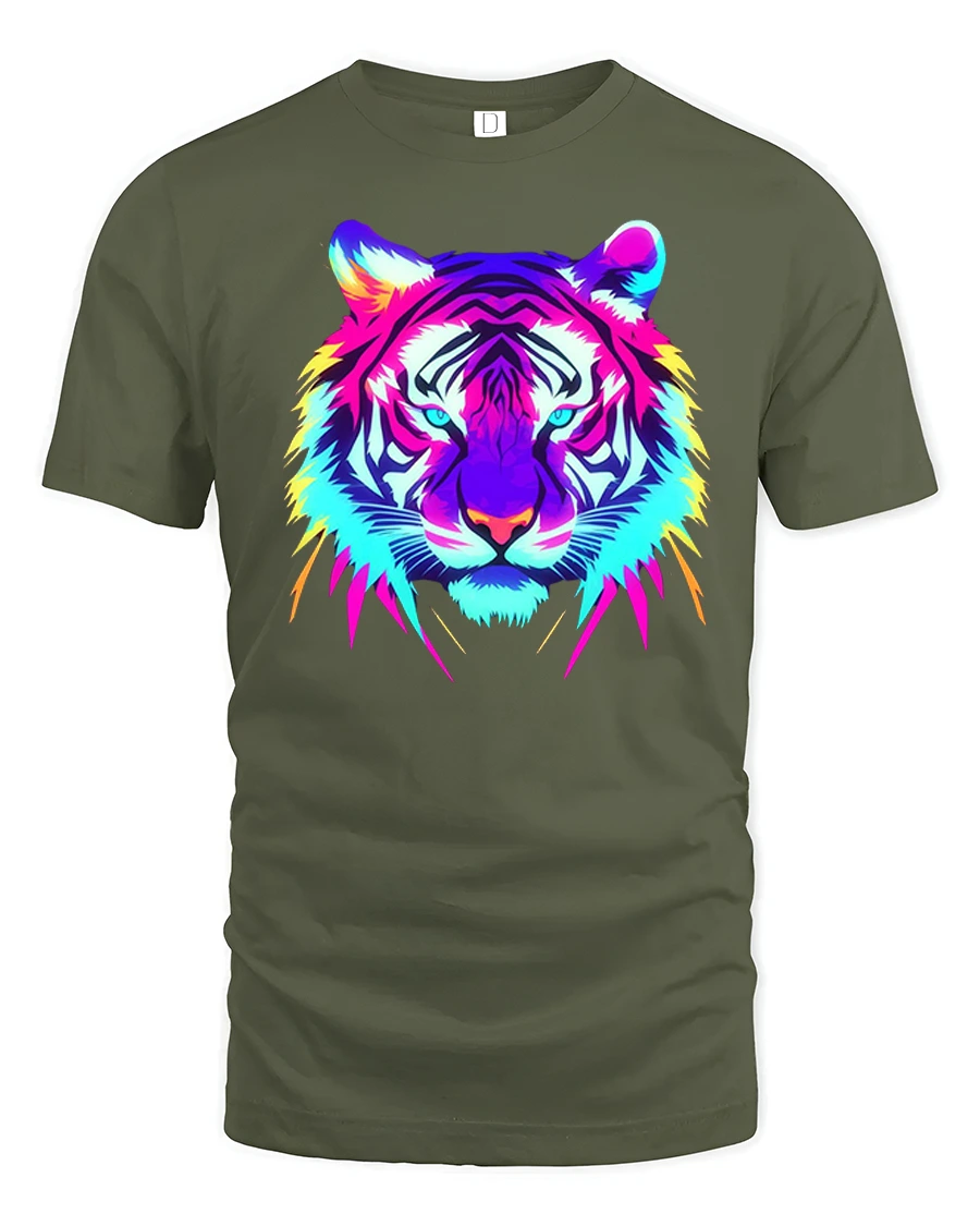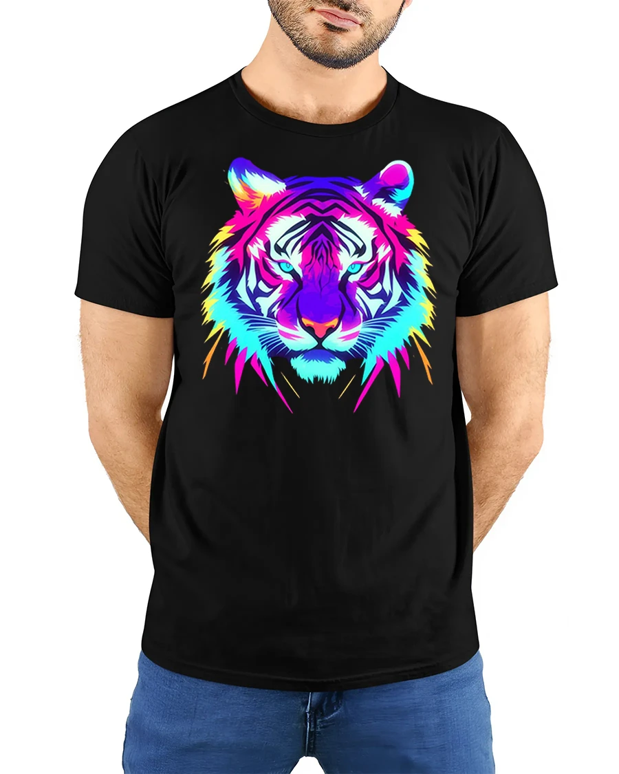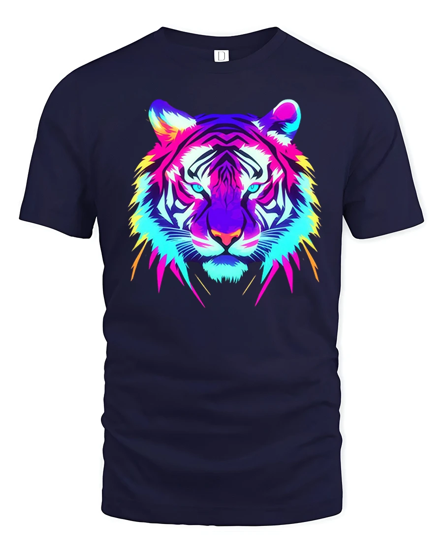 The Neon Tiger Face Color Splash Art Graphic T Shirt Tee is perfect for those who love bold colors powerful animals and modern art aesthetics.