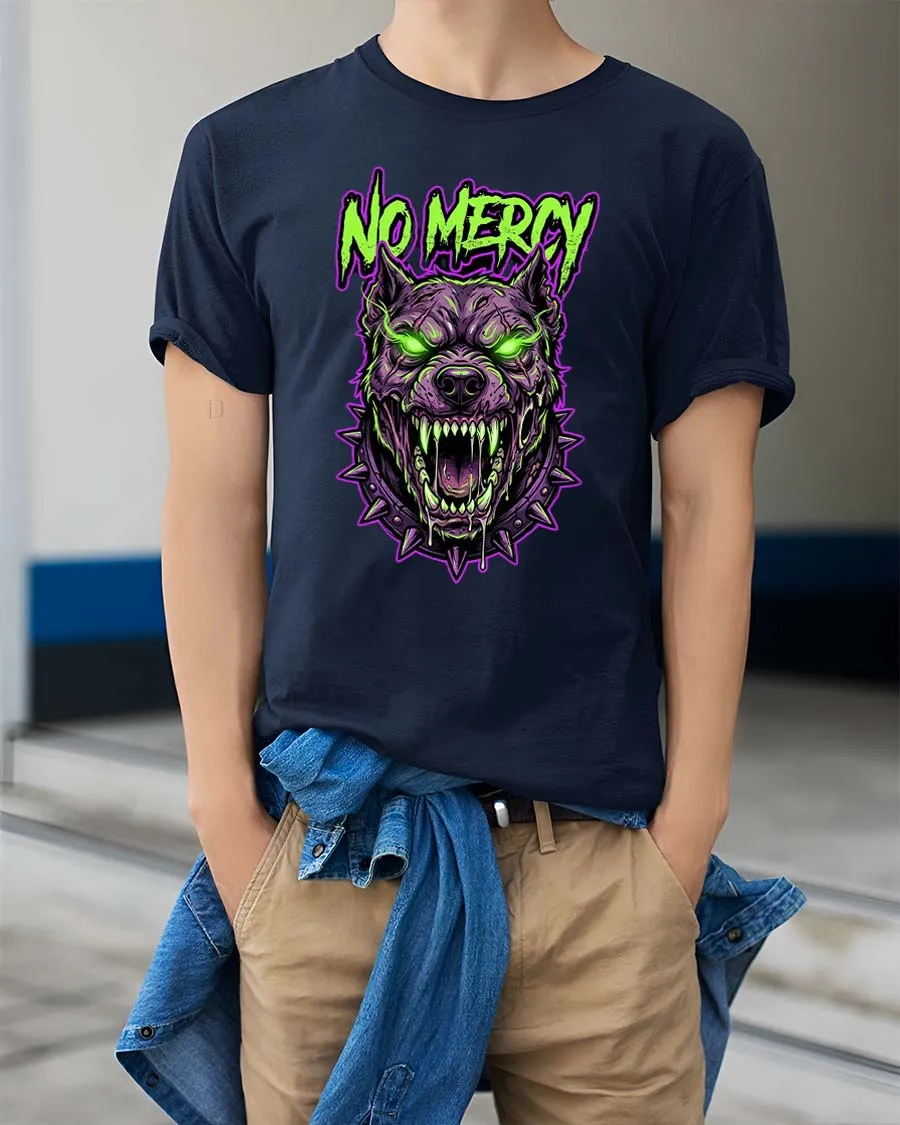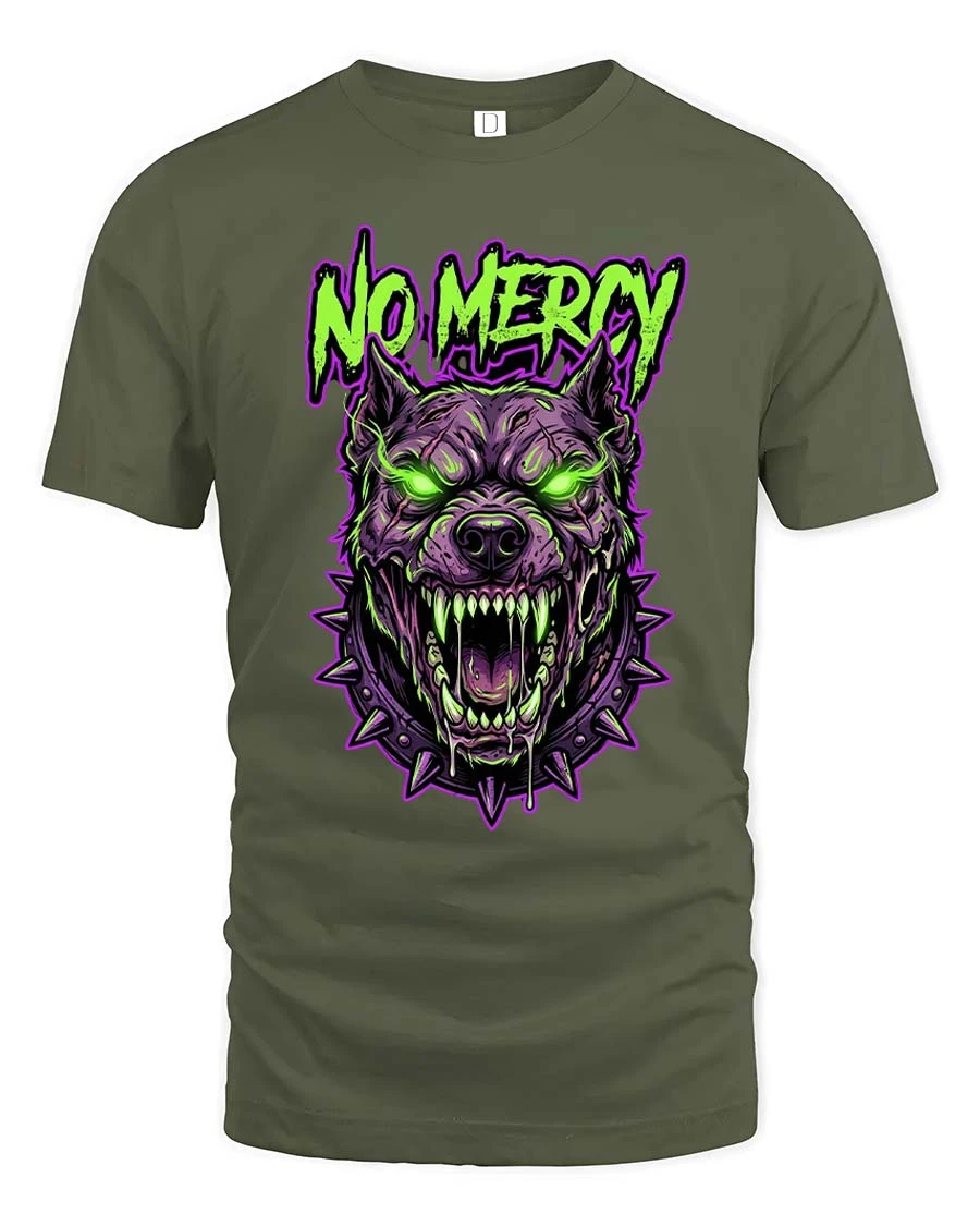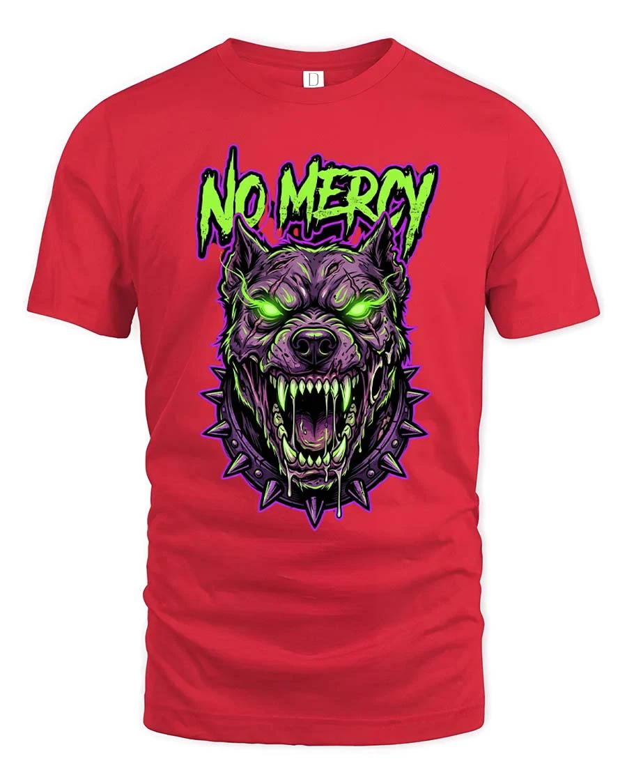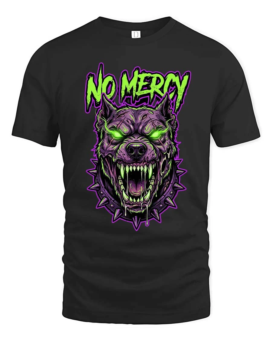 No Mercy Wolf T Shirt Fierce Neon Streetwear Graphic showcases intense energy through a bold and eye catching design inspired by modern street art aesthetics.