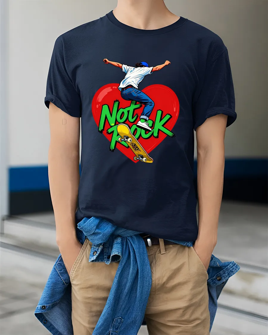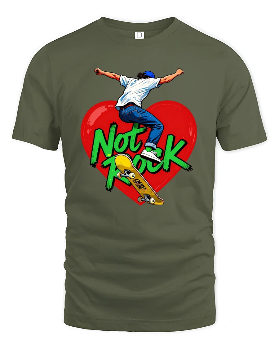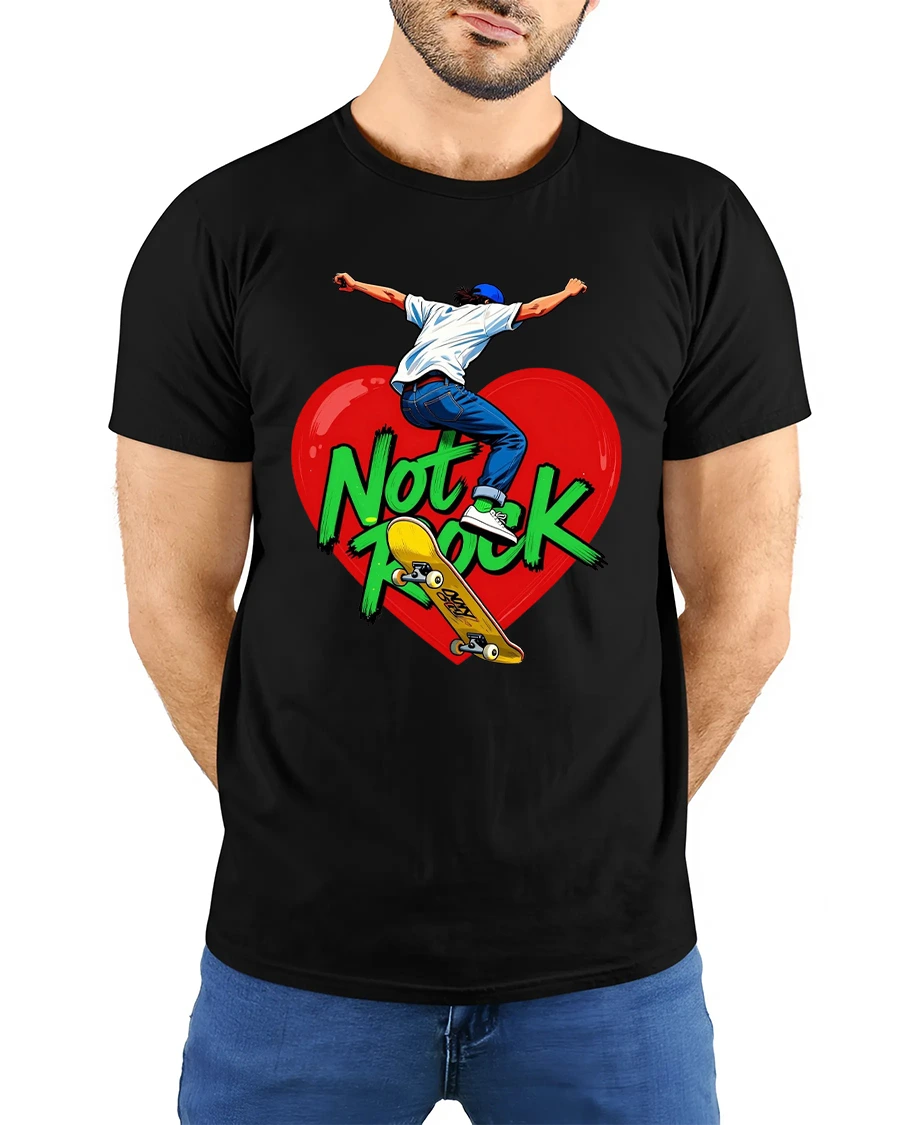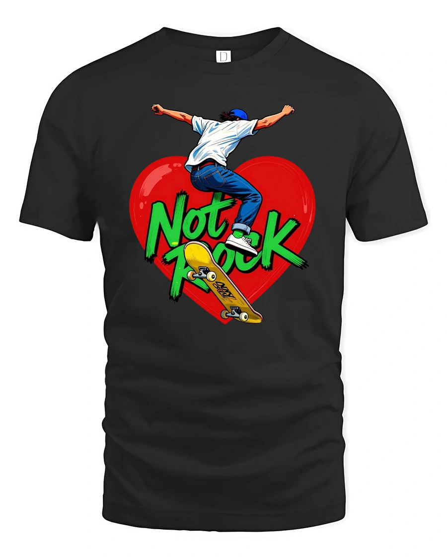 Not Rock Skateboard Heart Tshirt With Bold Street Art captures freedom movement and self expression through a powerful skate inspired illustration.