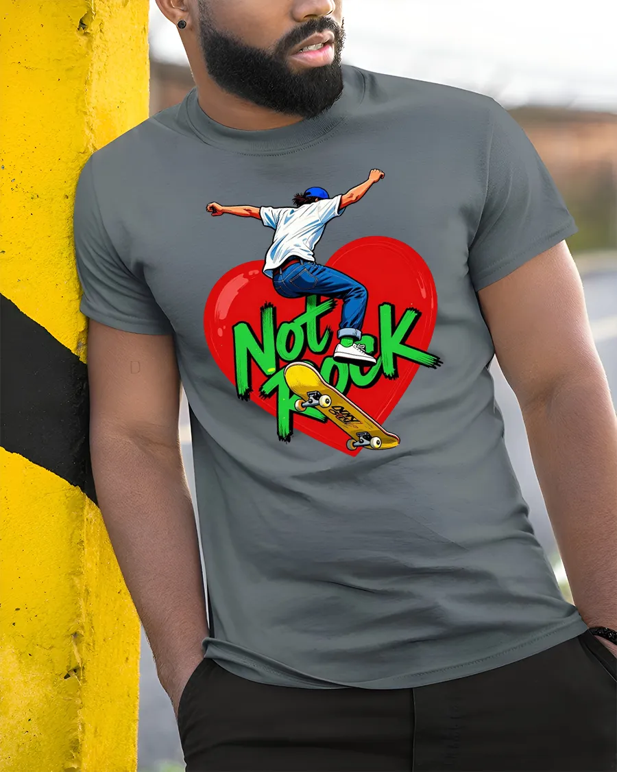 Not Rock Skateboard Heart Tshirt With Bold Street Art is made using soft comfortable fabric that feels smooth and breathable throughout the day.