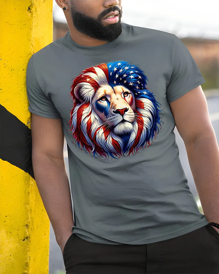 Patriotic American Lion Graphic Tee Bold Freedom Art T Shirt