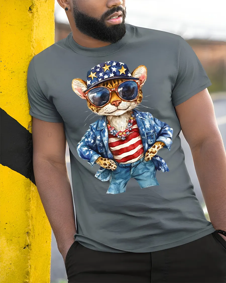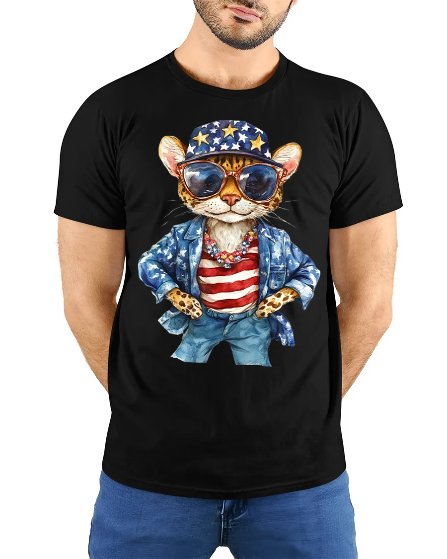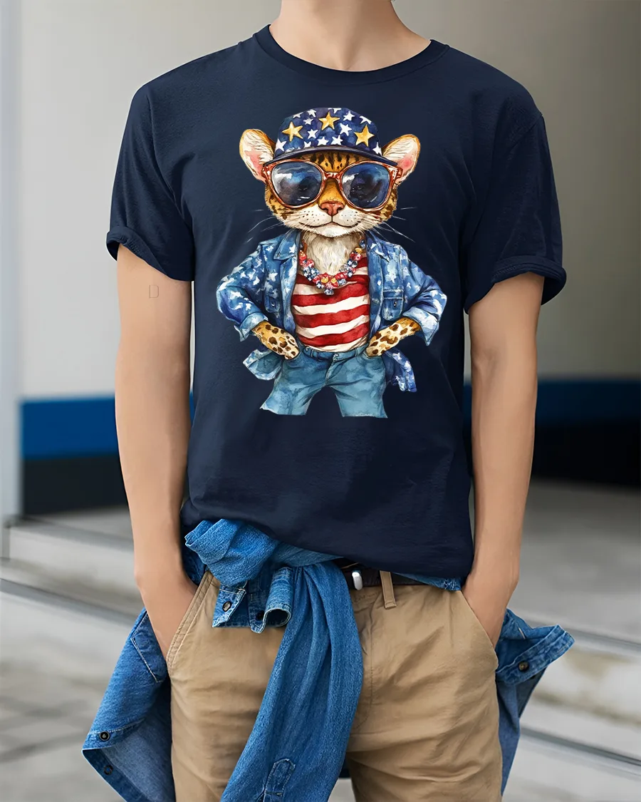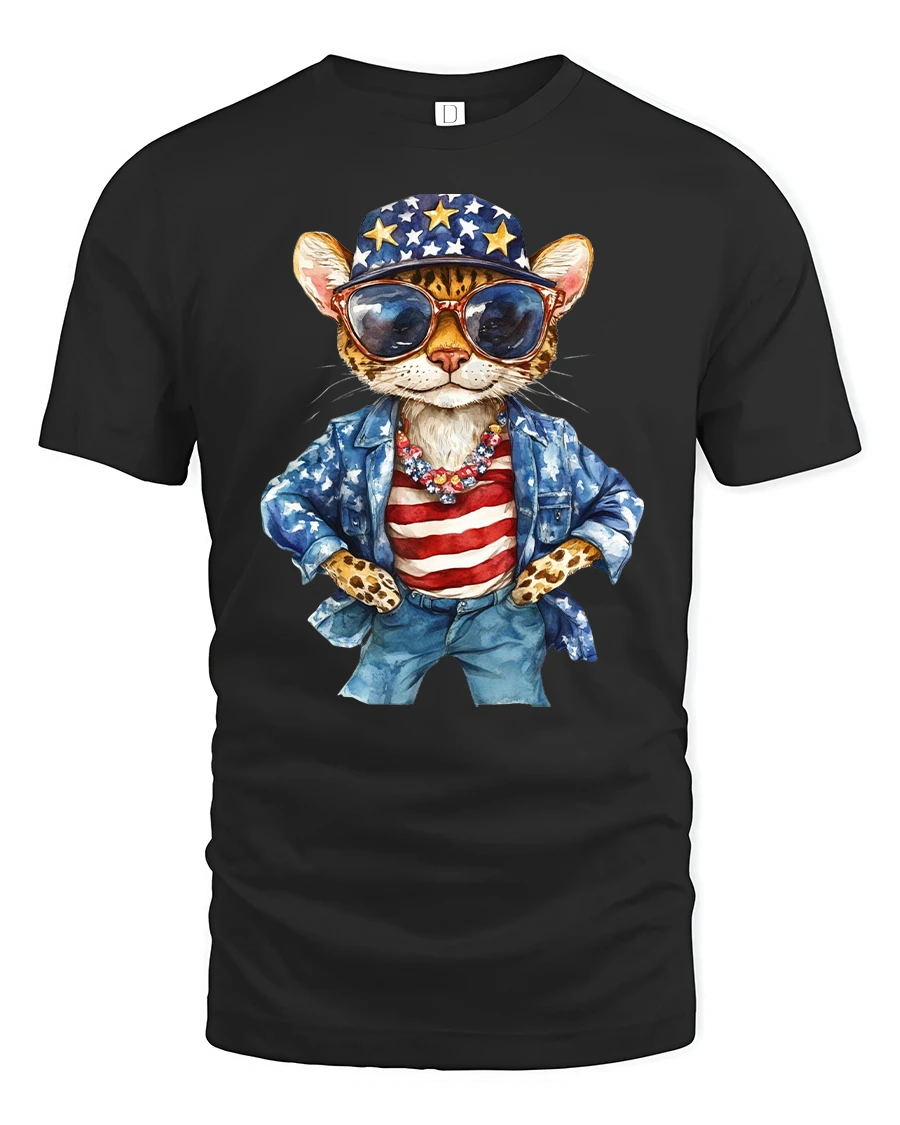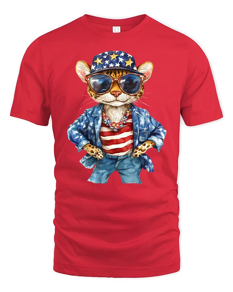 The Patriotic Cool Cat USA Flag Style Graphic Print T-Shirt is the ultimate blend of humor, style, and American pride. Featuring a fashionable cat rocking sunglasses, a star-spangled hat, and a bold American flag outfit, this tee is perfect for anyone who loves showing off their fun side while celebrating the USA. The playful design and vibrant colors make this shirt a great choice for casual wear and special patriotic holidays.