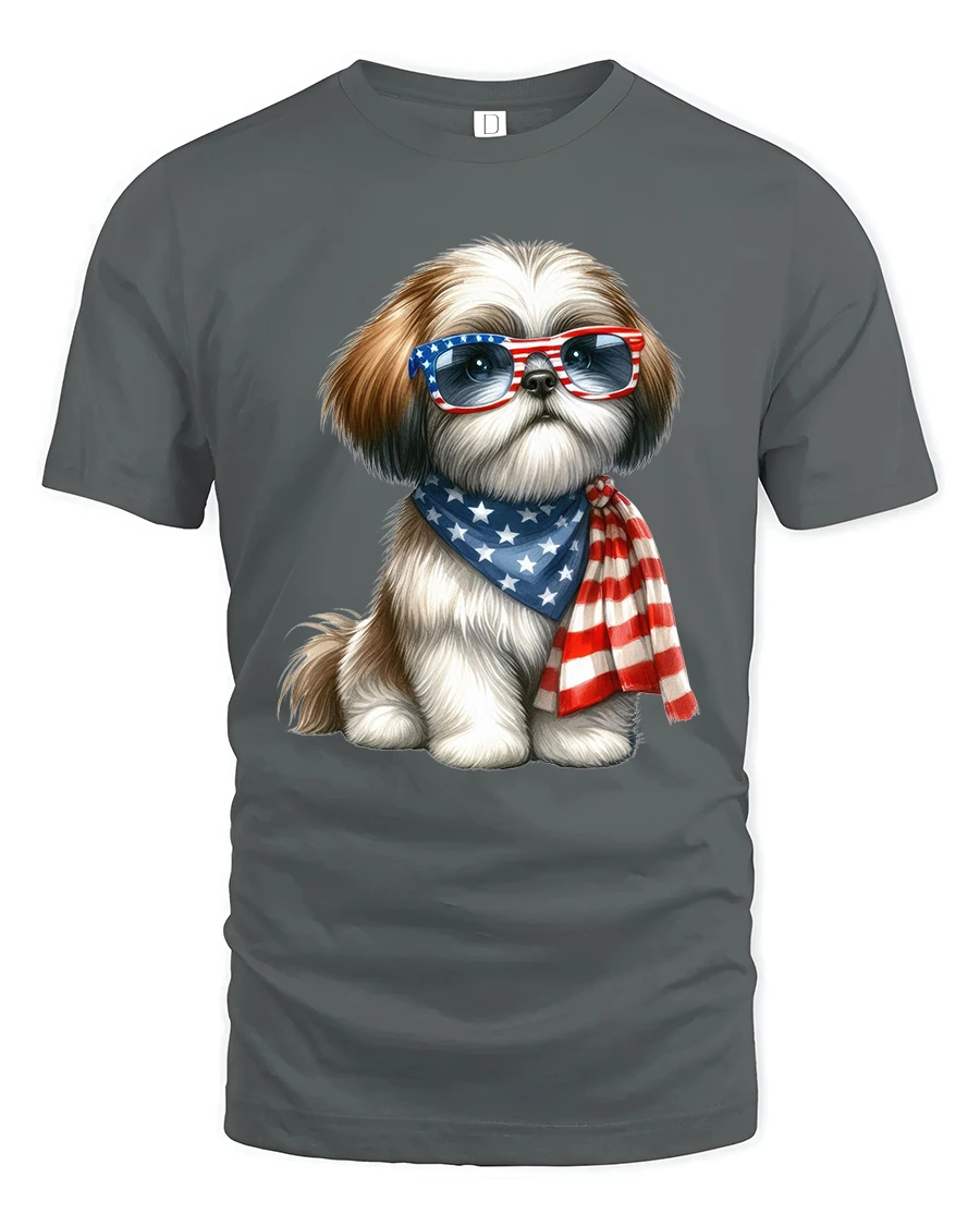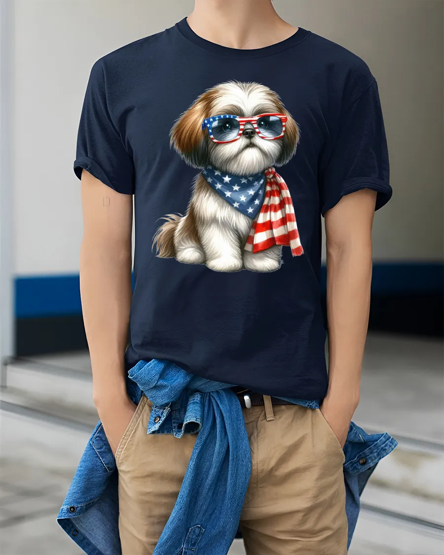 Patriotic Cute Dog With American Glasses Graphic Tee is perfect for dog lovers casual wear fans and anyone who enjoys fun expressive designs.