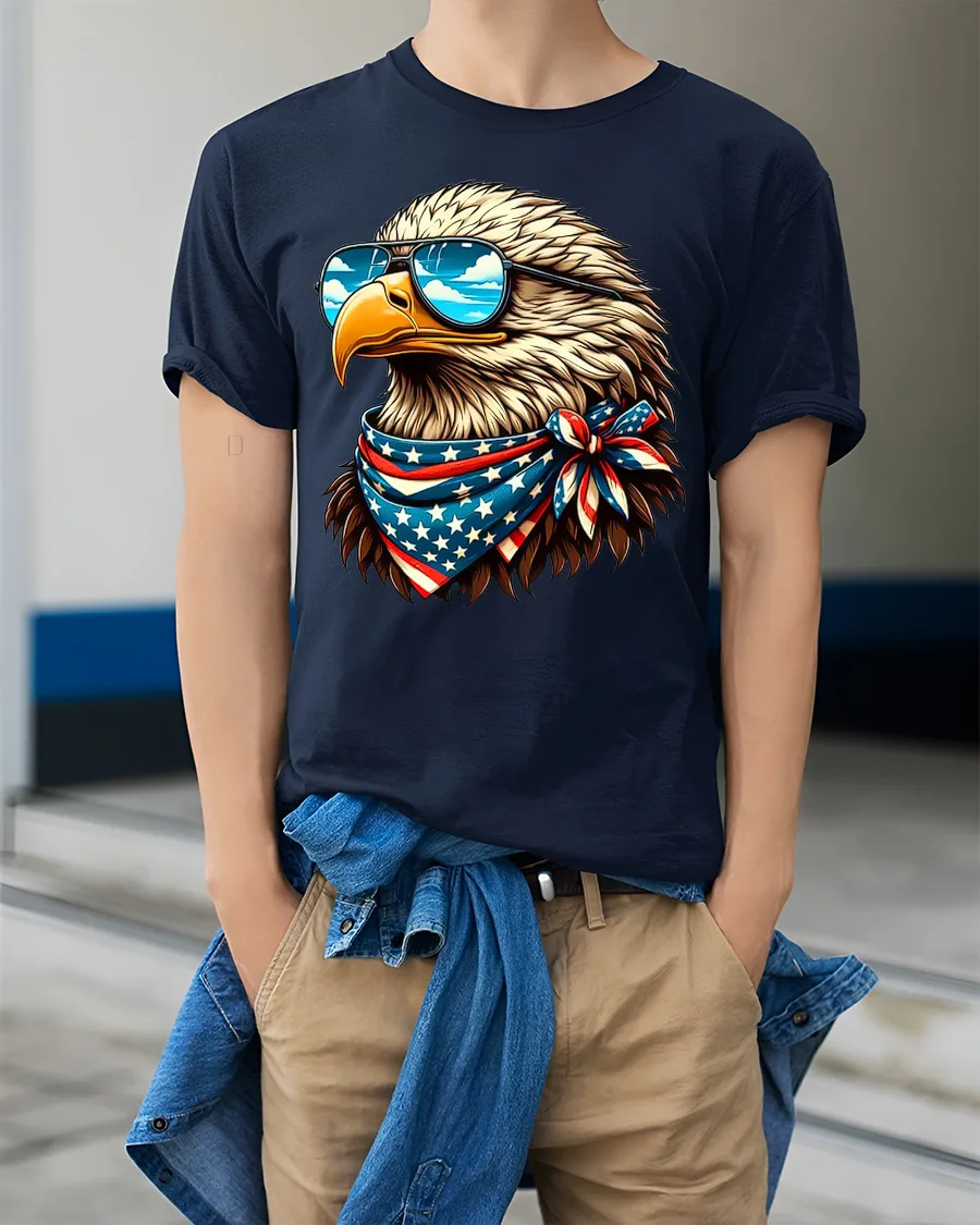 The Patriotic Eagle Tee with Sunglasses and American Flag Style stands out as a tribute to freedom and strength. It captures the bold essence of the bald eagle while adding a fun, stylish twist that makes it perfect for anyone who loves patriotic fashion and unique graphic designs.
