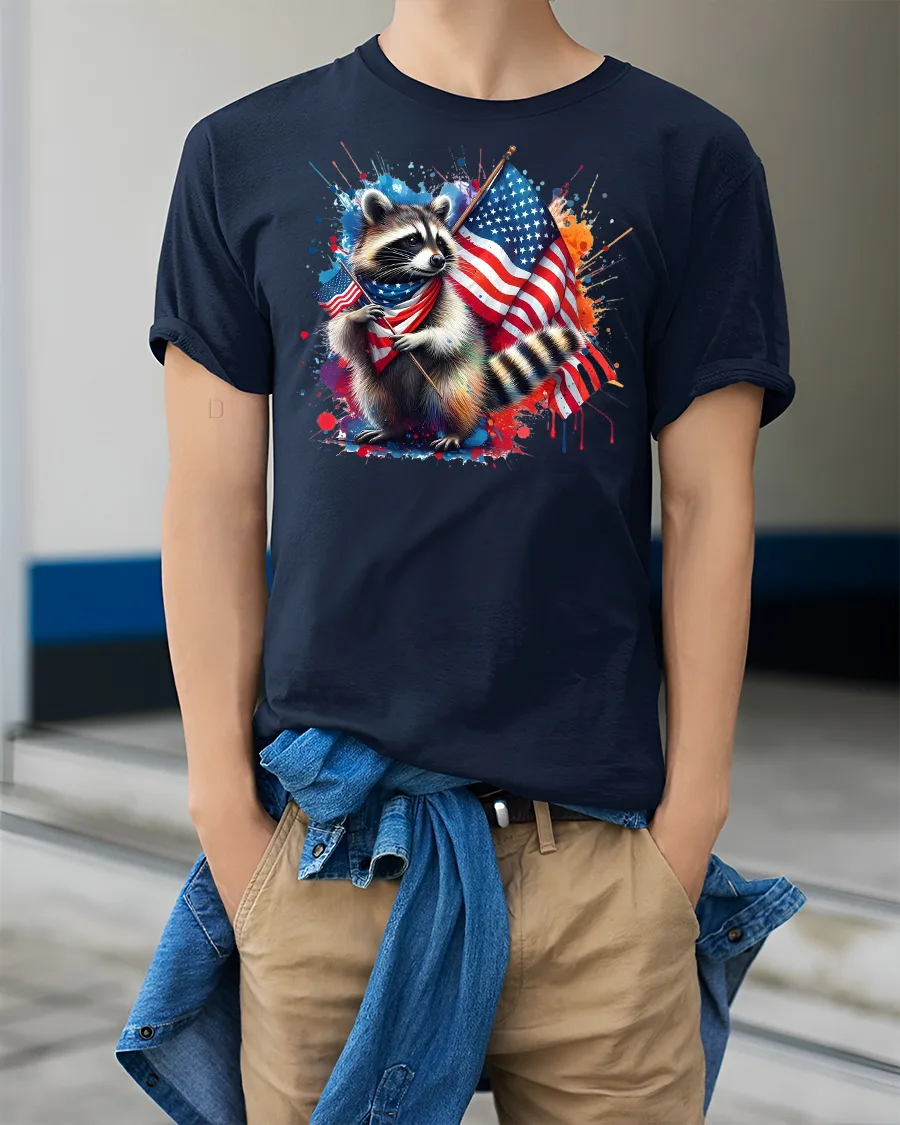 Whether you’re celebrating Independence Day, Memorial Day, or simply showing your love for America, this raccoon flag t-shirt is a must-have. Embrace freedom, fun, and style all at once with the Patriotic Raccoon USA Flag Graphic T-Shirt for Men.