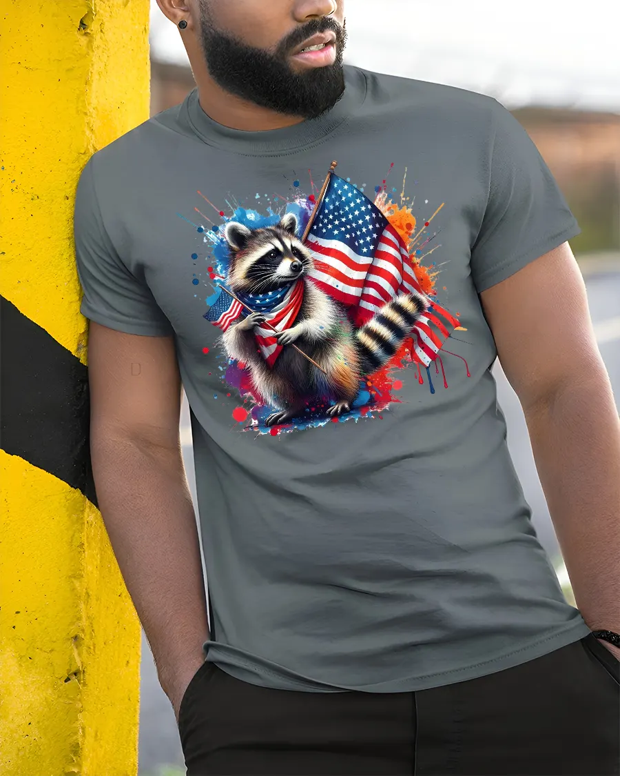 Made with high-quality fabric, the Patriotic Raccoon USA Flag Graphic T-Shirt for Men offers comfort and durability while showcasing bold colors that pop. The detailed raccoon design adds a touch of uniqueness, making this shirt a standout choice for holidays, barbecues, or casual wear.