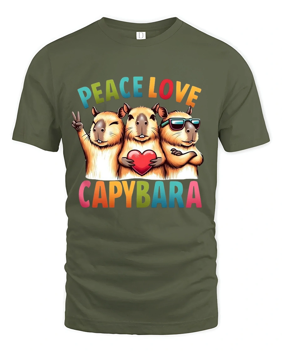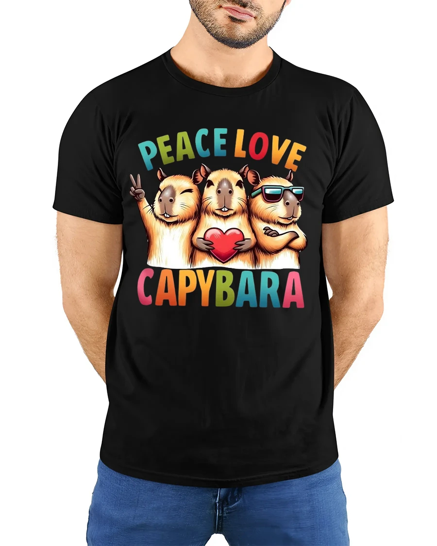 Peace Love Capybara Graphic T Shirt represents positivity friendship and playful self expression.