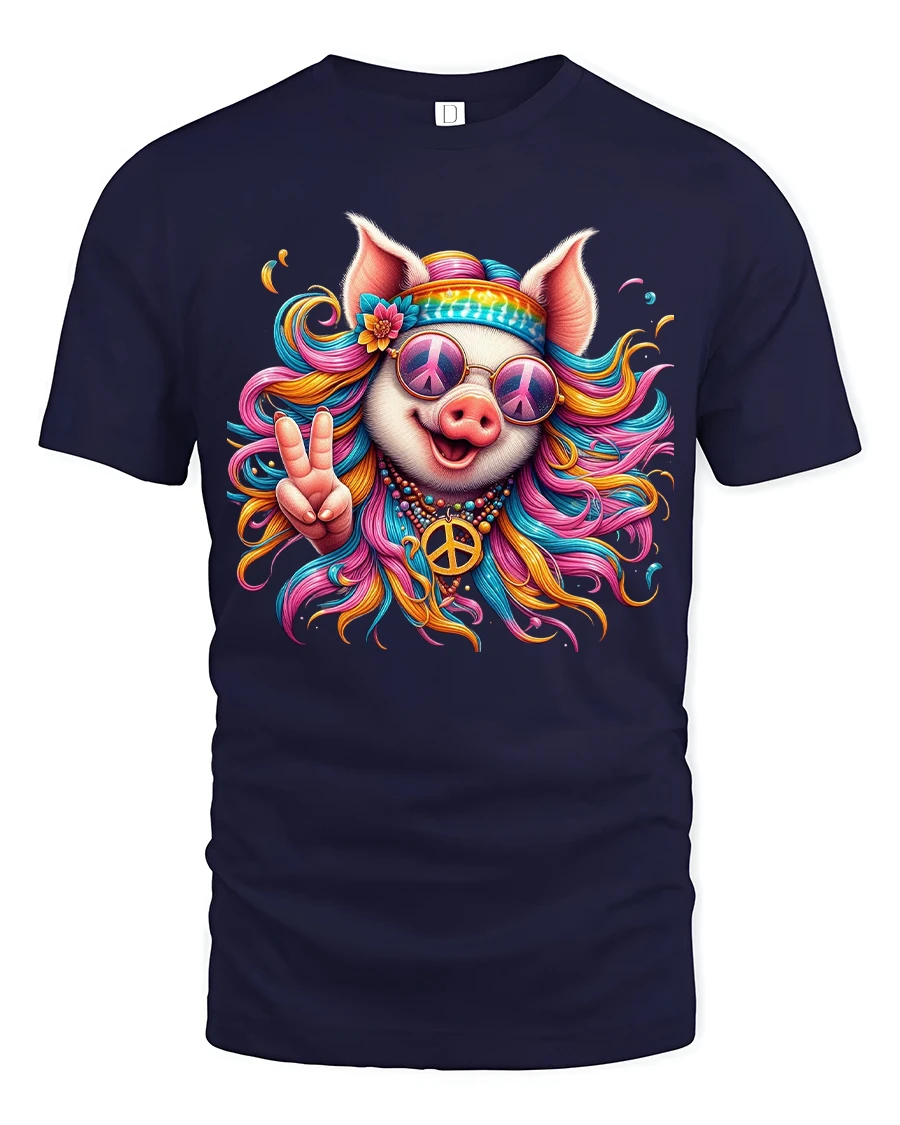 Psychedelic Hippie Pig Graphic T Shirt With Peace Vibes Art is designed to stand out with bold personality and colorful energy.