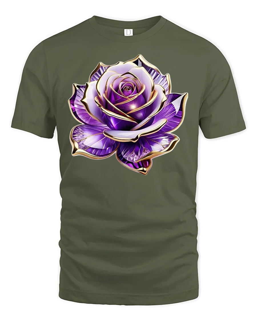 Purple Crystal Rose Gold Edge Elegant Art T-Shirt brings luxury, beauty, and artistic detail together in one stunning floral design. This tee features a richly rendered purple rose with crystal-like petals, highlighted by shimmering gold edges that give the artwork a refined, jewel-inspired appearance.