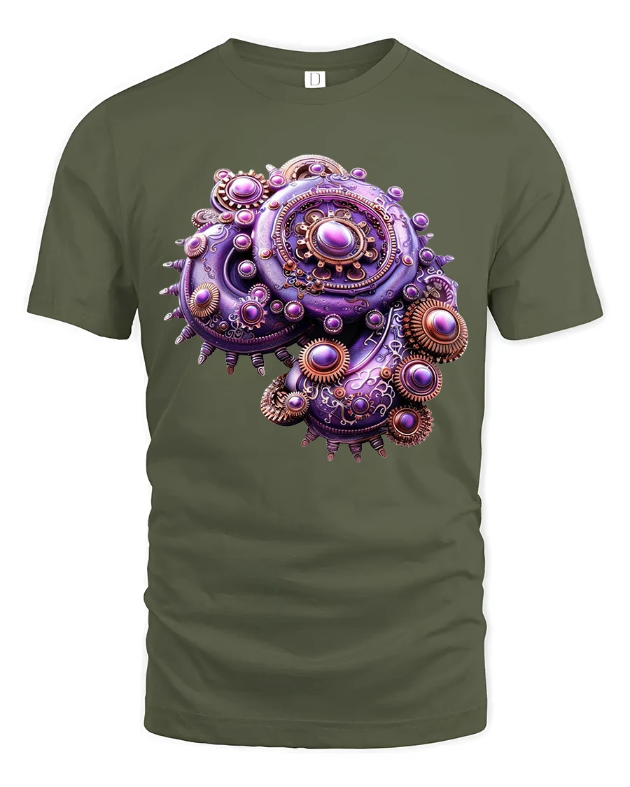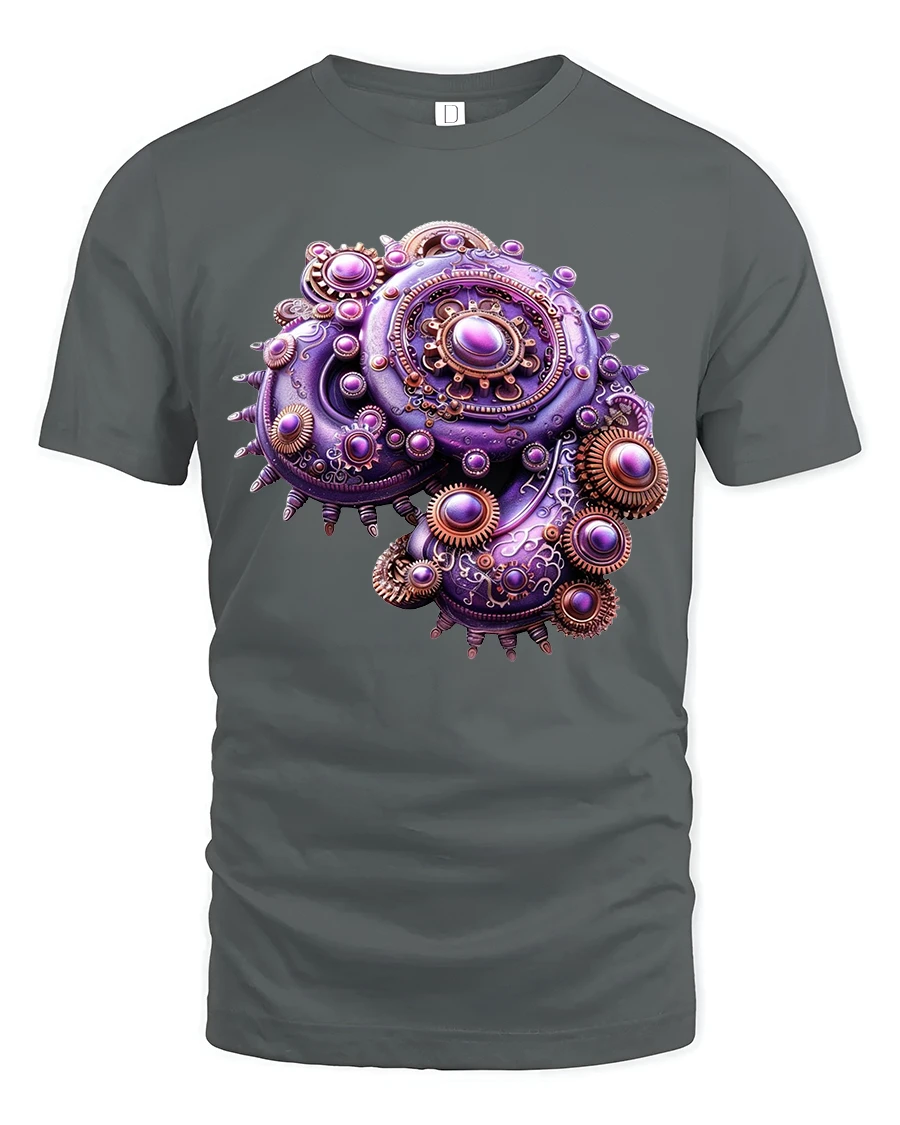 Made for comfort and everyday wear, this t-shirt pairs effortlessly with jeans, jackets, and casual outfits. Its high-resolution print ensures the metallic textures, sculpted gears, and vivid purple shading stay crisp and eye-catching wash after wash. Whether you love steampunk fashion, industrial-inspired artwork, or simply want a standout graphic tee, this design adds bold personality and edgy artistic charm.