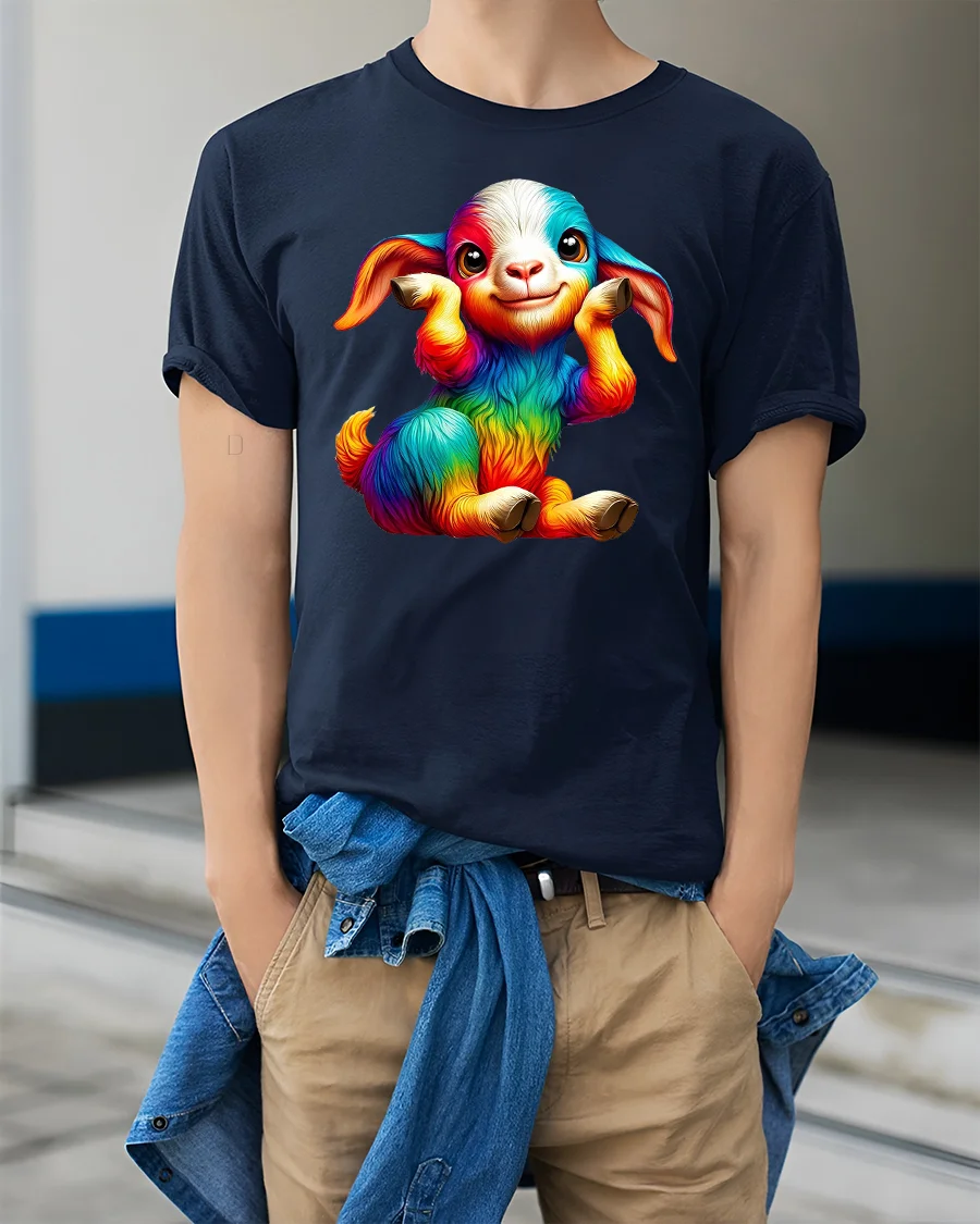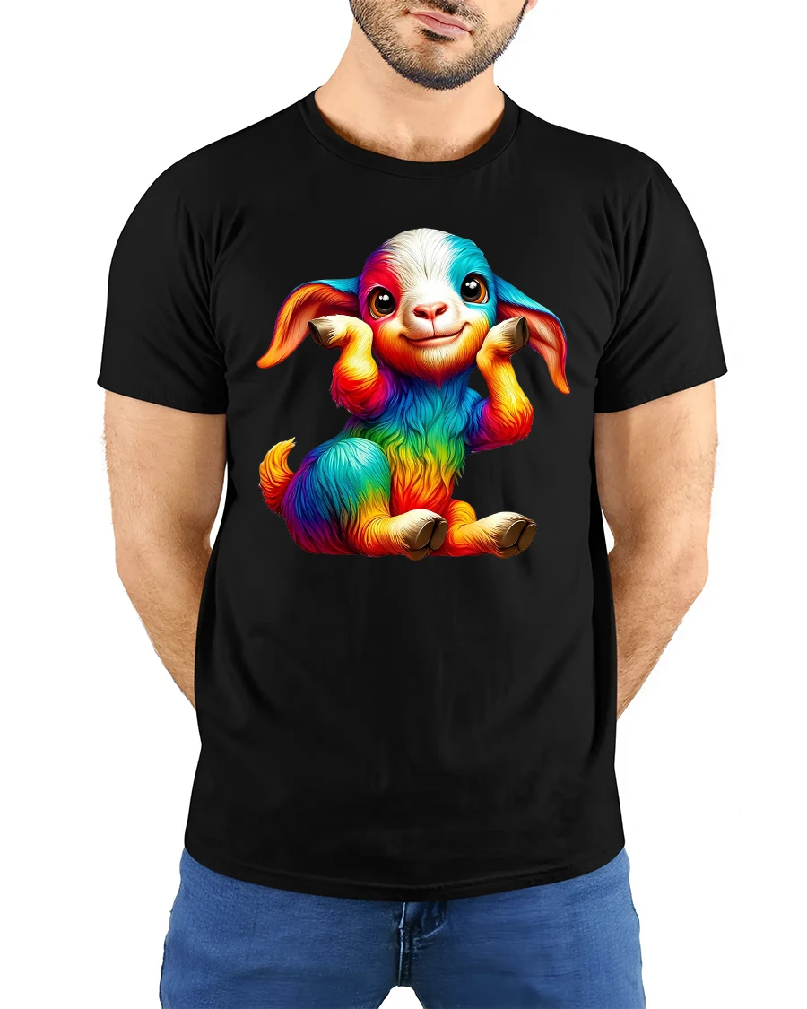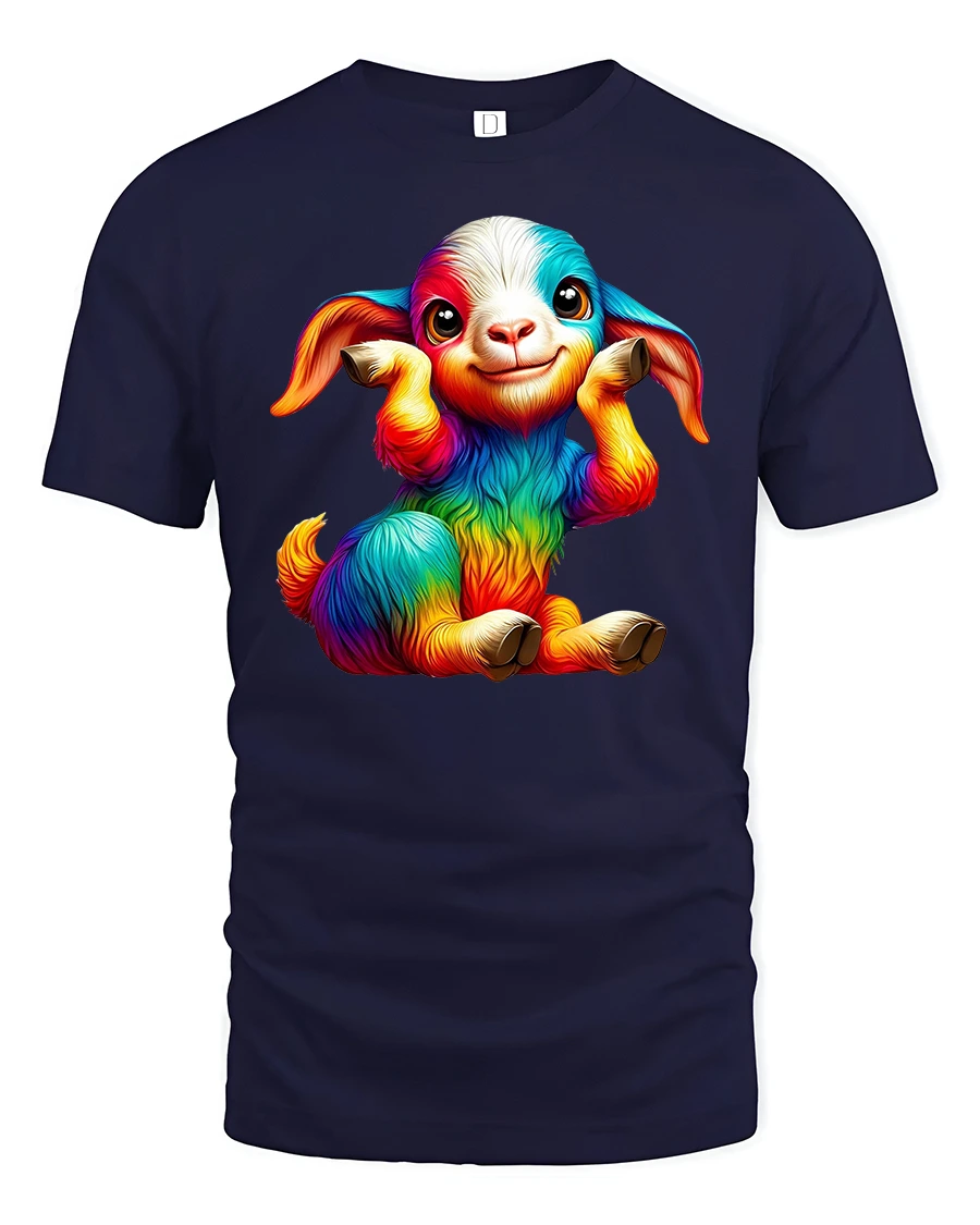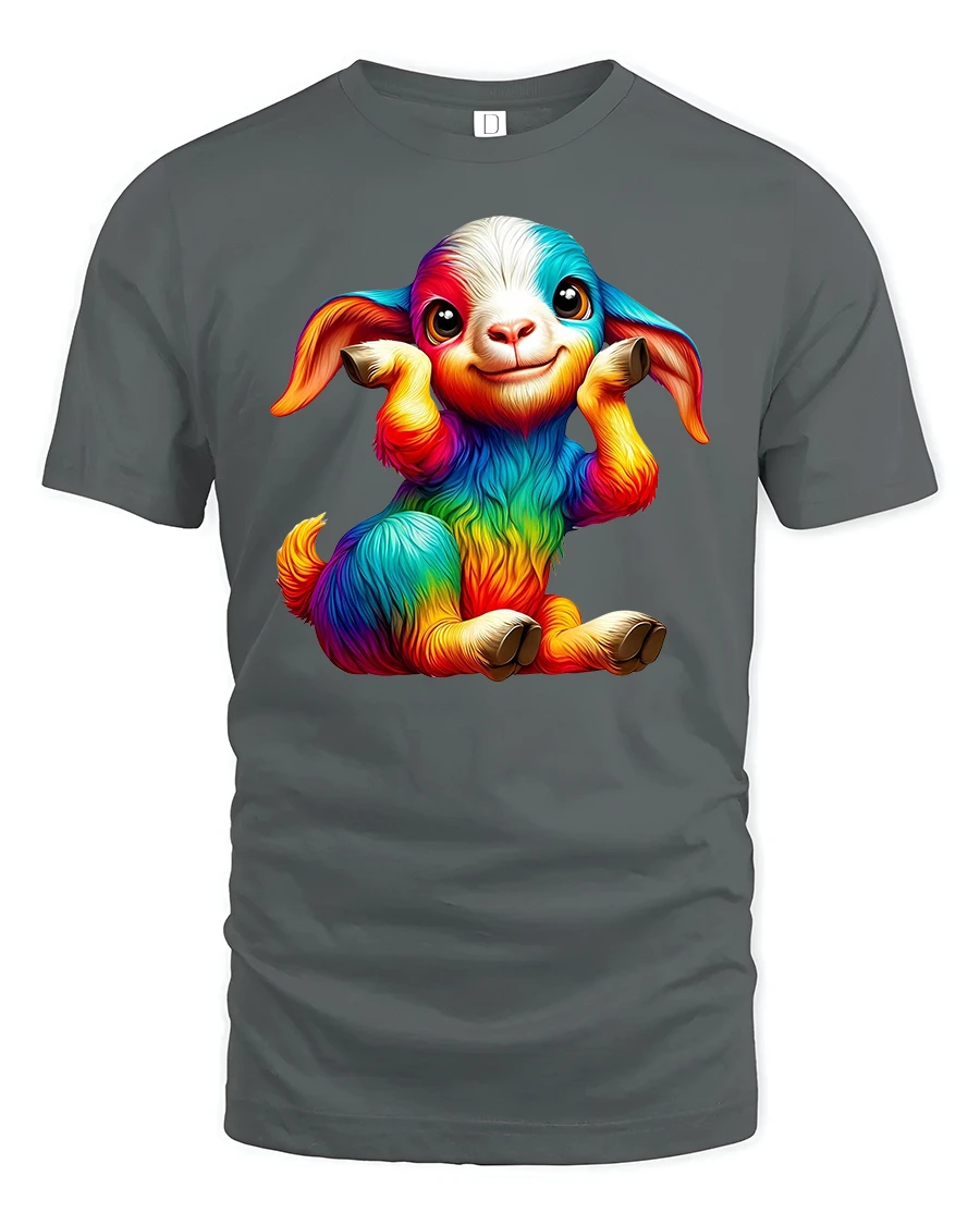 Featuring a cute baby goat covered in rainbow colors and an irresistible smile, this tee brings happiness and personality to every outfit.