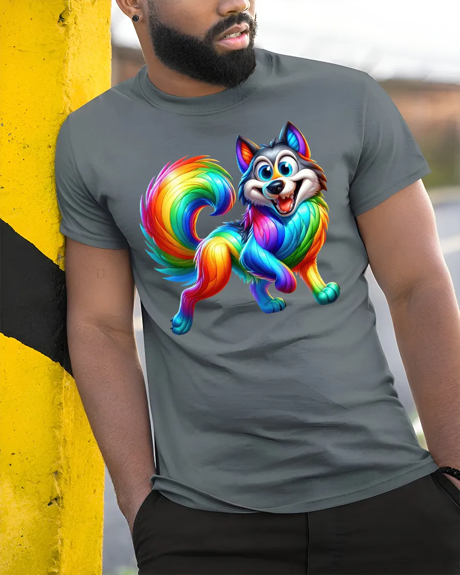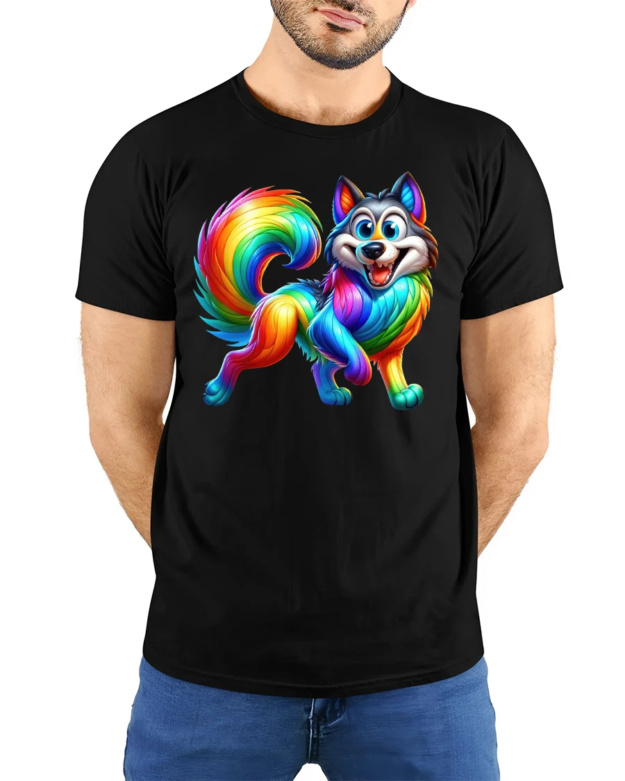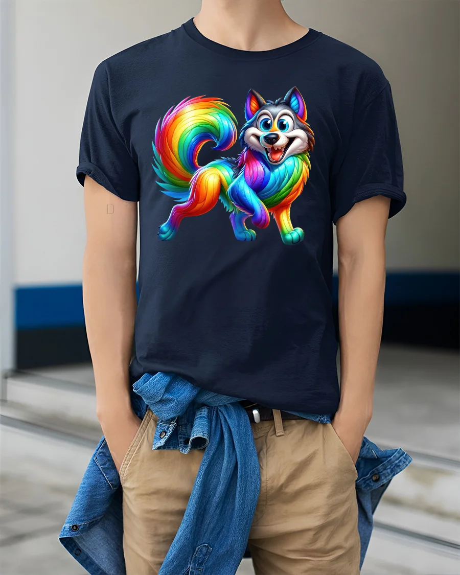 Made from premium soft cotton, this rainbow husky t-shirt offers a smooth, lightweight feel that keeps you comfortable all day.