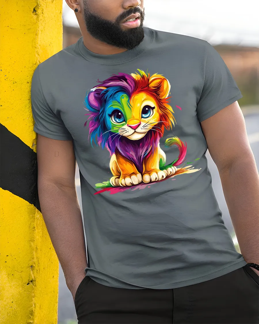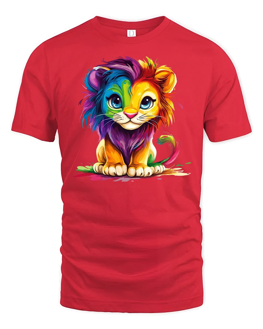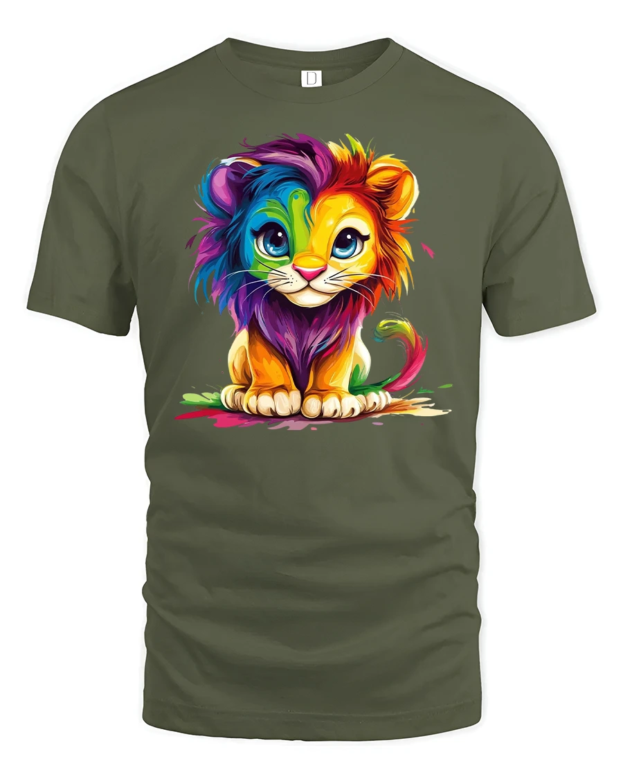 Crafted with comfort in mind, this rainbow lion t-shirt is perfect for casual outings, festivals, or gifting to someone who enjoys unique and creative clothing. The vibrant colors pop beautifully, giving the lion cub a joyful and energetic vibe that makes it appealing to both kids and adults alike.