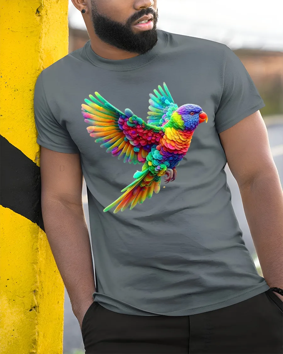 Crafted from soft and breathable fabric, this rainbow parrot t-shirt combines comfort with standout style. The high-quality graphic print ensures the brilliant colors pop and stay vibrant even after many washes. Whether you’re into exotic birds, tropical themes, or just love unique artistic designs, this tee will add personality and brightness to your wardrobe.