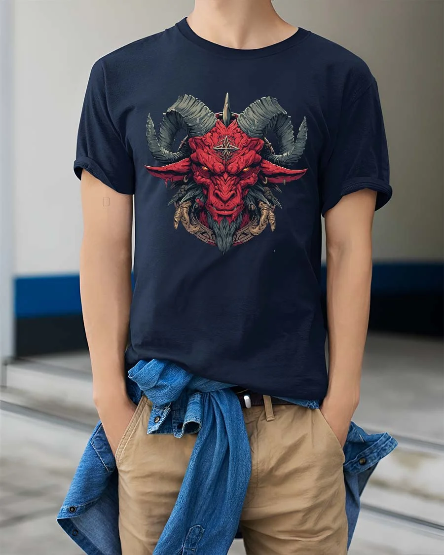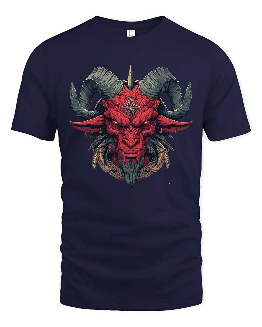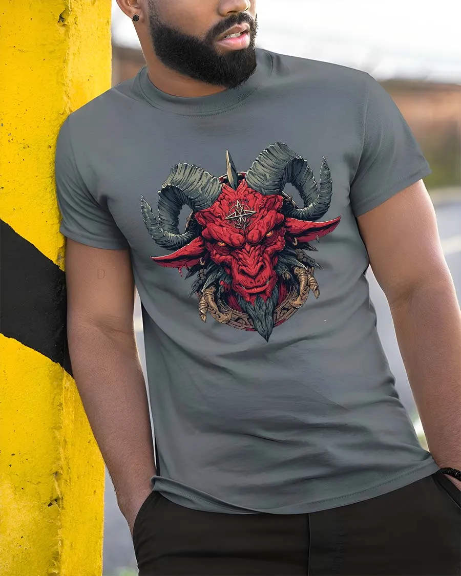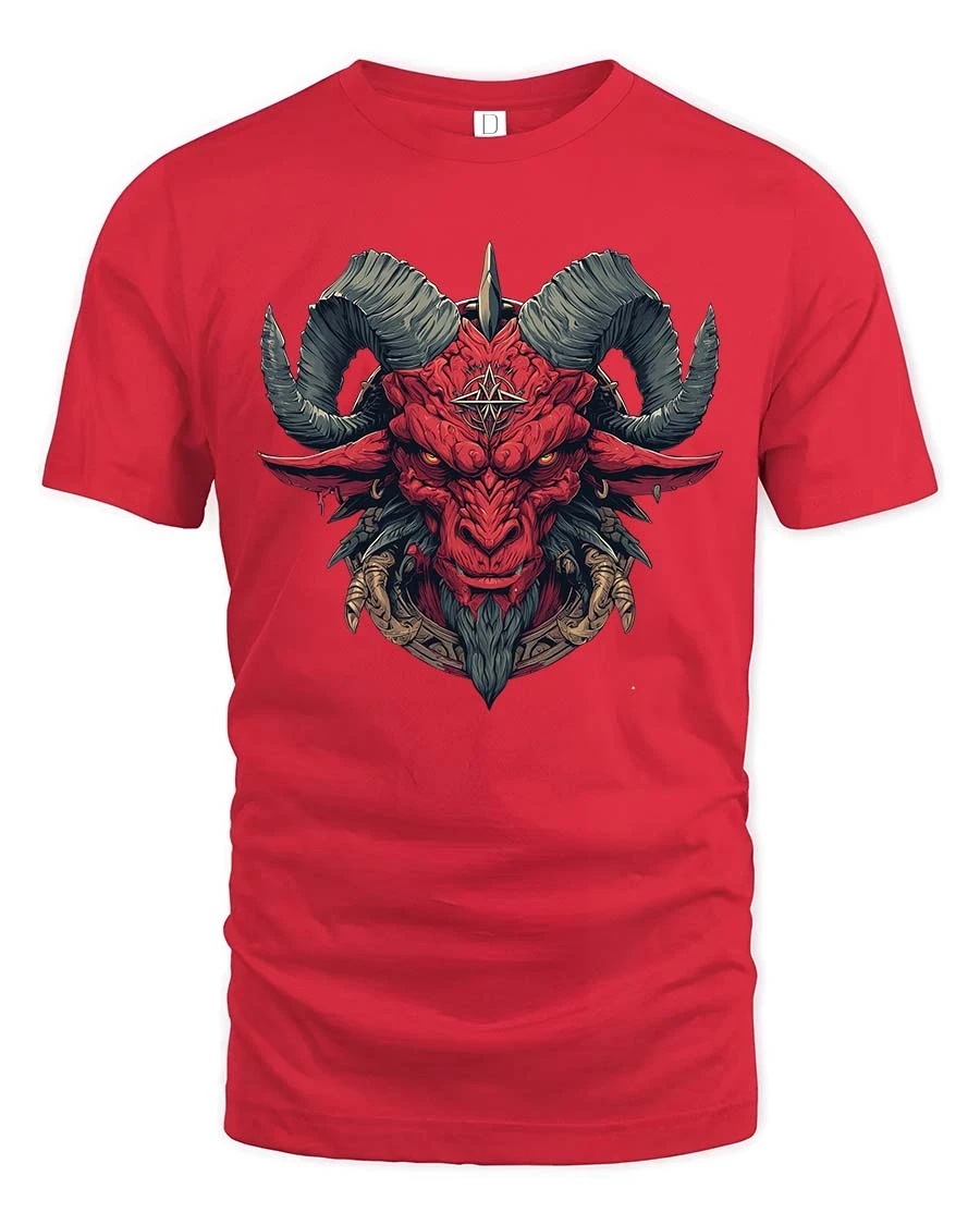 Red Demon Goat Head Tshirt Dark Occult Fantasy Graphic Tee delivers a bold and intense design inspired by dark symbolism and gothic fantasy art.