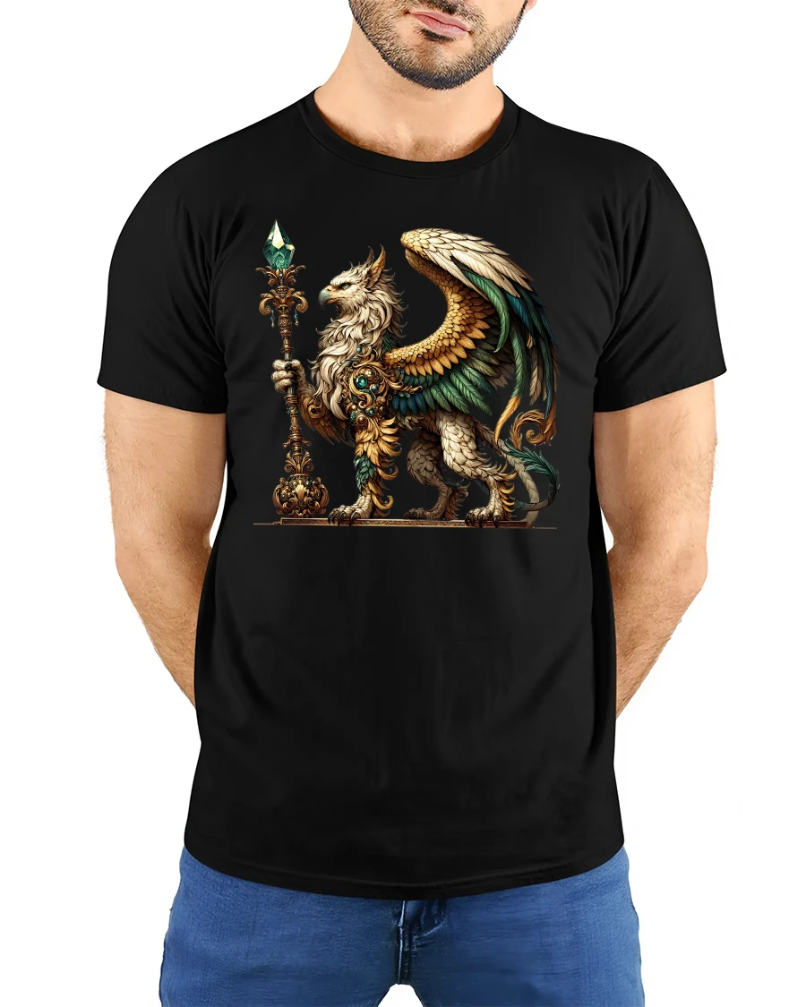 This fantasy griffin t-shirt also makes an excellent gift for fans of role-playing games, mythology, and epic fantasy art. Pair it with jeans, joggers, or layer it under a jacket for a bold look. Showcase your love for mythical creatures and timeless legends with this striking griffin tee that embodies the essence of fantasy adventure.