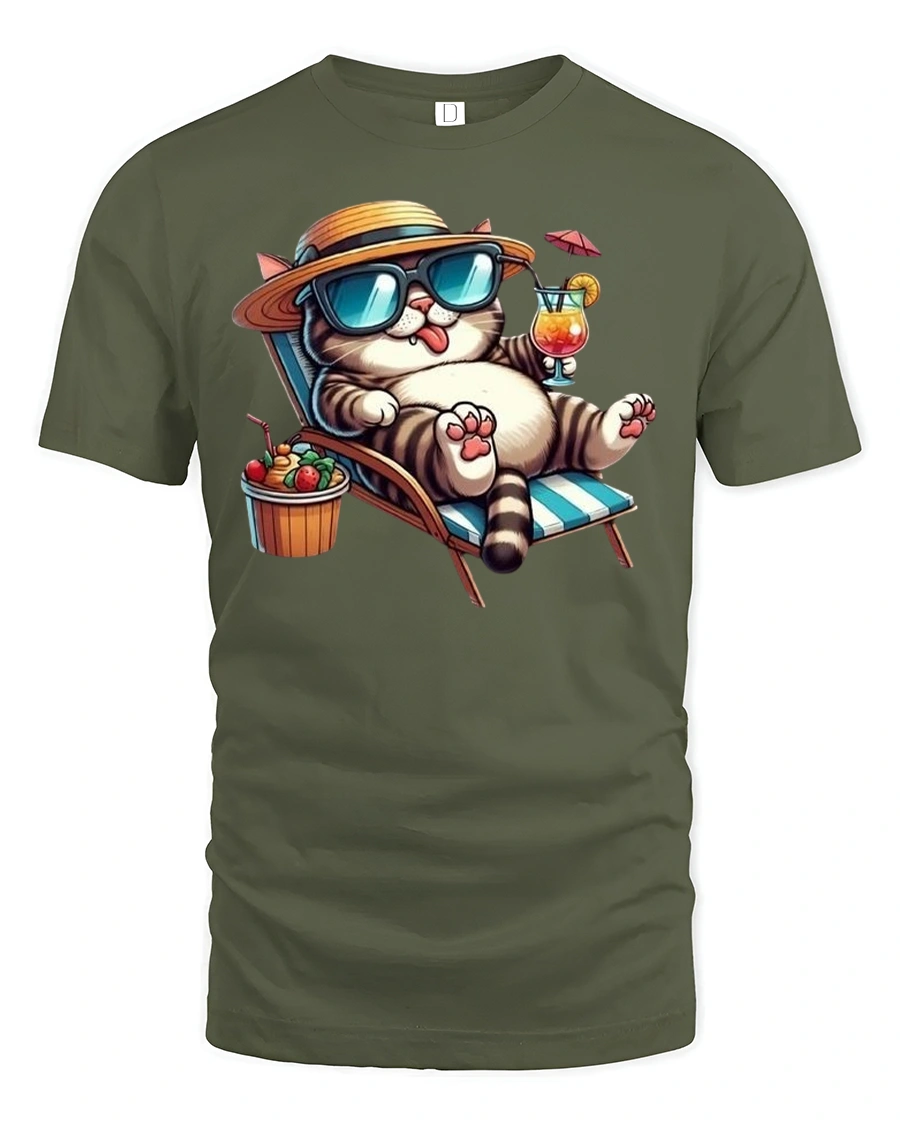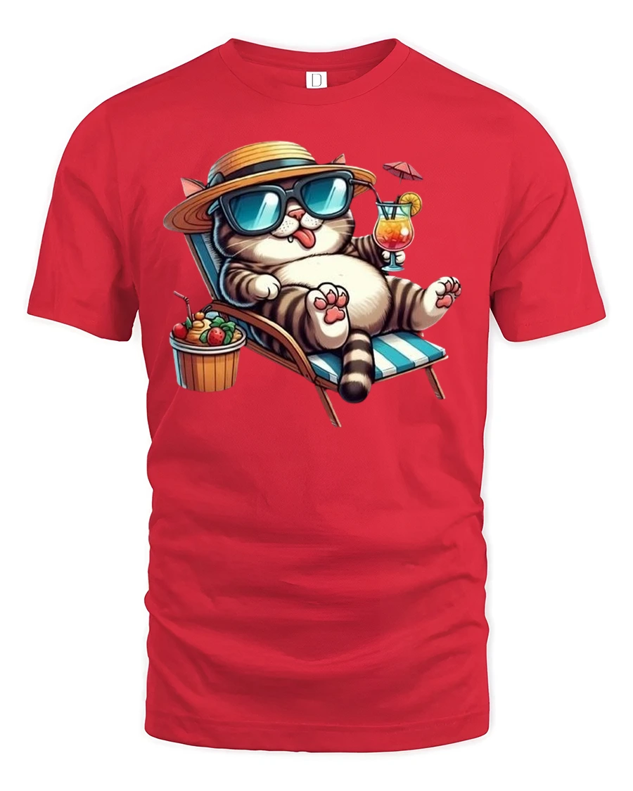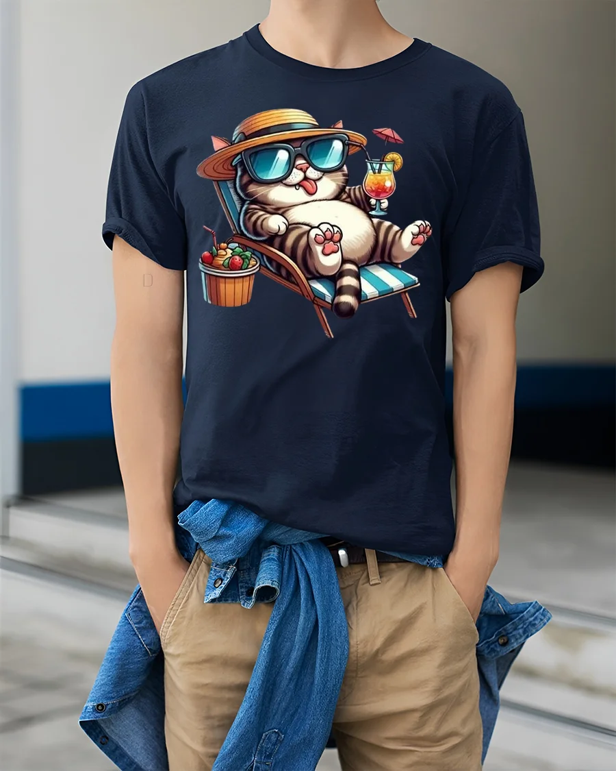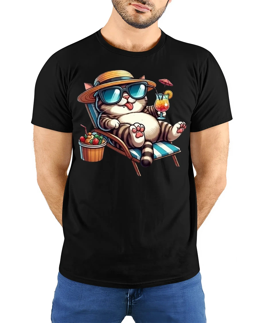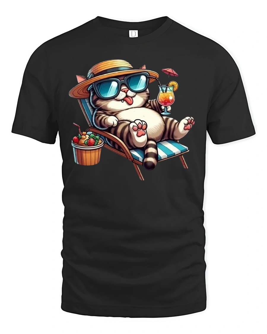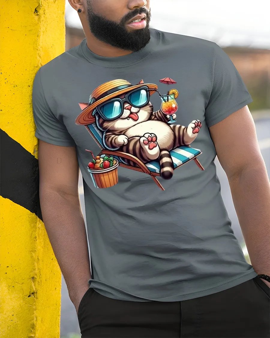The Relaxing Summer Cat Printed Tee with Cool Vibes is the perfect choice for cat lovers who enjoy a laid-back lifestyle. Featuring a fun and stylish cat lounging on a beach chair with sunglasses, a hat, and a cocktail in hand, this tee radiates tropical relaxation and vacation-ready energy. It’s a must-have for anyone who loves both cats and the beach.