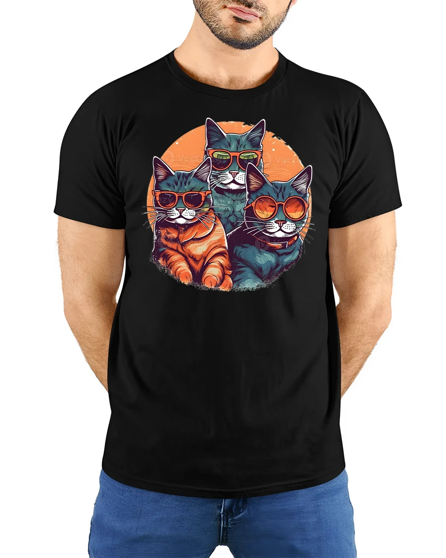 The Retro Cool Cats T-Shirt with Sunglasses Graphic is the ultimate must-have for cat lovers who adore humor and style. Featuring three stylish cats rocking retro sunglasses against a warm sunset background, this tee blends vintage vibes with modern fashion. It’s a playful and trendy shirt perfect for casual wear, pet lovers, or anyone who enjoys fun graphic designs.