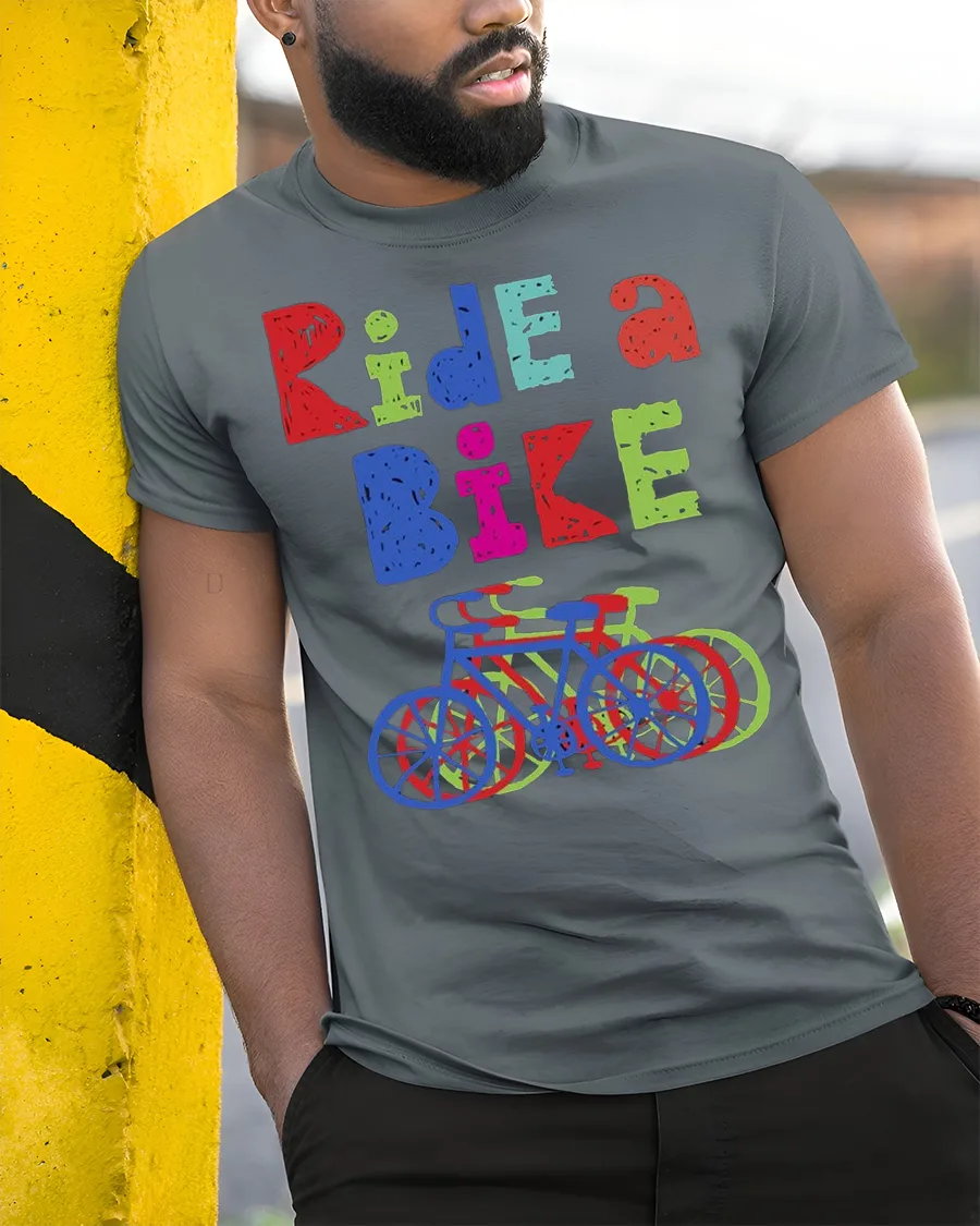 The Ride A Bike Graphic Cycling Lovers Casual T-Shirt is the perfect choice for anyone who enjoys pedaling through life with style. Featuring a bold “Ride A Bike” slogan in colorful block letters and vibrant overlapping bicycle graphics, this tee is both eye-catching and fun. It’s designed for cyclists, bike enthusiasts, and anyone who believes in the joy of riding.