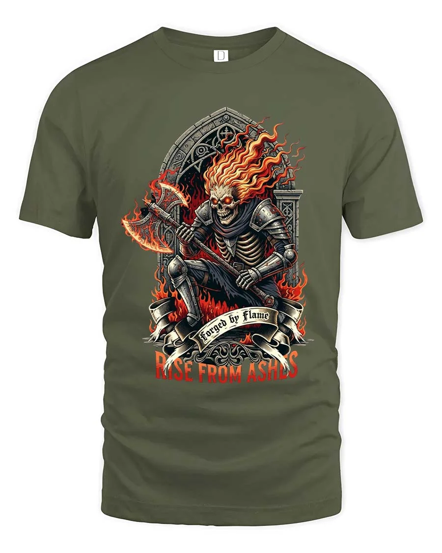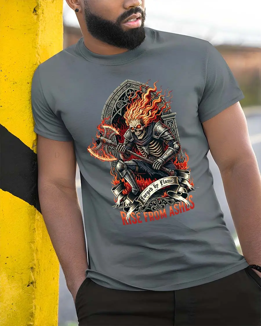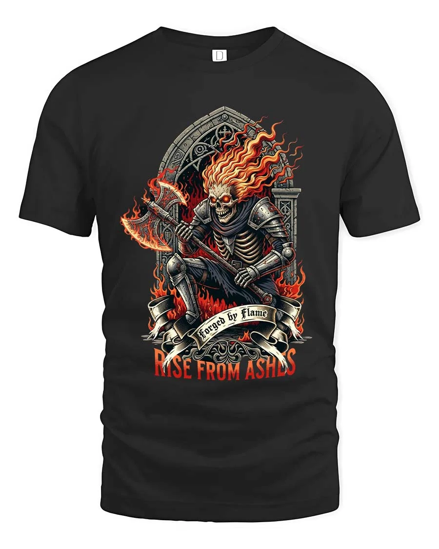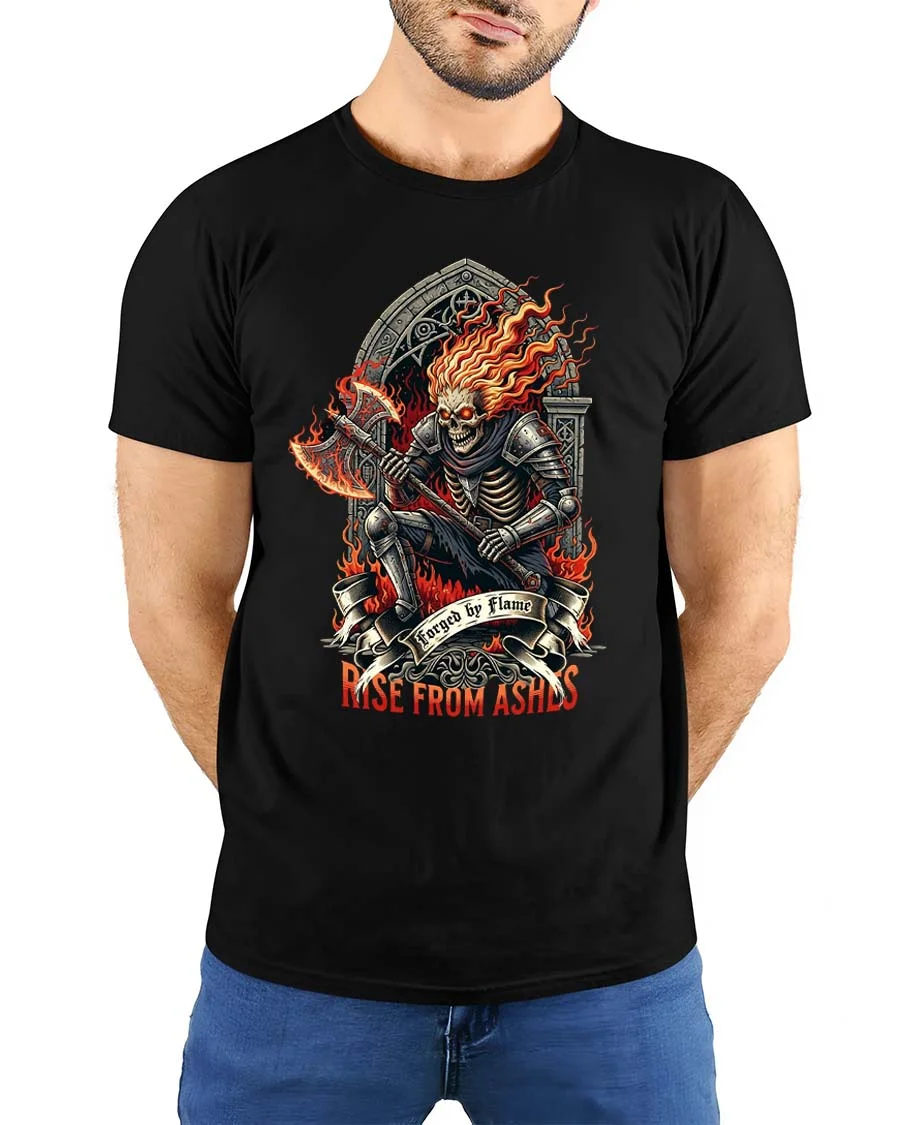 Rise From Ashes Flaming Skull Warrior Graphic T Shirt delivers a powerful and intense design inspired by strength and rebirth.